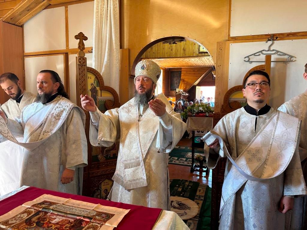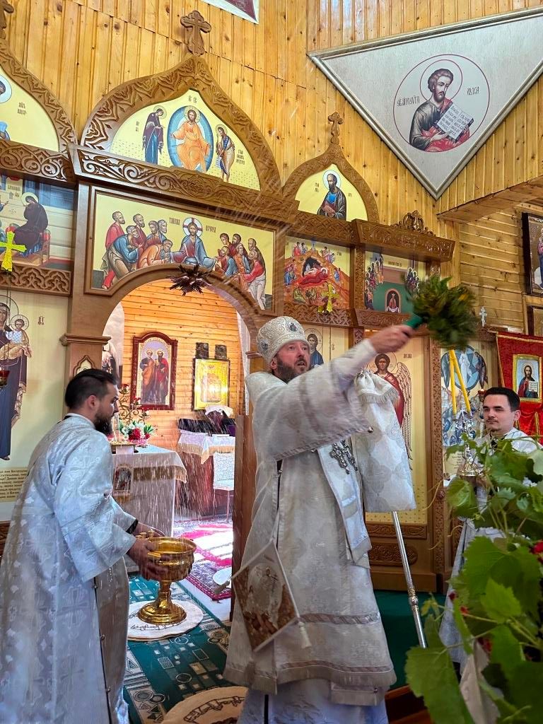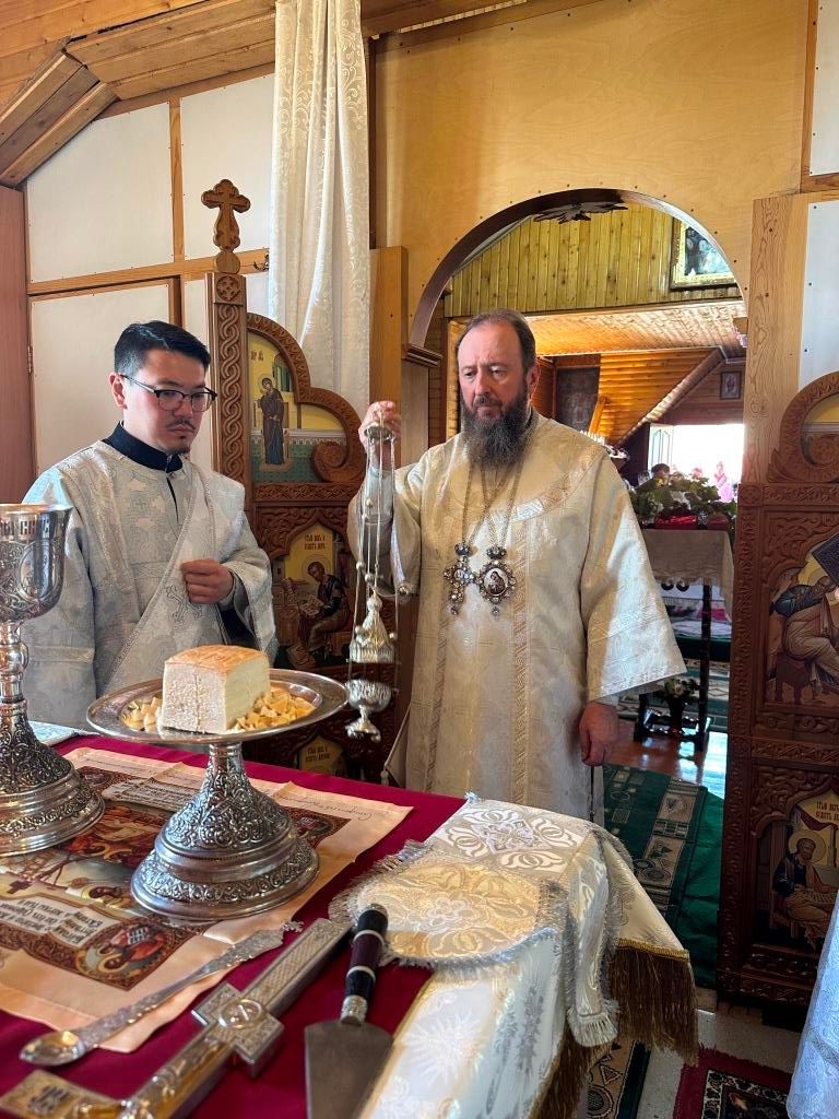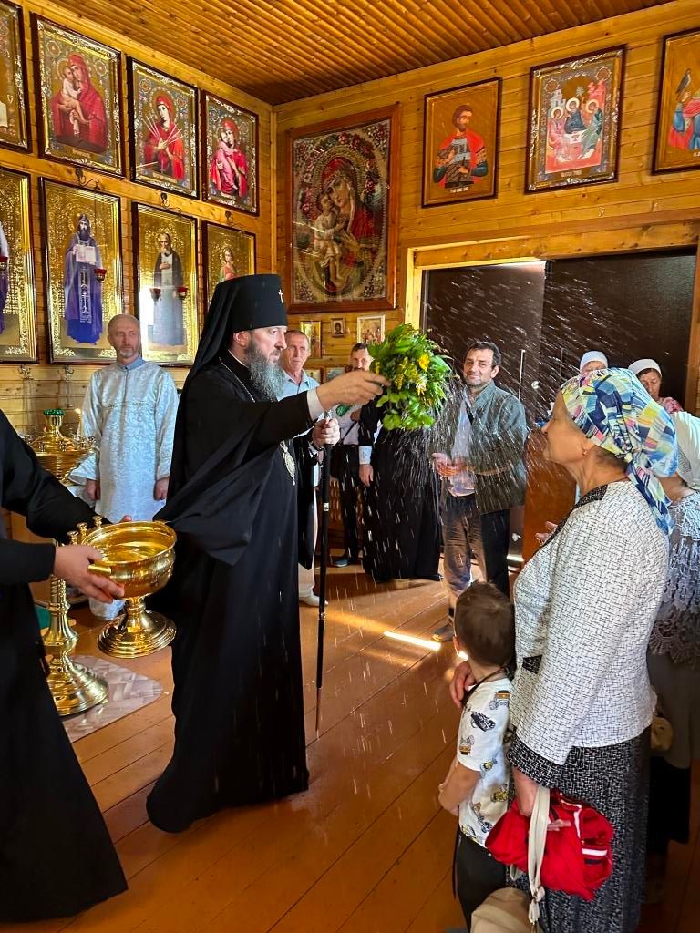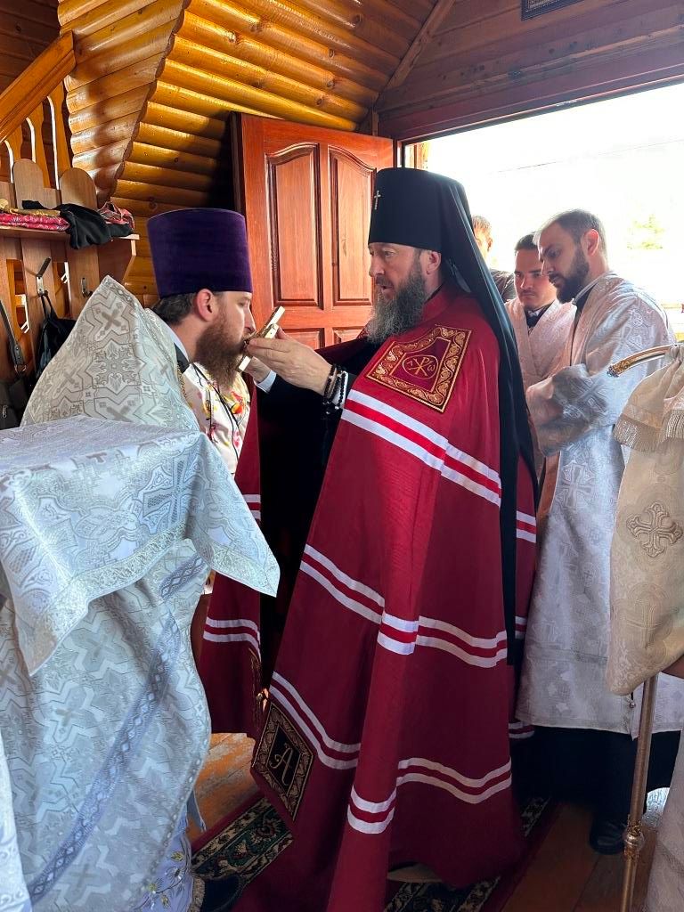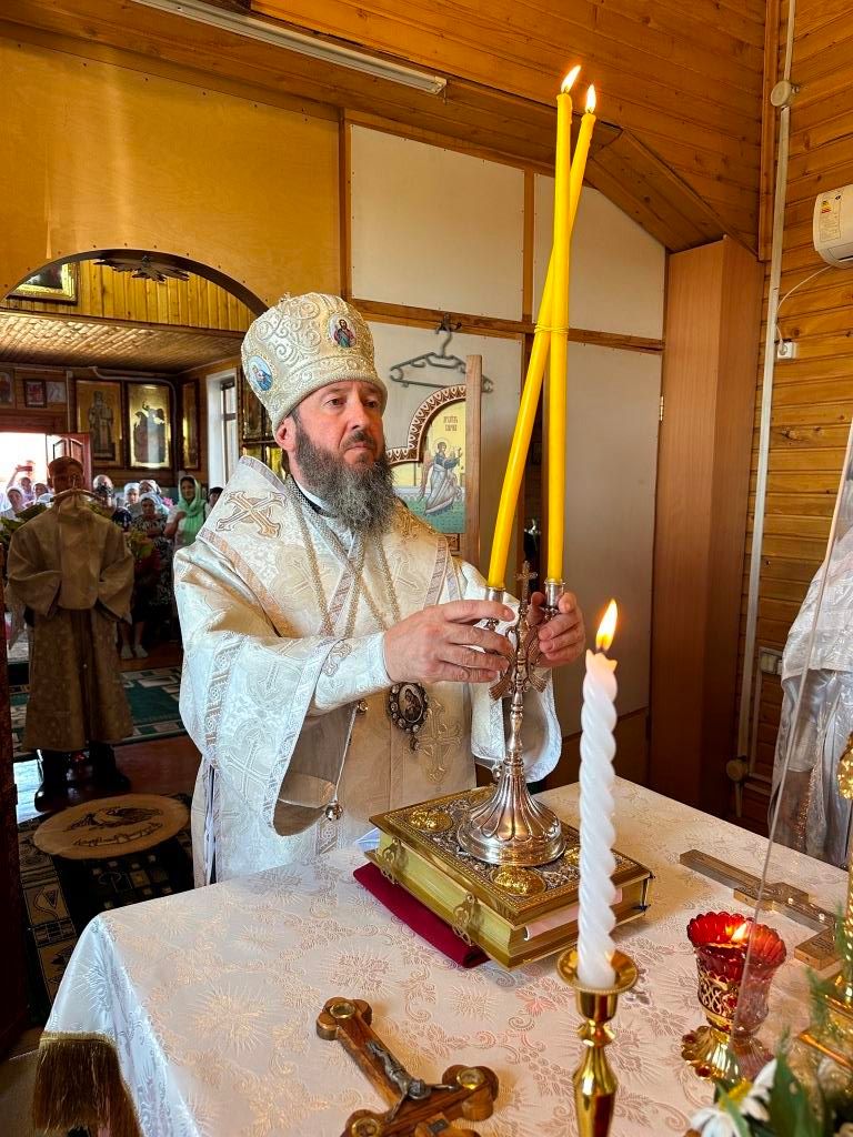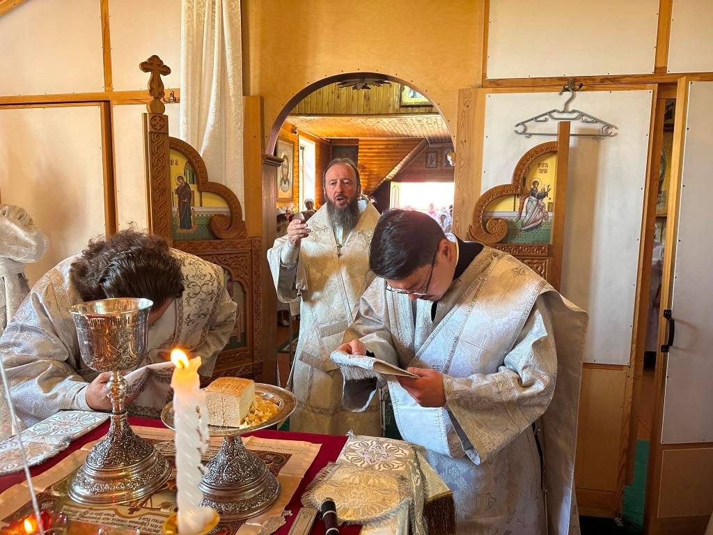В завершение праздничной Божественной Литургии архипастырь вознес молитву и окропил святой водой плоды нового урожая. На могиле строителя Преображенского храма иерея Виктора Калины была отслужена заупокойная лития.