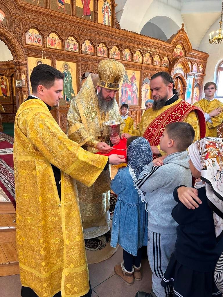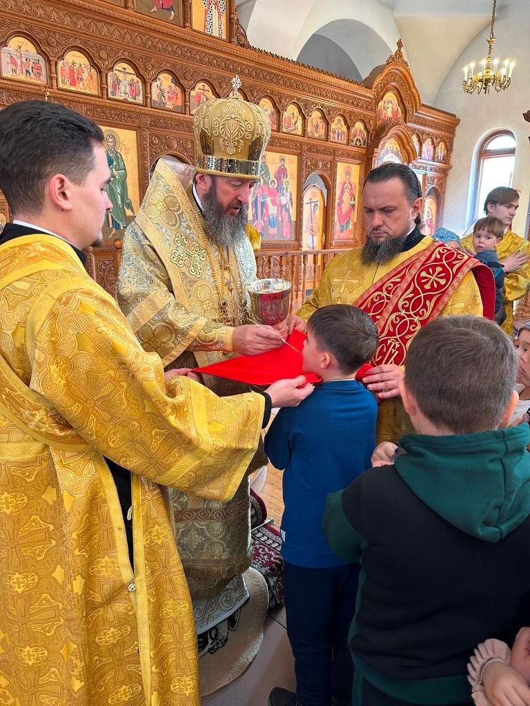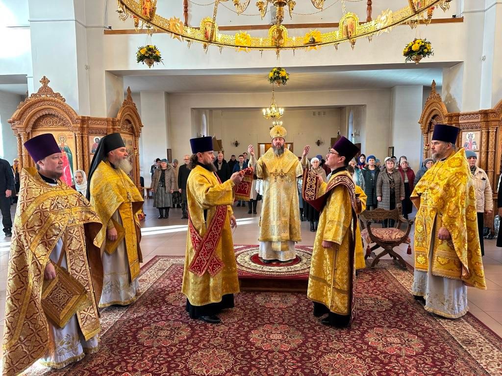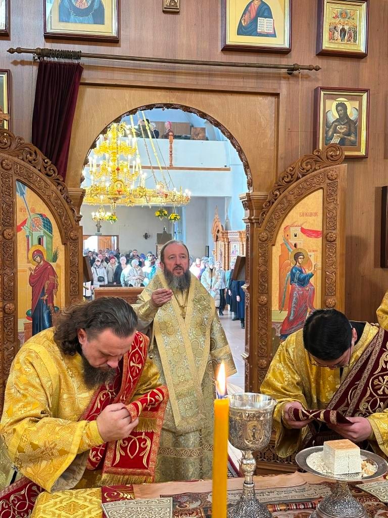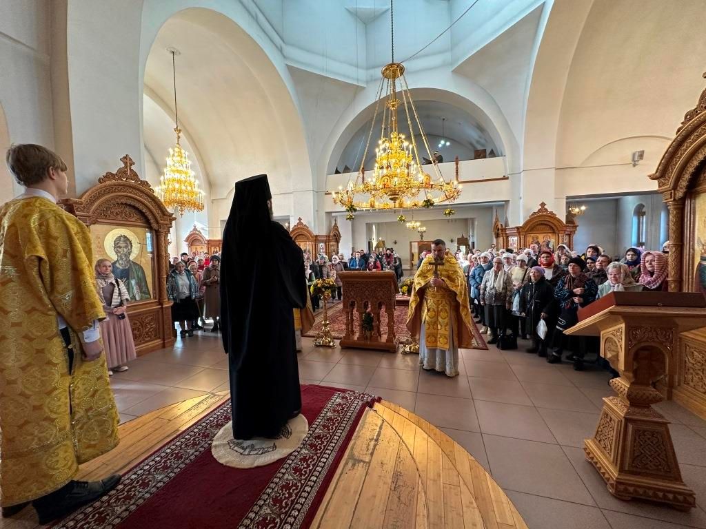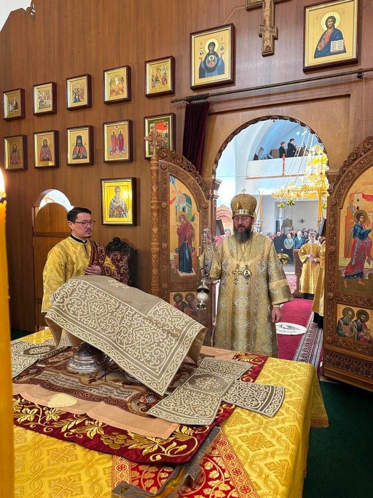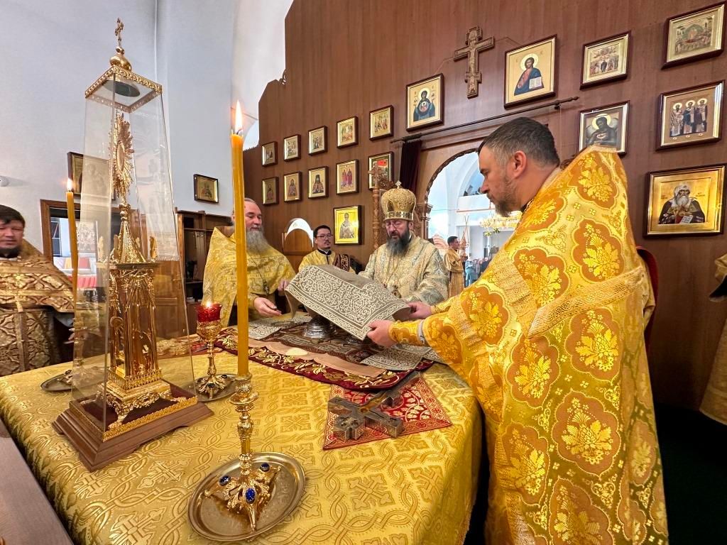 За богослужением пел хор Андреевского собора, регент Н. Романцова. Перед причастием мирян проповедь произнёс священник Виталий Адаменков. Воскресное богослужение посетили воспитанники Центральной воскресной школы, прихожане кафедрального собора, насельники Свято-Троицкого мужского монастыря города Усть-Каменогорска и сотрудники епархиального управления.