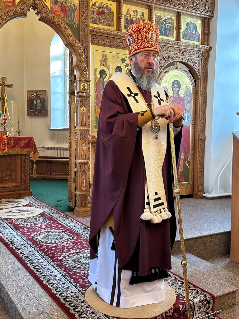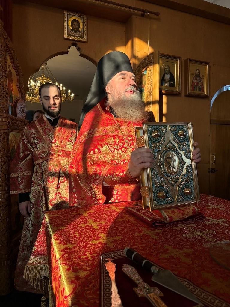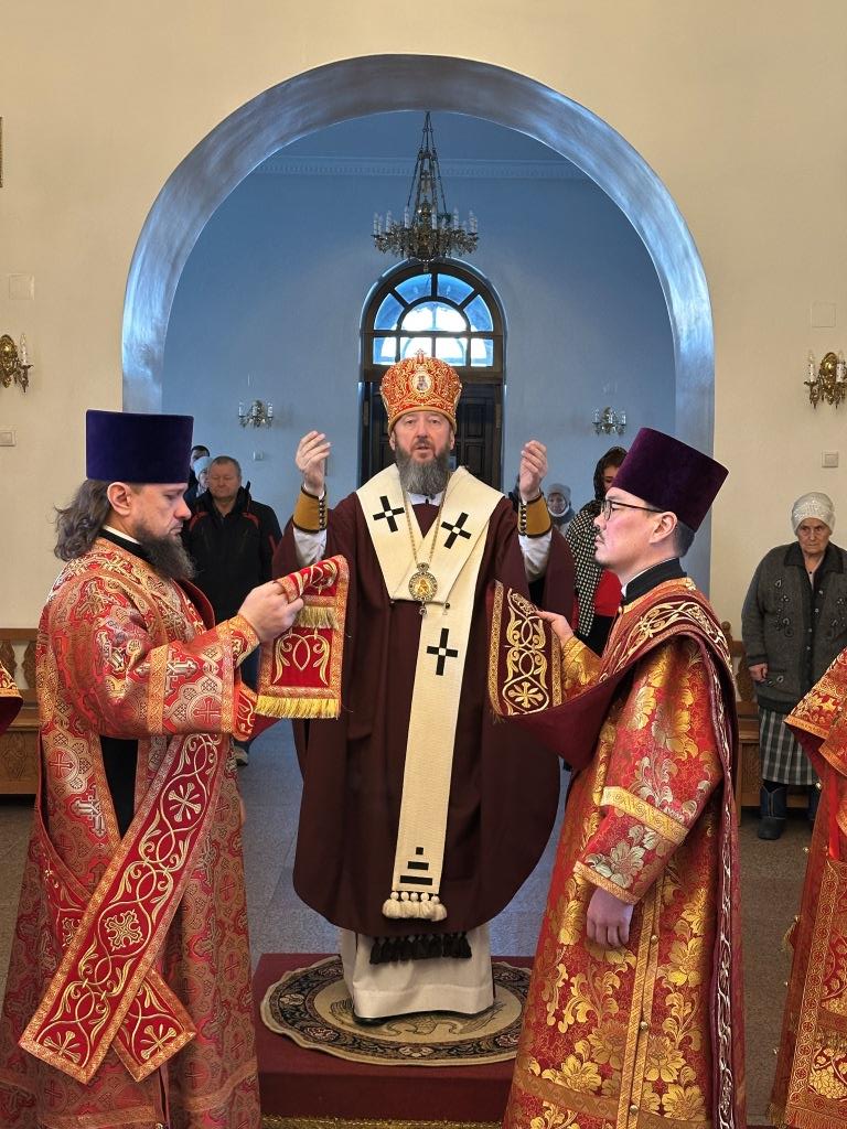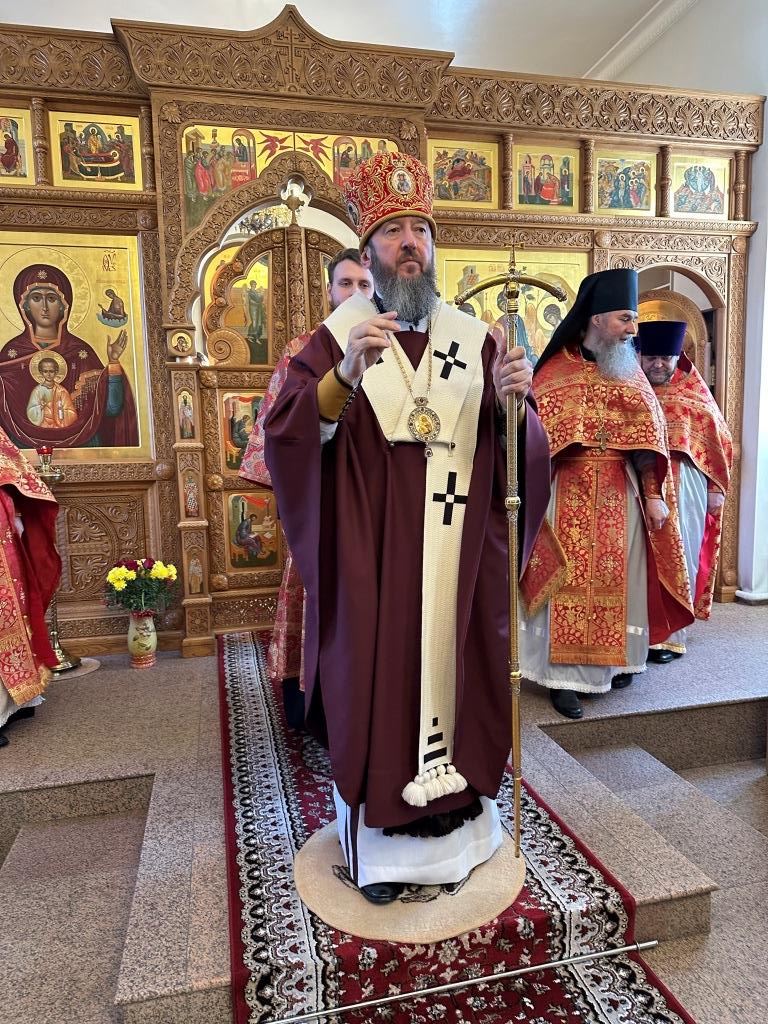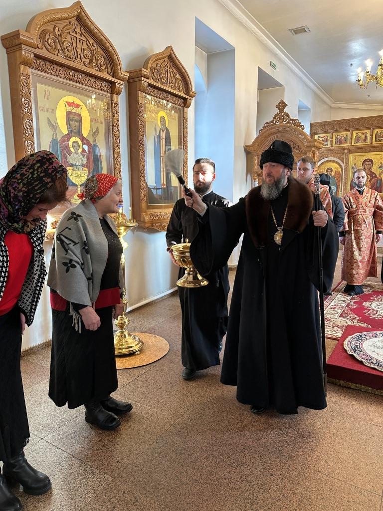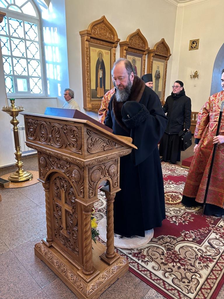 После заамвонной молитвы было совершено славление святой великомученице Варваре. В завершение Божественной Литургии архиепископ Амфилохий преподал моящимся Божие благословение и обратился к прихожанам со словами поучения.