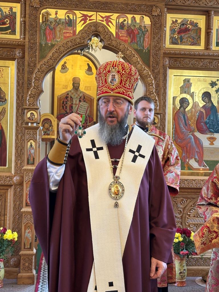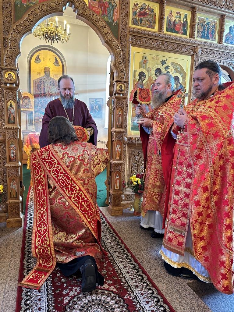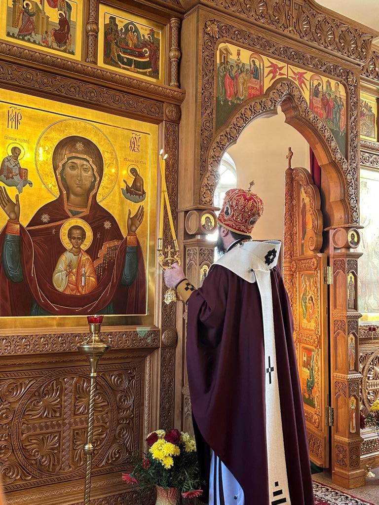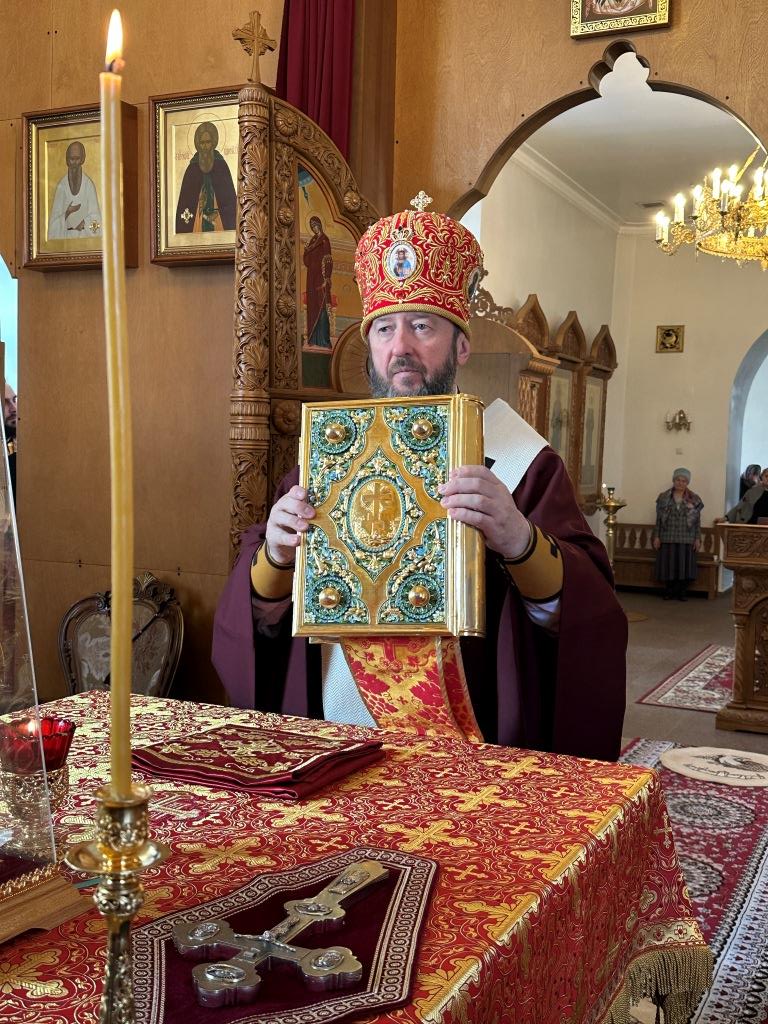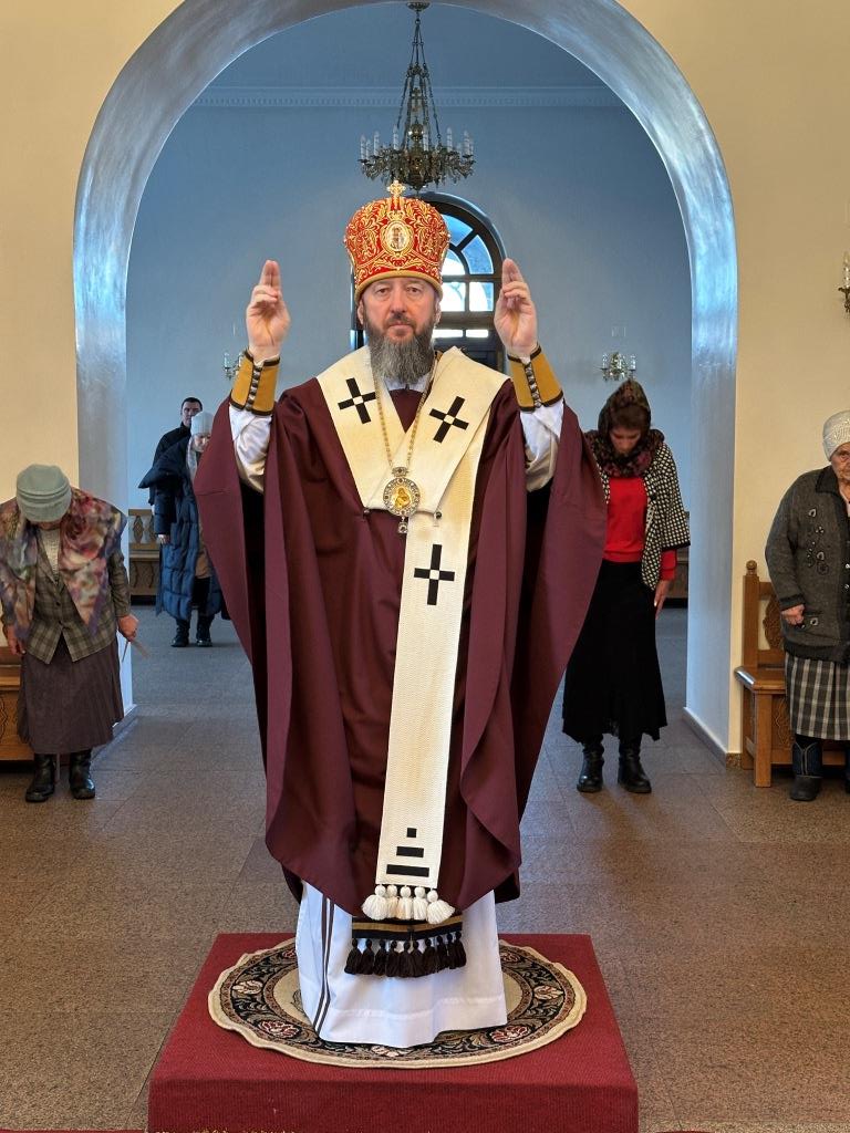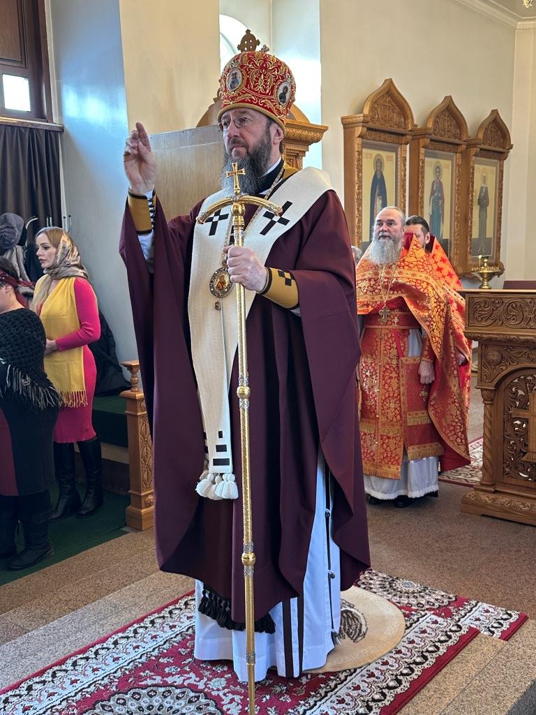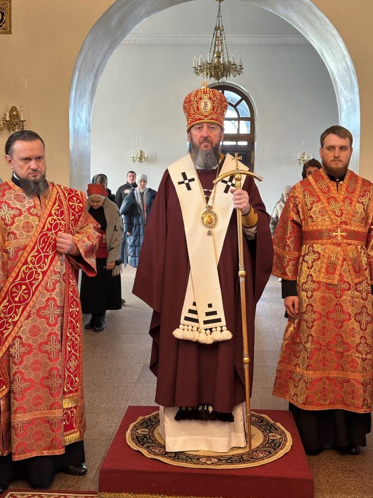 После заамвонной молитвы было совершено славление святой великомученице Варваре. В завершение Божественной Литургии архиепископ Амфилохий преподал моящимся Божие благословение и обратился к прихожанам со словами поучения.
