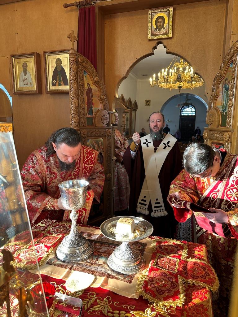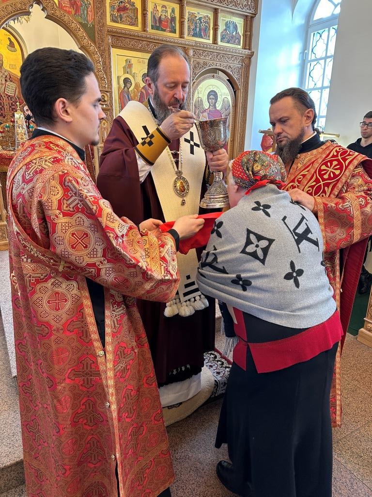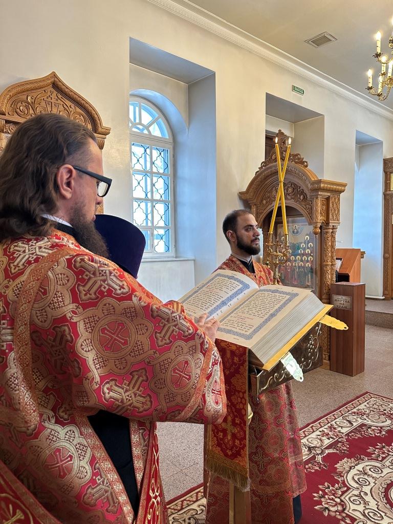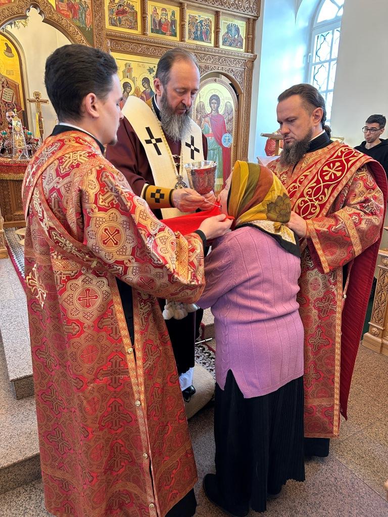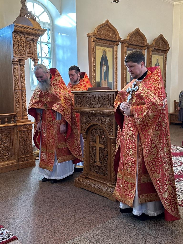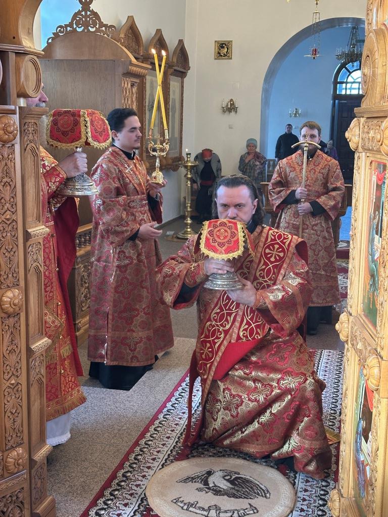 За богослужением молились и причащались Христовых Таин прихожане Андреевского собора, сотрудники епархиального управления и насельники Свято-Троицкого мужского монастыря города Усть-Каменогорска. Литургические песнопения исполнял хор кафедрального собора, регент Н. Романцова. Перед причастием мирян проповедовал священник Роман Подрезов.