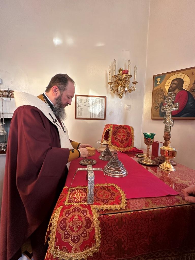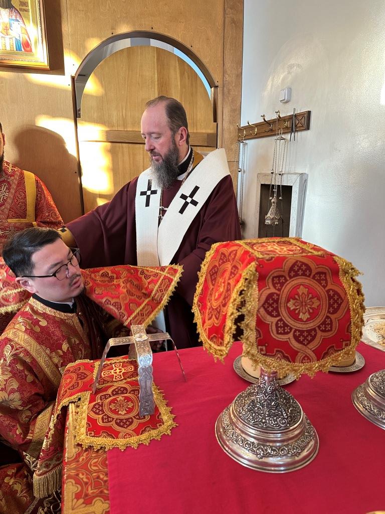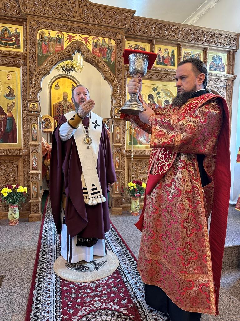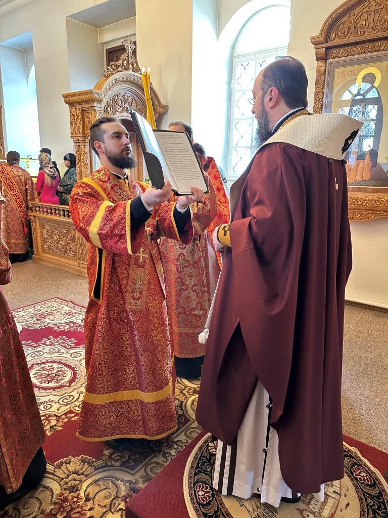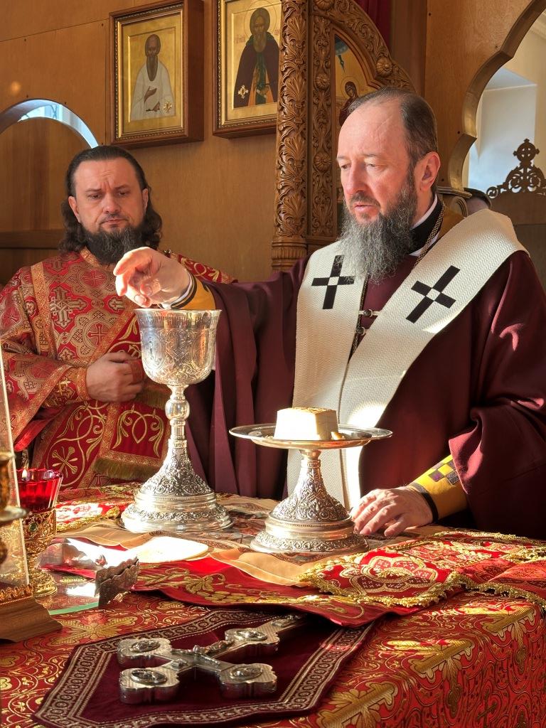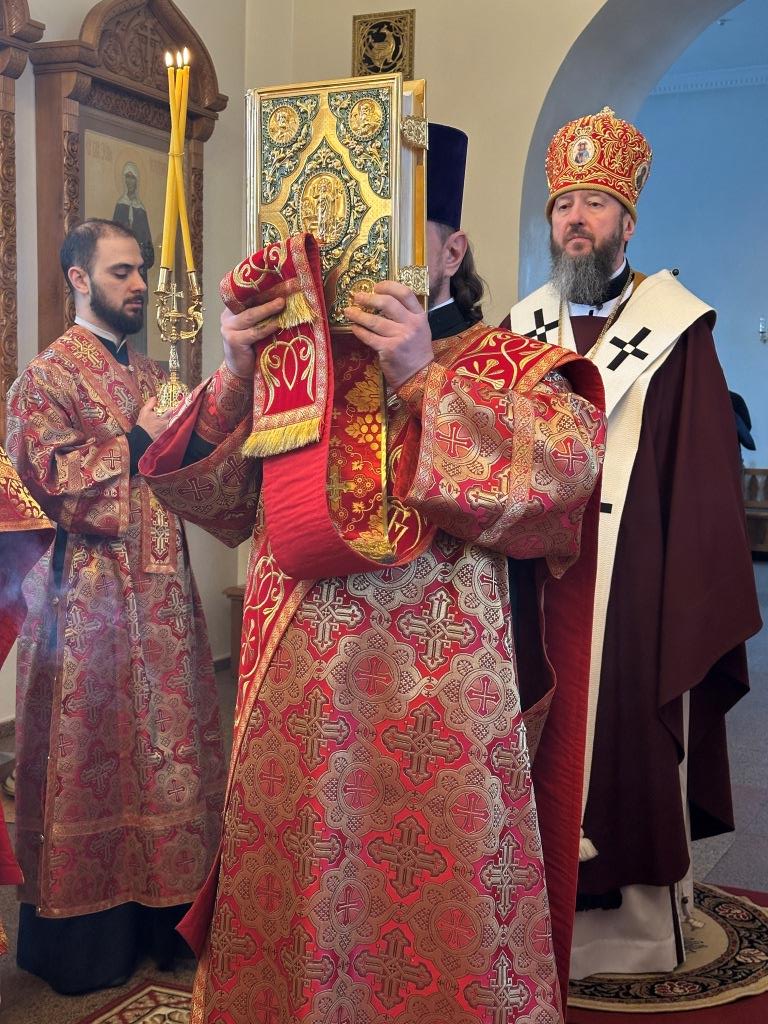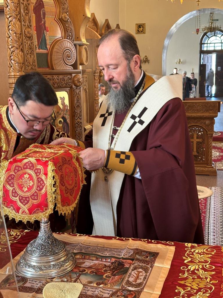 За богослужением молились и причащались Христовых Таин прихожане Андреевского собора, сотрудники епархиального управления и насельники Свято-Троицкого мужского монастыря города Усть-Каменогорска. Литургические песнопения исполнял хор кафедрального собора, регент Н. Романцова. Перед причастием мирян проповедовал священник Роман Подрезов.