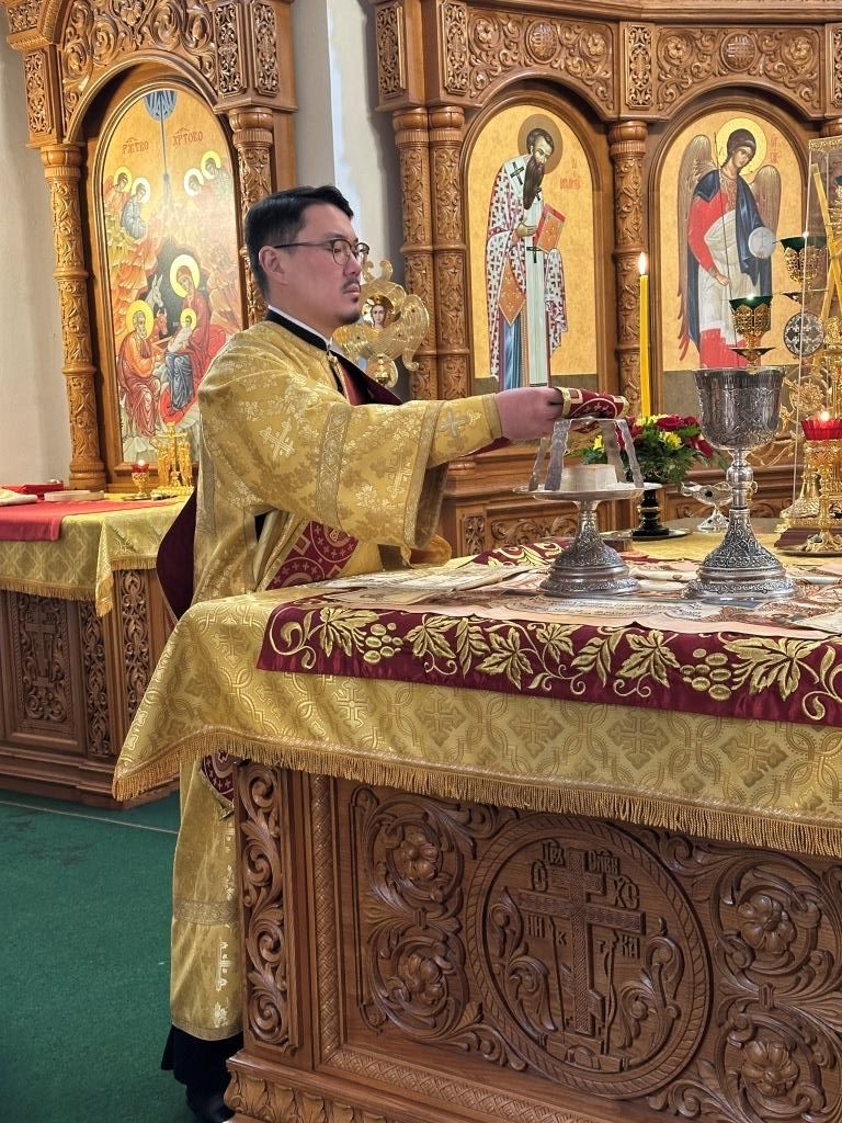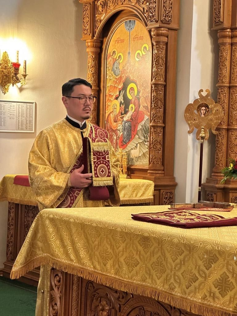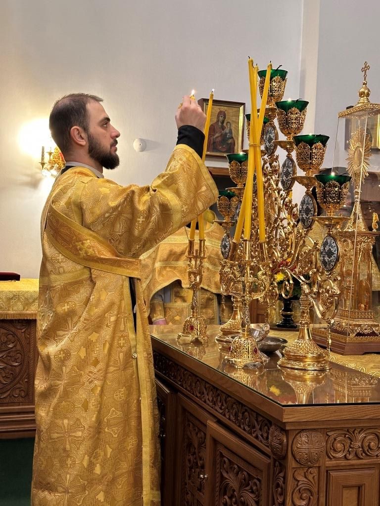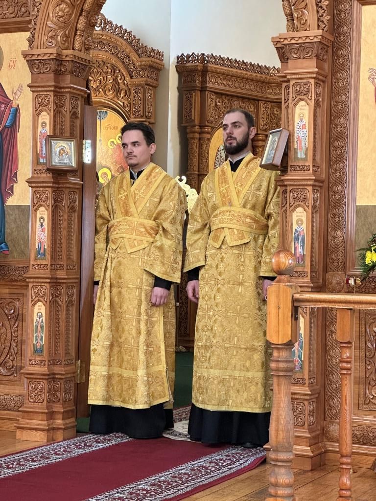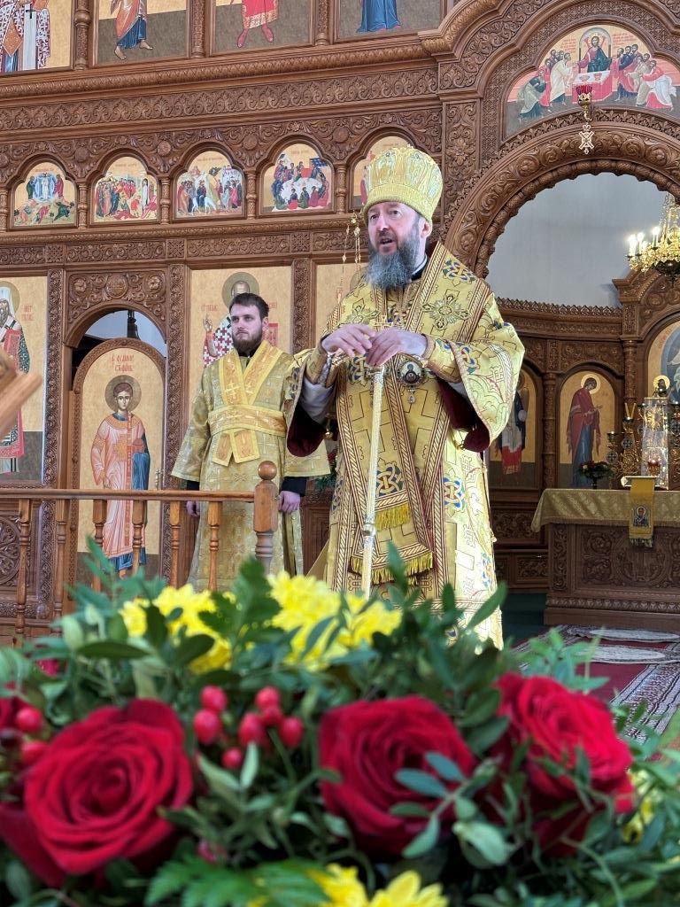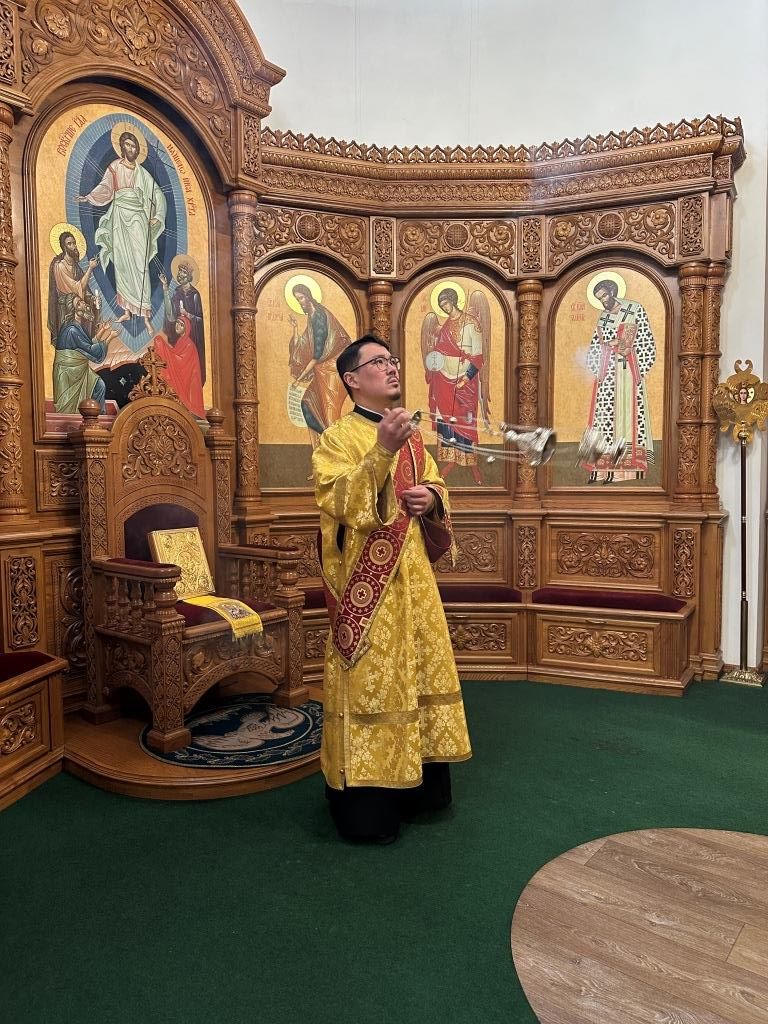 Его Высокопреосвященству сослужили: ключарь кафедрального собора иеромонах Никодим (Авдеев), клирики собора иерей Роман Подрезов и иерей Константин Дьяков, протодиакон Андрей Дудник, секретарь епархии диакон Илия Кван.