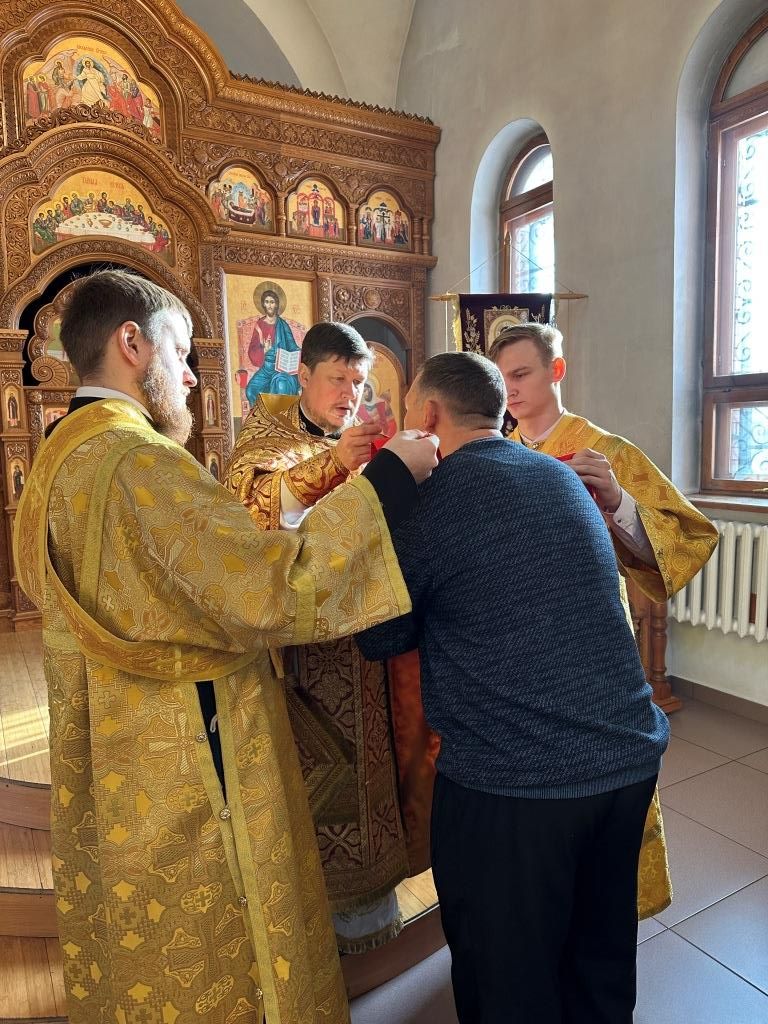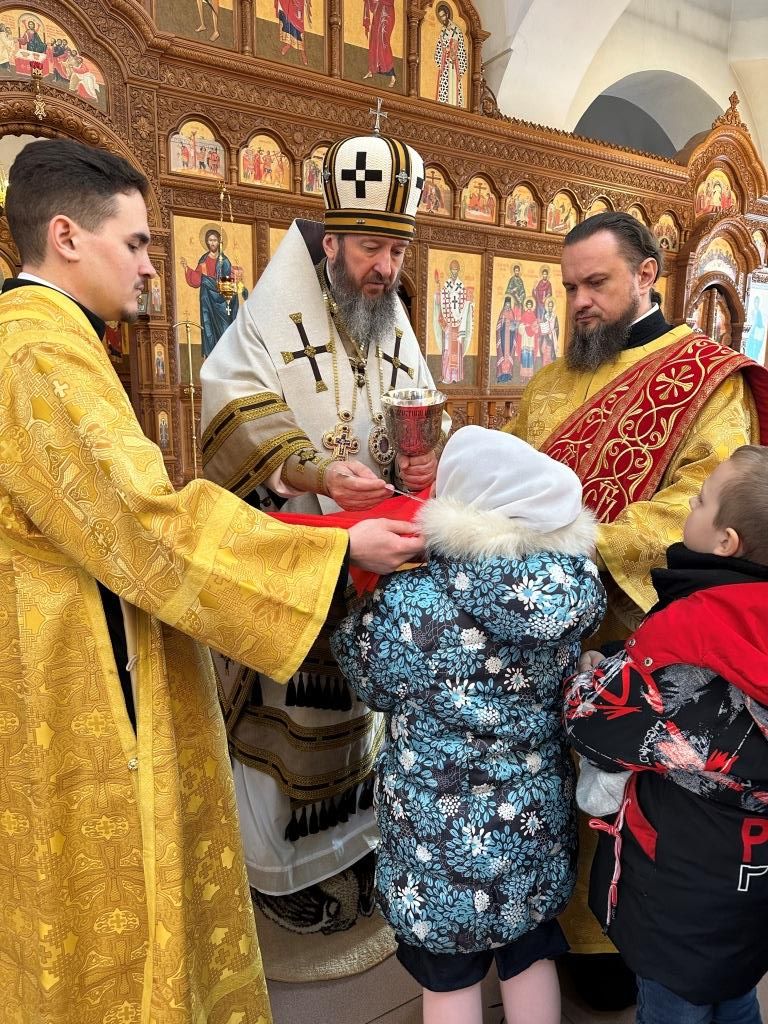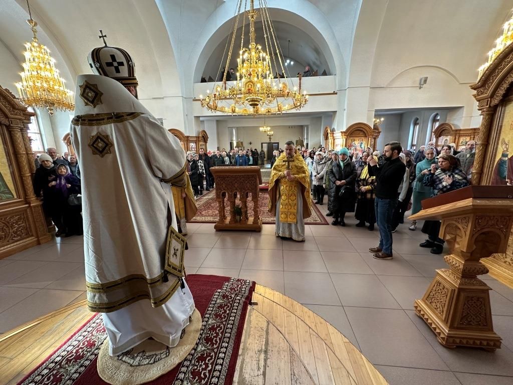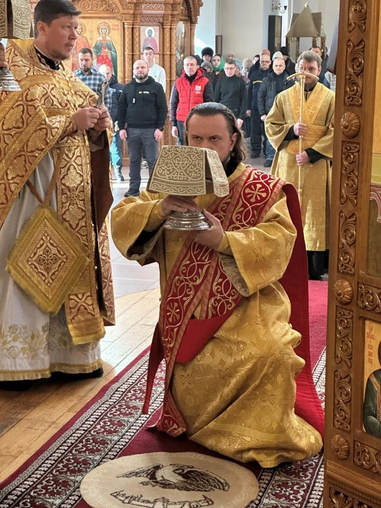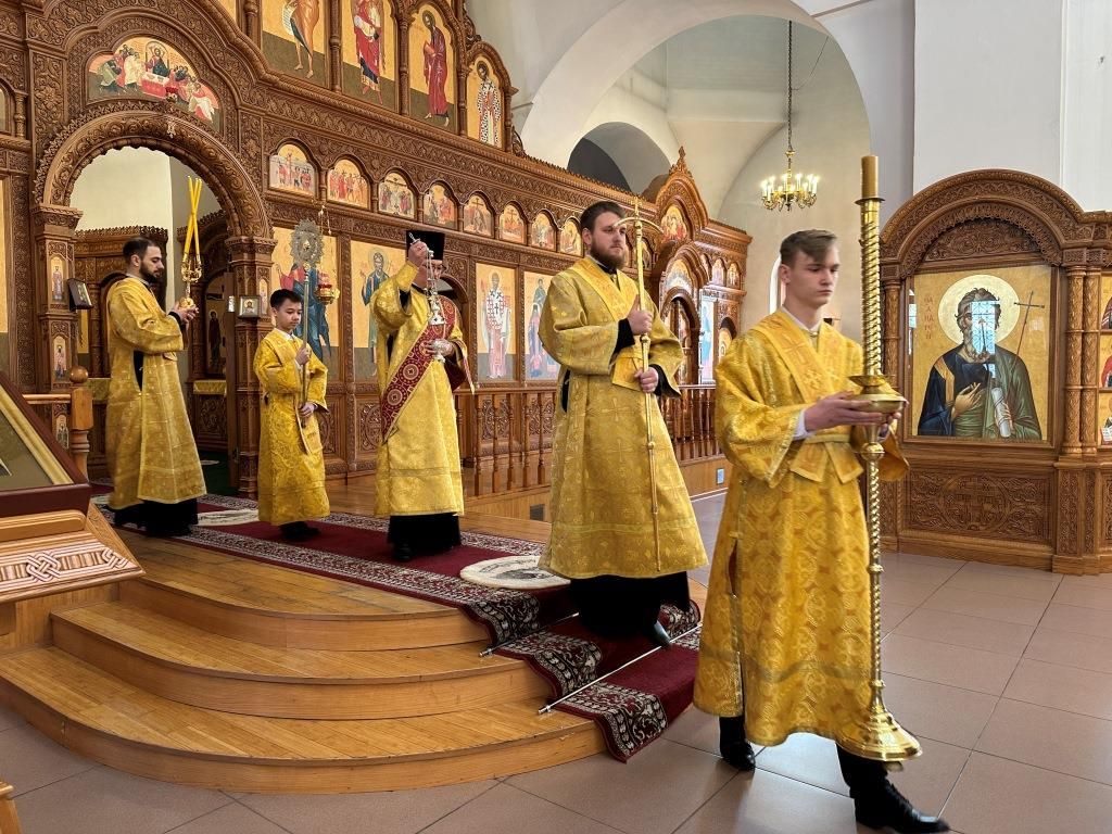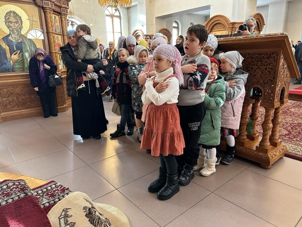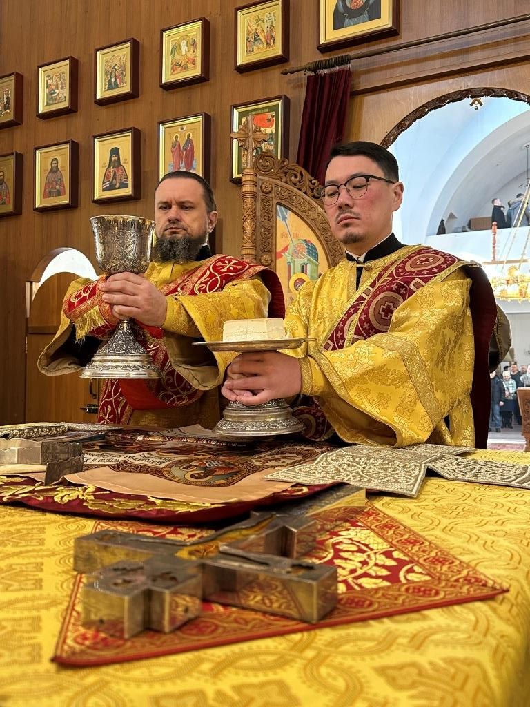 Хор Андреевского собора под управлением регента Н. Романцовой исполнял богослужебные песнопения. Перед причастием мирян проповедовал священник Виталий Адаменков. За воскресным богослужением молились и причащались Святых Христовых Таин прихожане кафедрального собора, насельники Свято-Троицкого мужского монастыря города Усть-Каменогорска, сотрудники епархиального управления и воспитанники Центральной воскресной школы.