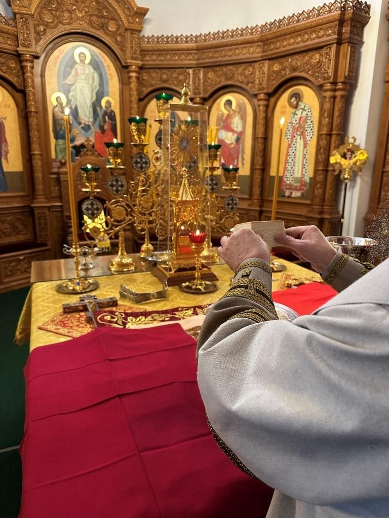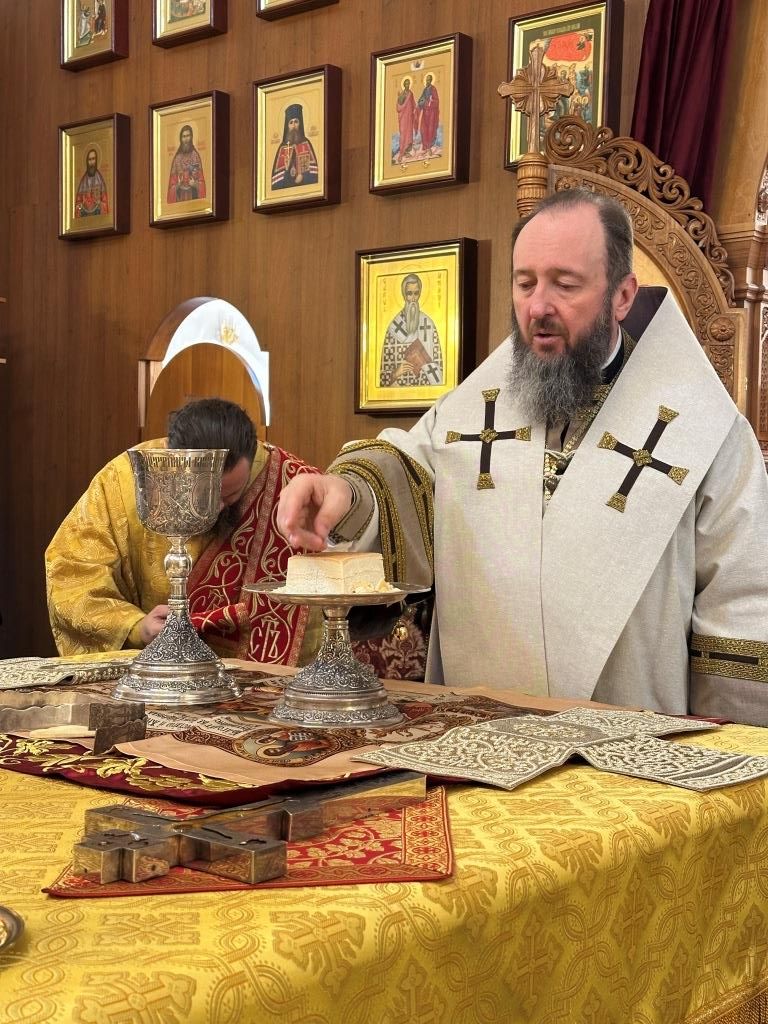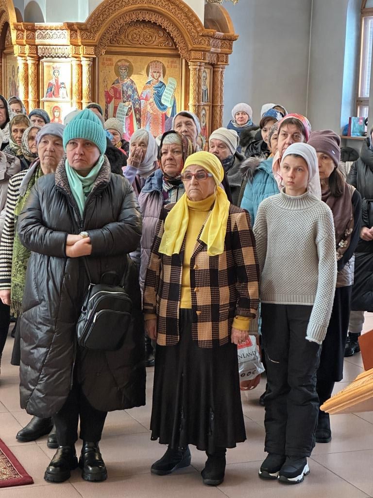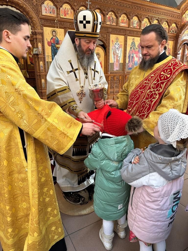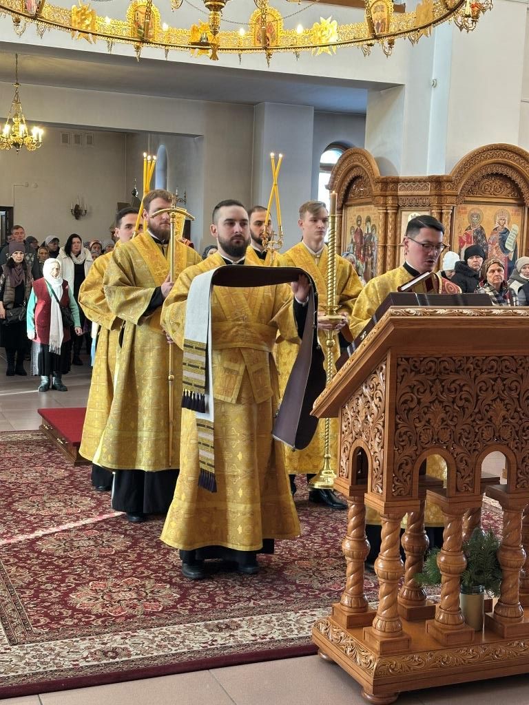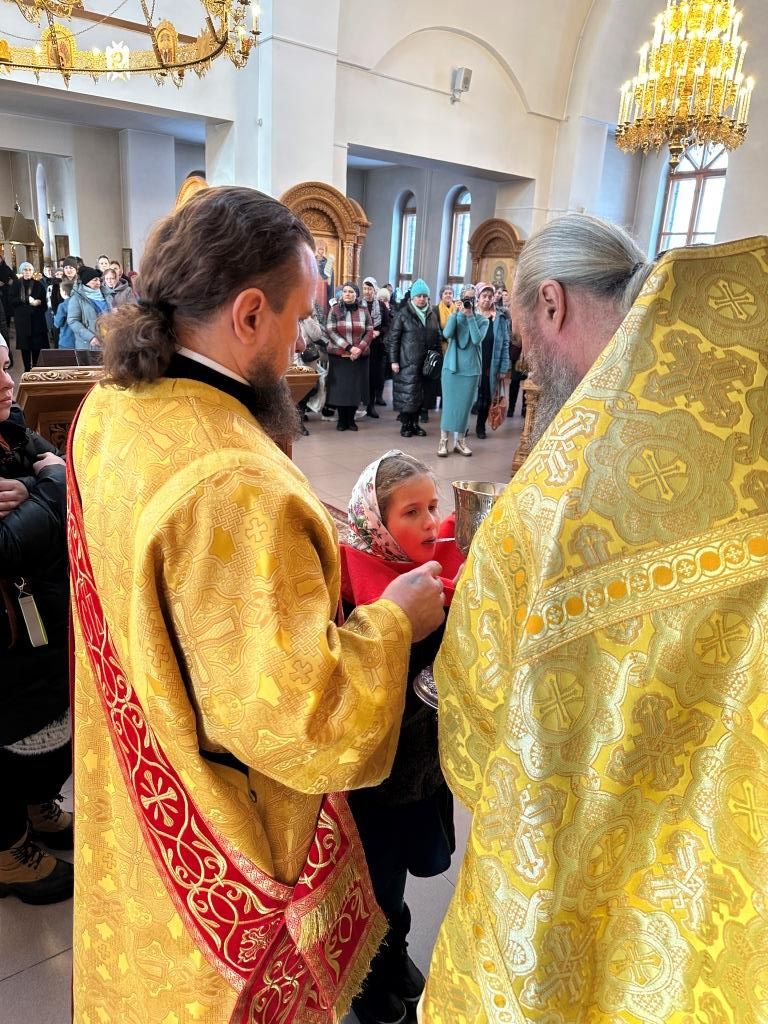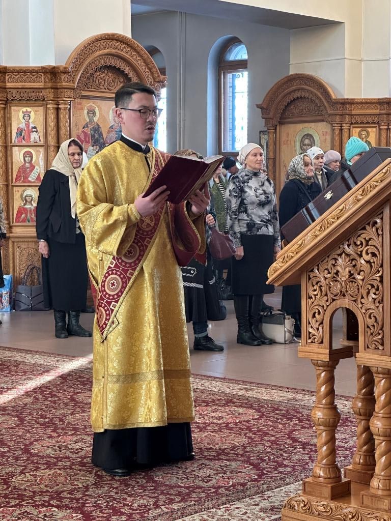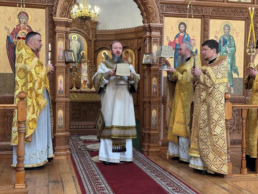 Хор Андреевского собора под управлением регента Н. Романцовой исполнял богослужебные песнопения. Перед причастием мирян проповедовал священник Виталий Адаменков. За воскресным богослужением молились и причащались Святых Христовых Таин прихожане кафедрального собора, насельники Свято-Троицкого мужского монастыря города Усть-Каменогорска, сотрудники епархиального управления и воспитанники Центральной воскресной школы.