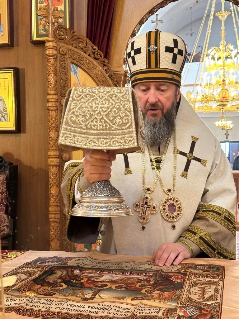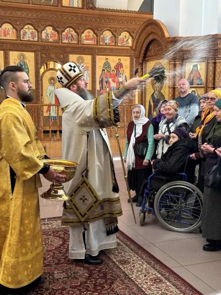 После проповеди Высокопреосвященнейший Архипастырь призвал Божие благословение на всех молящихся и окропил прихожан святой водой.