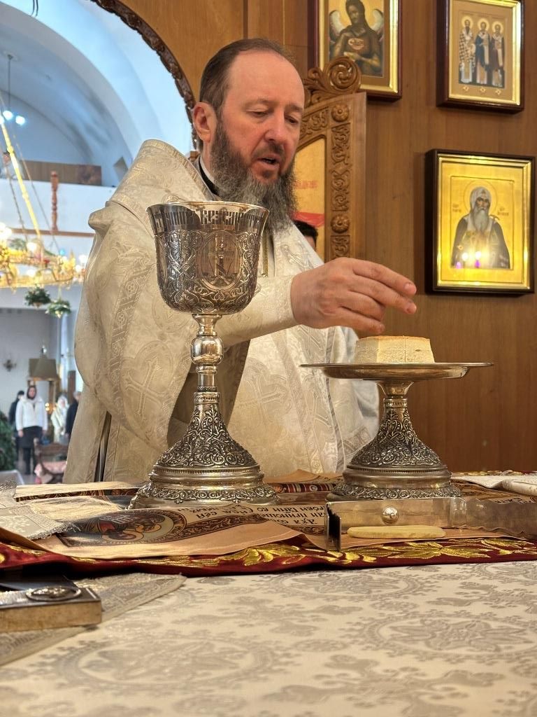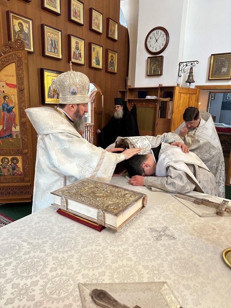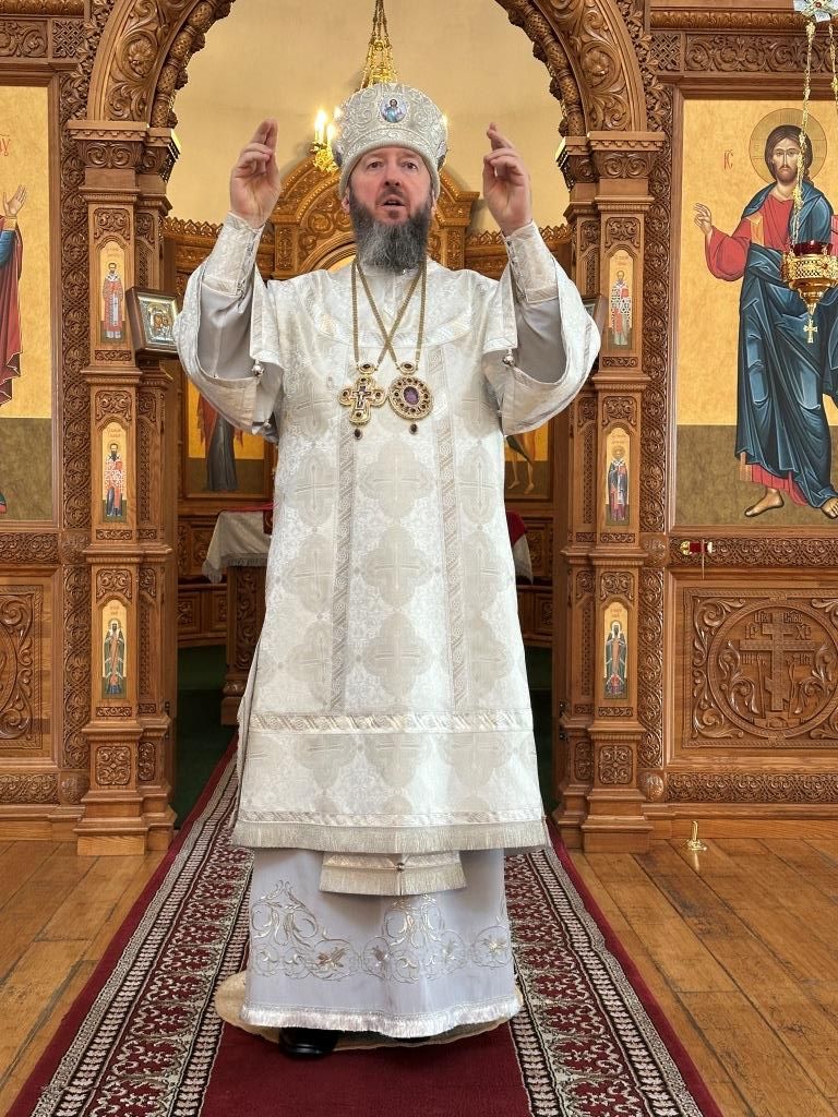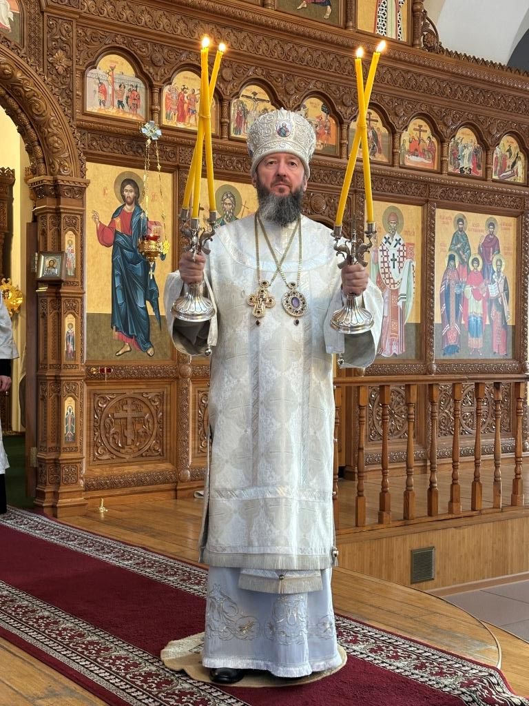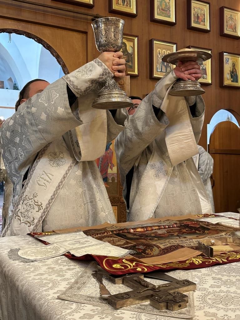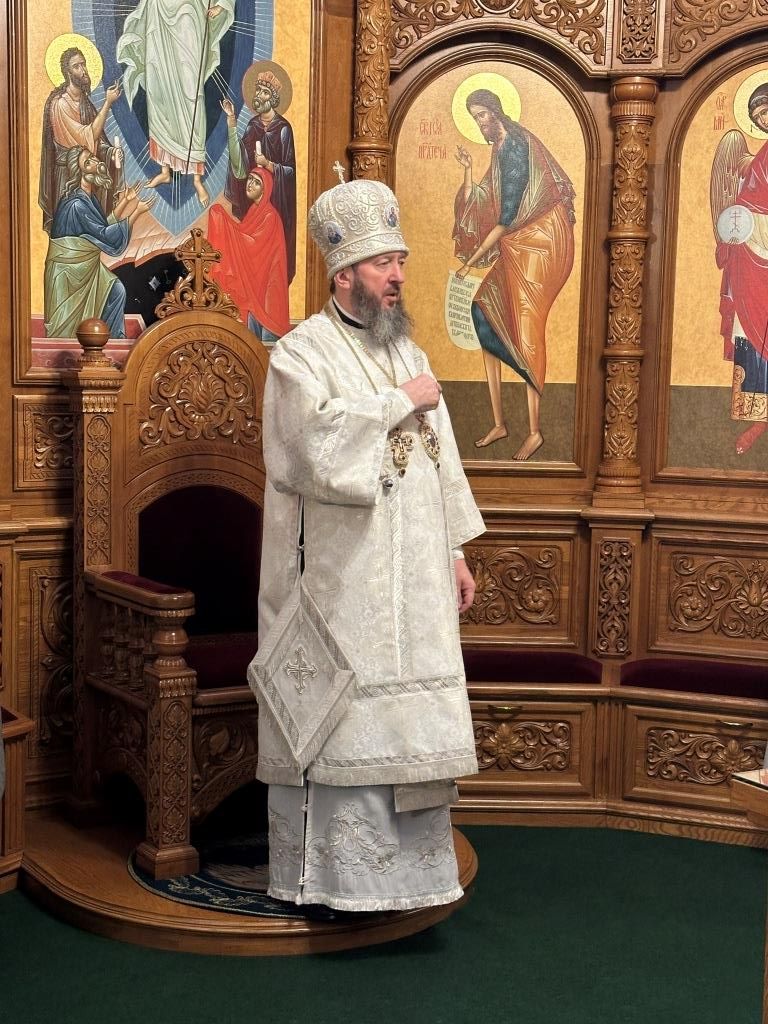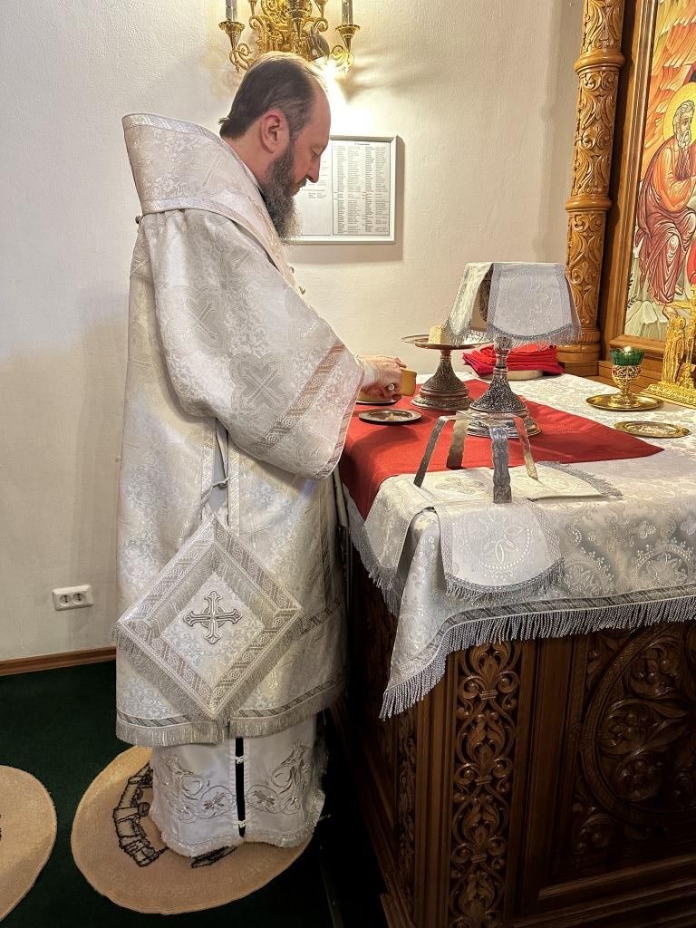 Его Высокопреосвященству сослужили: ключарь Андреевского собора иеромонах Никодим (Авдеев), клирики собора иерей Роман Подрезов, иерей Константин Дьяков, протодиакон Андрей Дудник, секретарь епархии диакон Илия Кван.