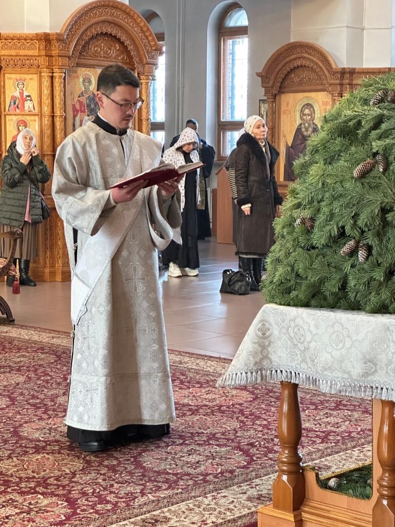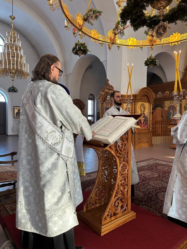 За богослужением читались отрывки из Священного Писания Ветхого и Нового Заветов, в частности, 8 паремий, повествующие о пророчествах, посвященных рождению Мессии – Сына Божия и Спасителя мира.