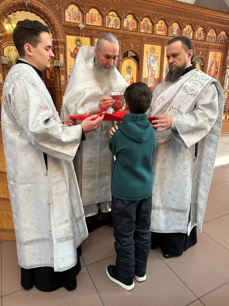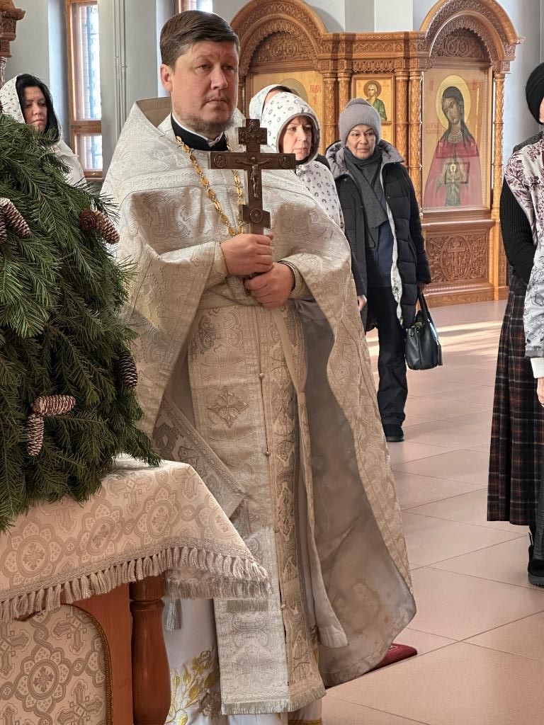 Перед причастием мирян проповедовал иерей Роман Подрезов. После отпуста Божественной Литургии духовенство и молящиеся воспели у праздничной иконы тропарь и кондак Рождества Христова.