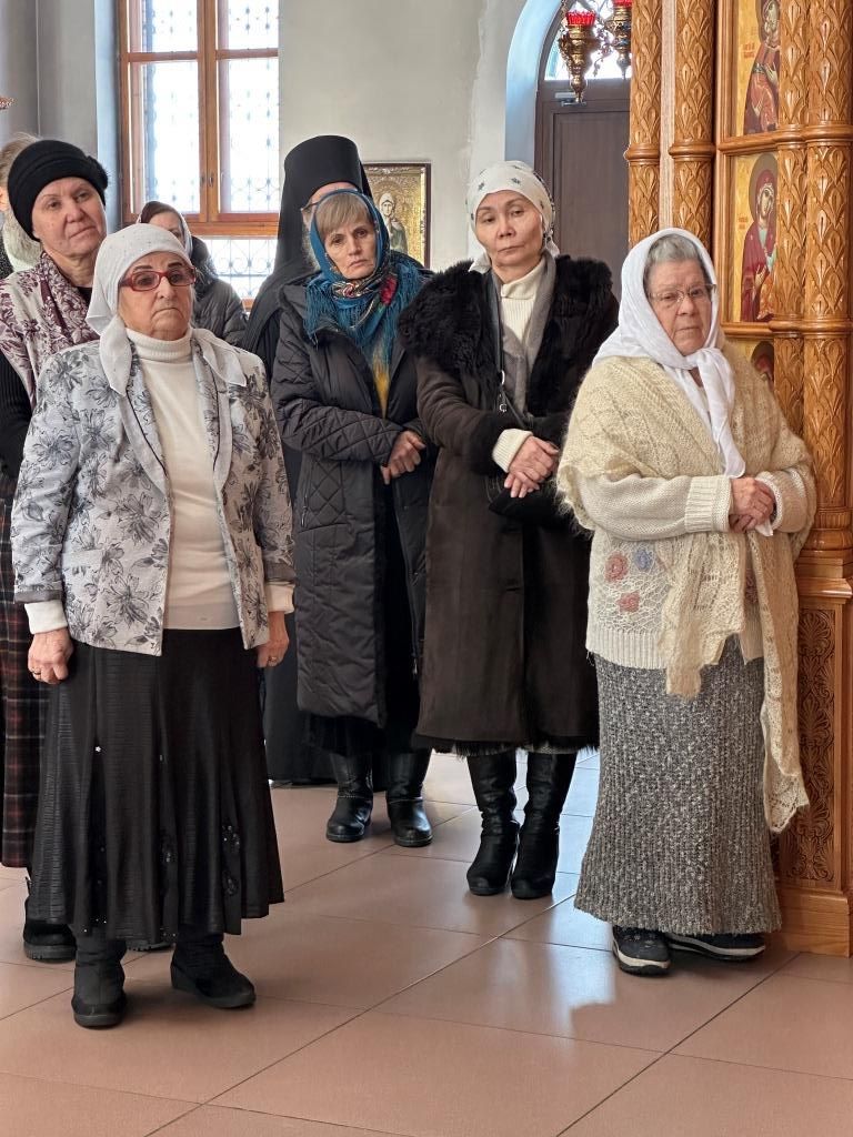 Праздничные песнопения исполнял хор кафедрального собора, регент Н. Романцова. В храме молились сотрудники епархиального управления, насельники Свято-Троицкого мужского монастыря города Усть-Каменогорска и прихожане кафедрального собора.