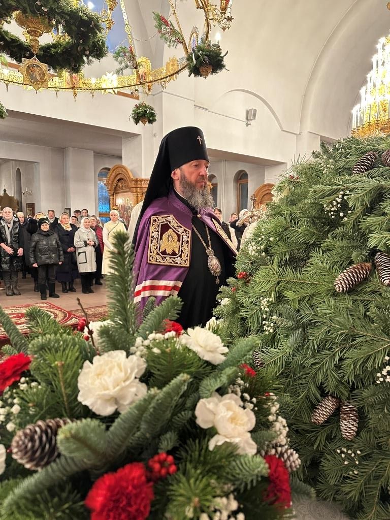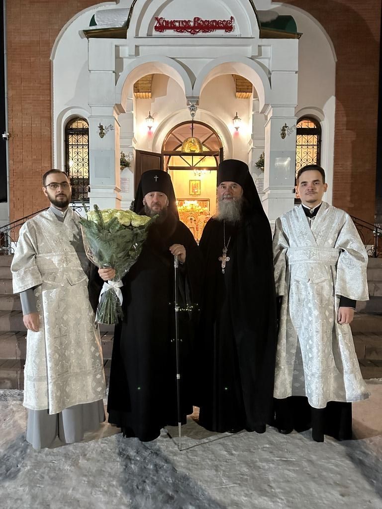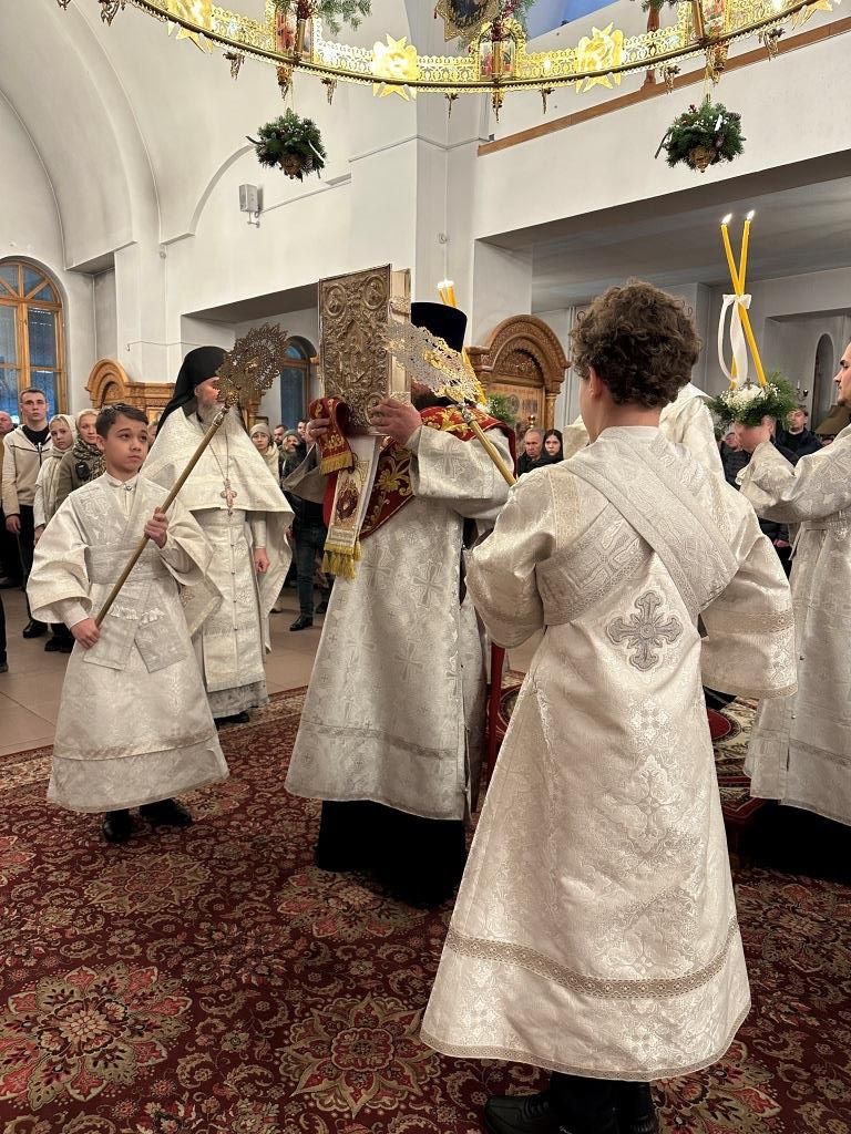 За праздничным ночным богослужением Архипастырю сослужили: ключарь кафедрального собора иеромонах Никодим (Авдеев), клирики собора иерей Роман Подрезов, протодиакон Андрей Дудник, секретарь епархии диакон Илия Кван. Песнопения великого праздника Рождества исполнял хор Андреевского собора под управлением регента Н. Романцовой.