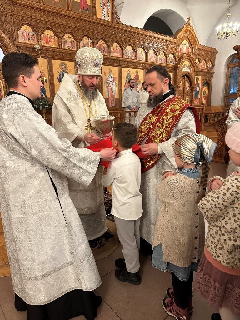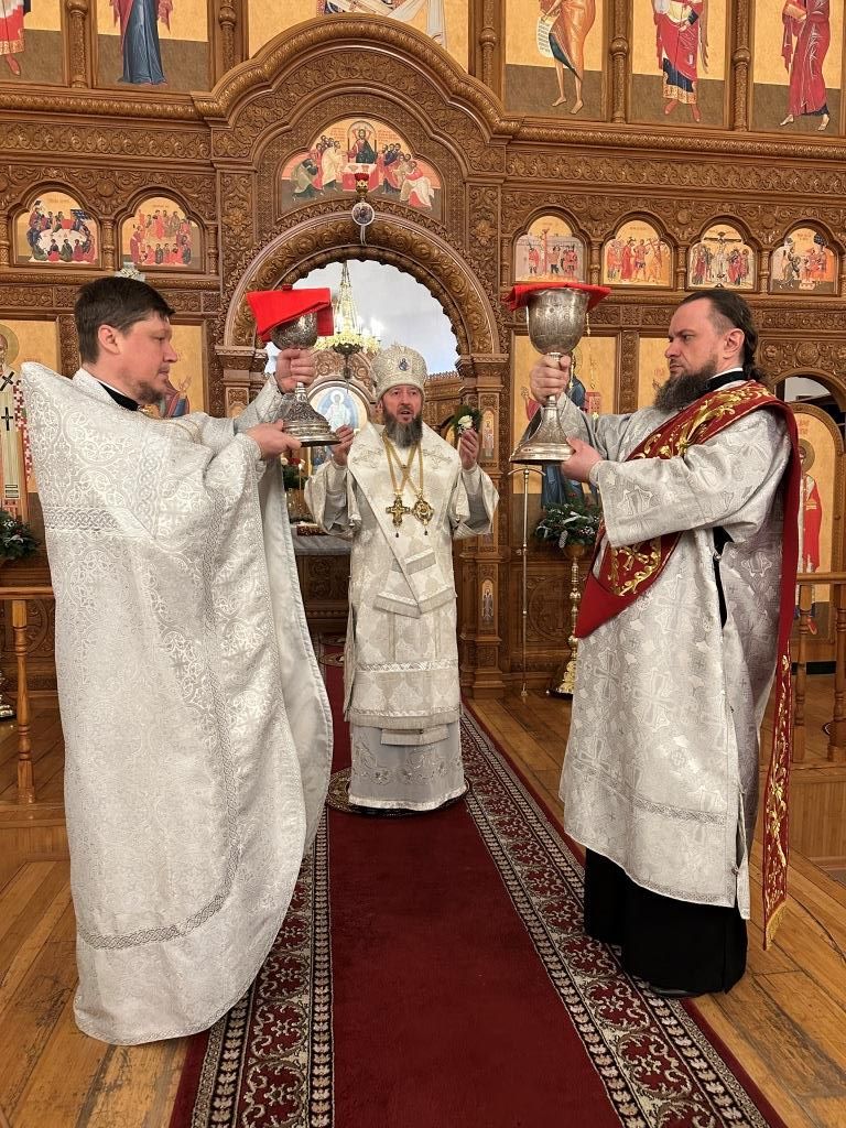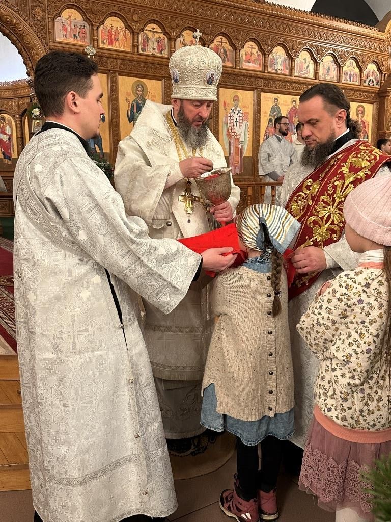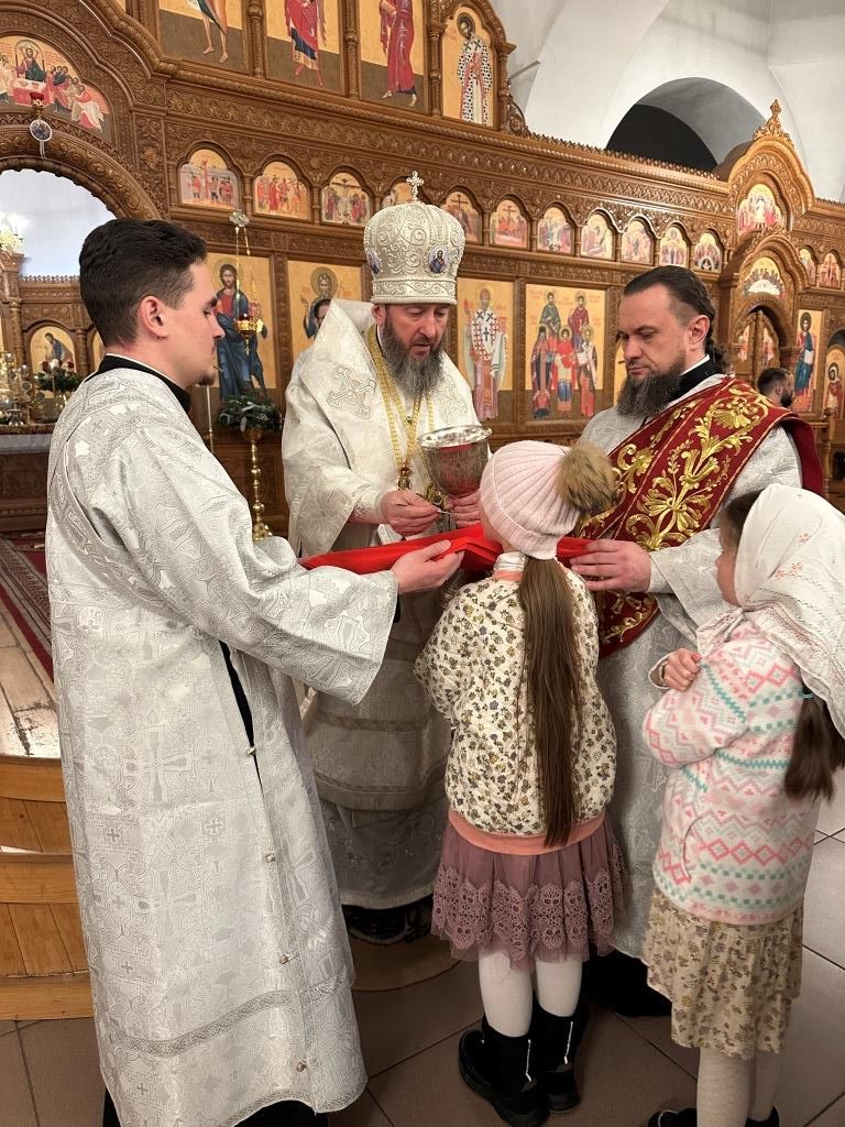 За праздничным богослужением молились и причащались Святых Христовых Таин прихожане и паломники Андреевского кафедрального собора, насельники Свято-Троицкого мужского монастыря города Усть-Каменогорска, сотрудники епархиального управления.