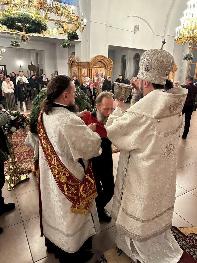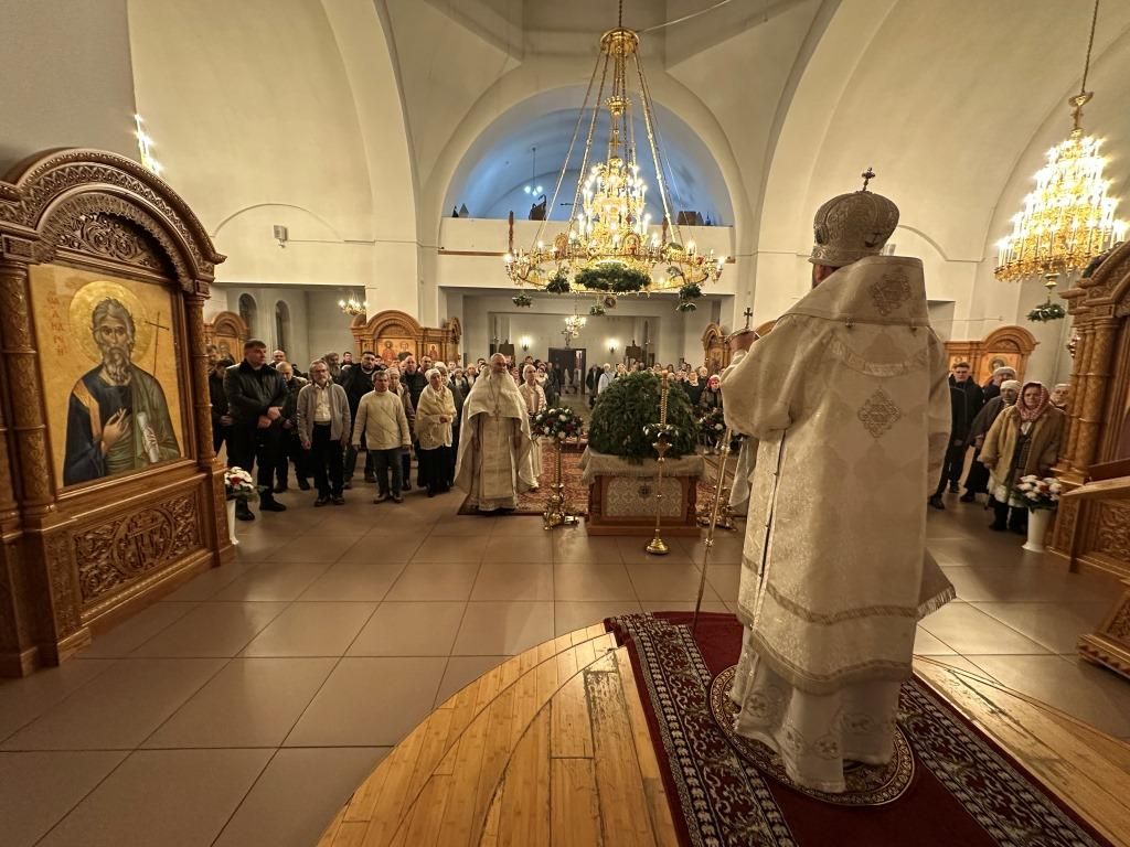 В рождественскую ночь в главном храме Восточного Казахстана, Андреевском кафедральном соборе города Усть-Каменогорска, Высокопреосвященнейший архиепископ Усть-Каменогорский и Семипалатинский Амфилохий возглавил служение Божественной Литургии святителя Иоанна Златоуста. Накануне в кафедральном соборе были совершены уставные богослужения Рождественского Сочельника и нáвечерия Рождества Христова. Перед началом ночной Божественной Литургии в соборе совершалась исповедь для желающих приобщиться Святых Христовых Таин в светлую рождественскую ночь.