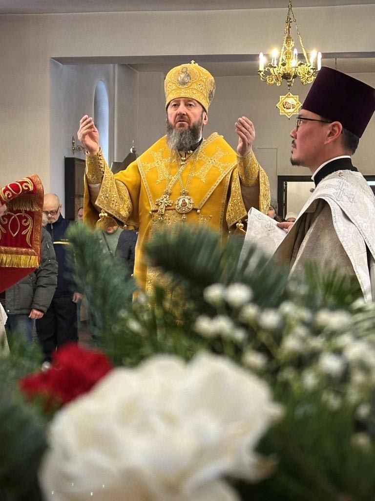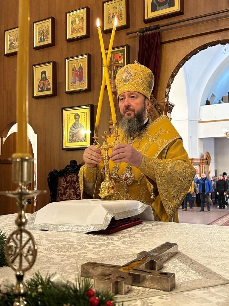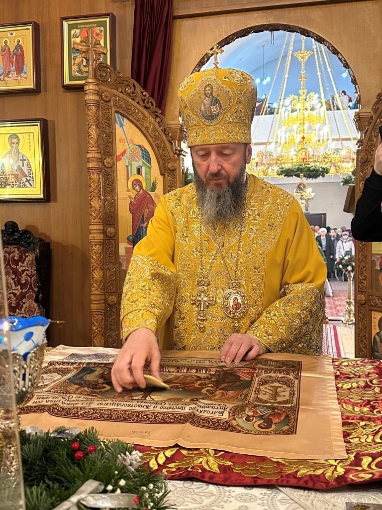 В завершение воскресного богослужения Владыка Амфилохий поздравил прихожан с праздником Рождества Христова и обратился к пастве со словами святительского поучения.