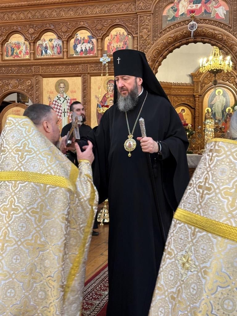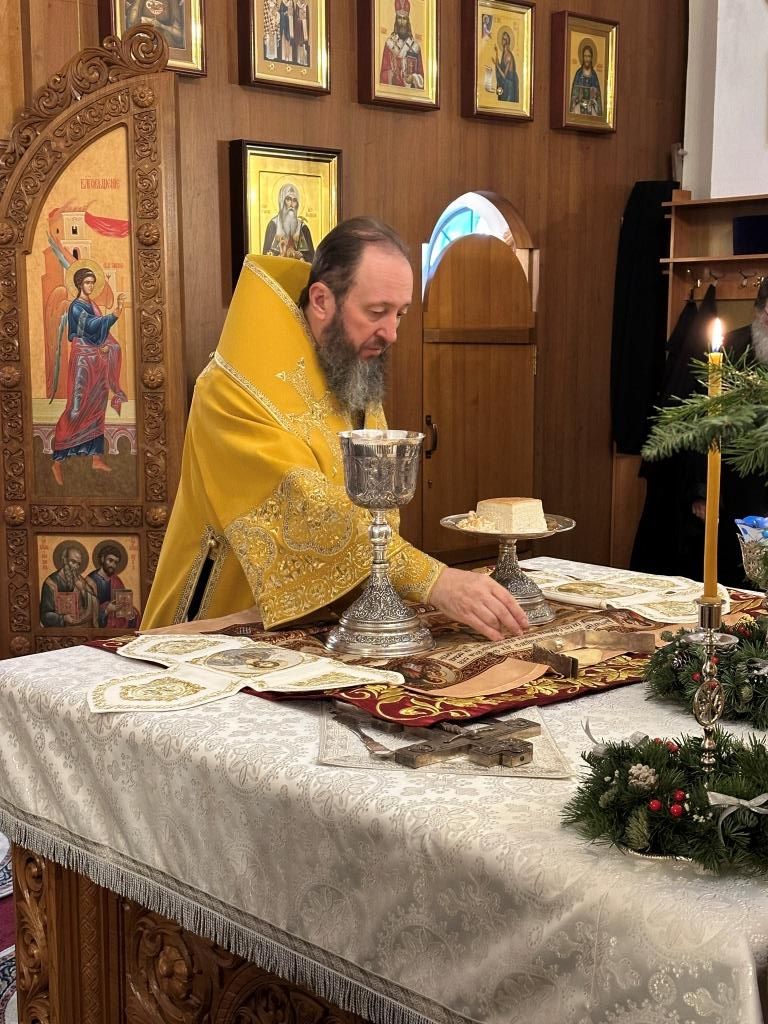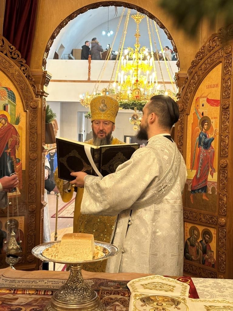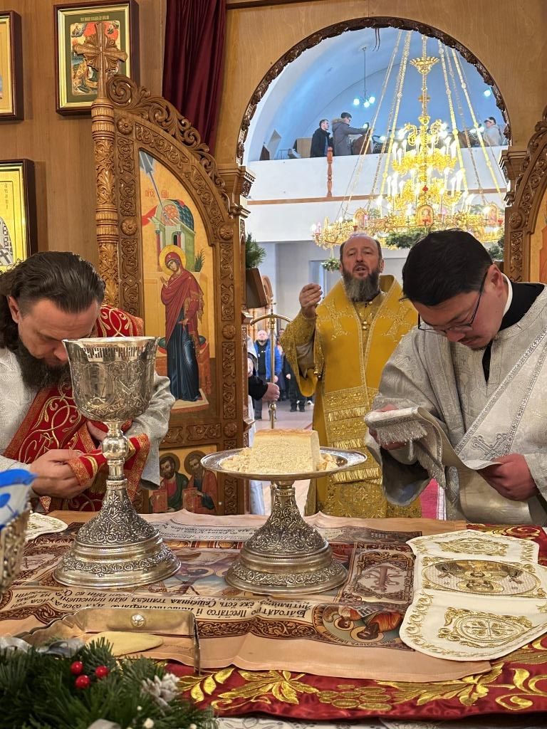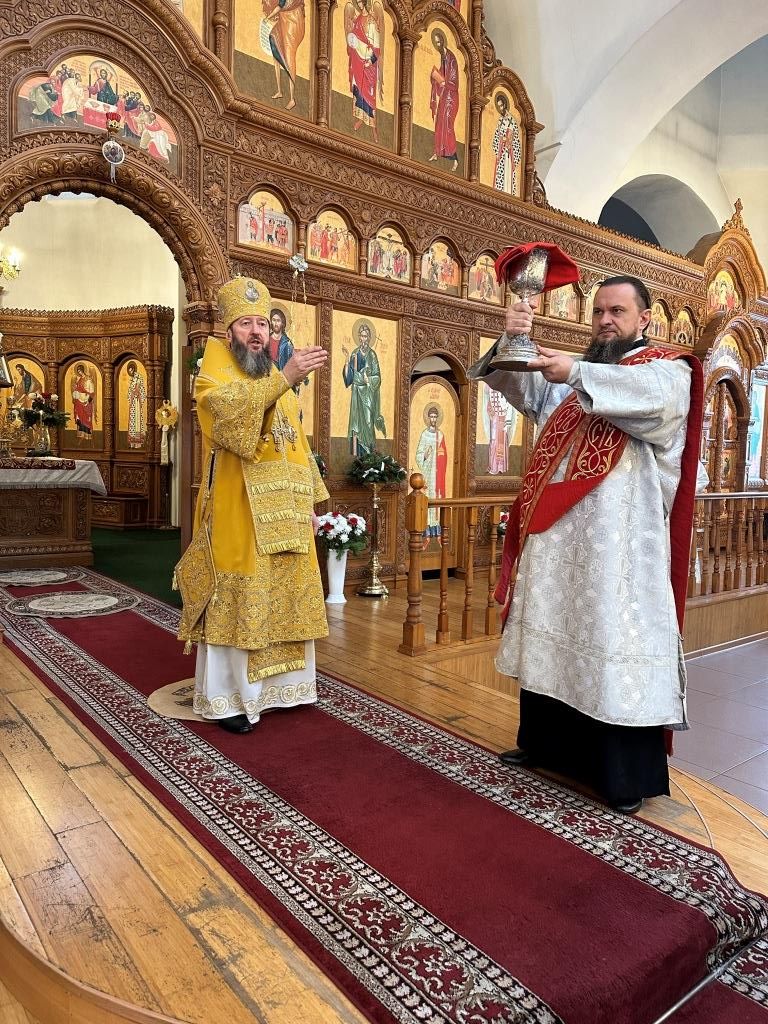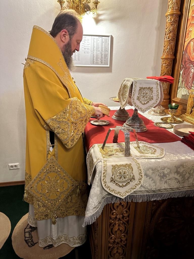 Иерарху сослужили: ключарь кафедрального собора иеромонах Никодим (Авдеев), клирики собора иерей Виталий Адаменков и иерей Константин Дьяков, протодиакон Андрей Дудник, секретарь епархии диакон Илия Кван.