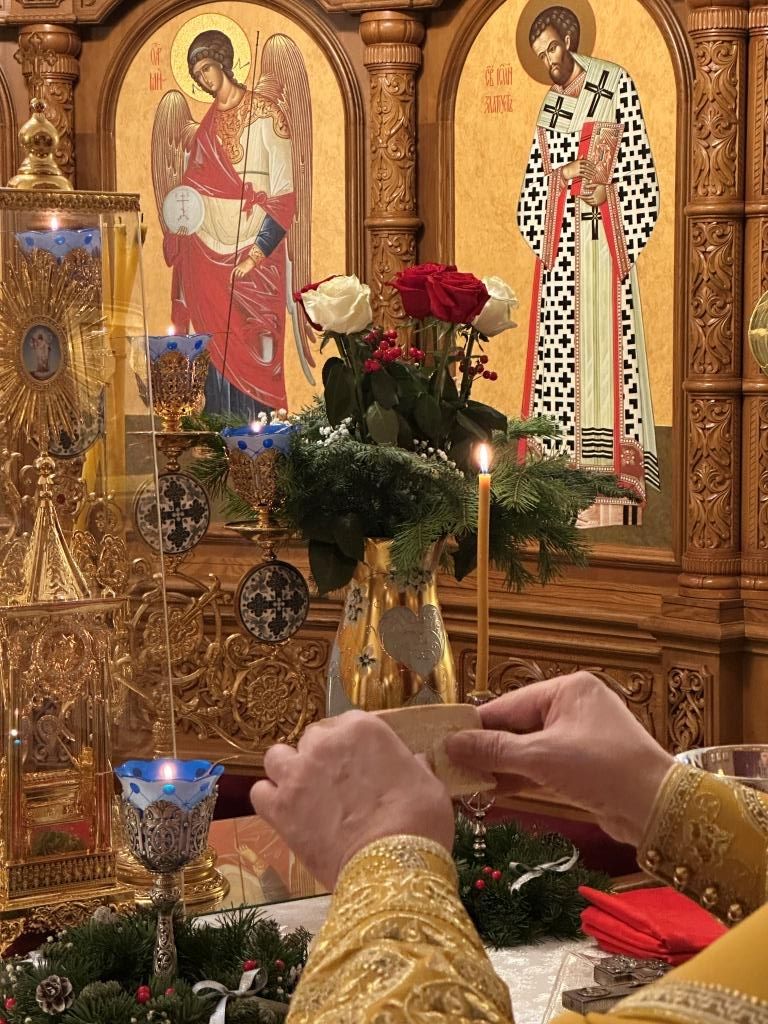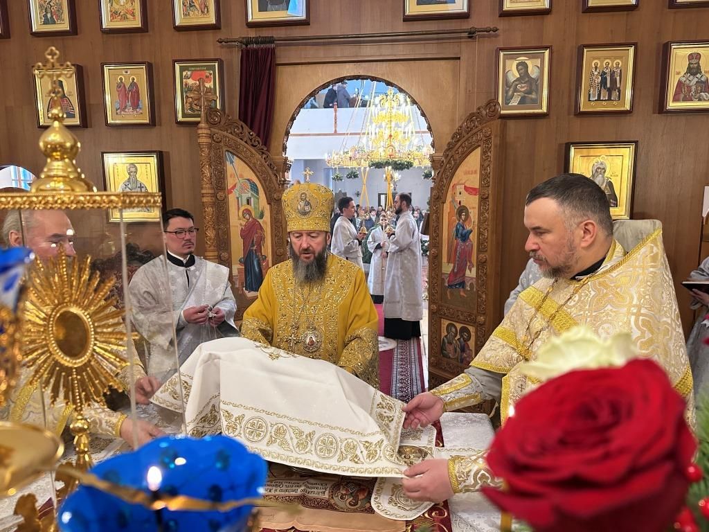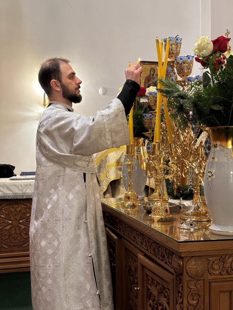 Песнопения Божественной Литургии исполнял хор Андреевского собора под управлением регента Н. Романцовой. Проповедь перед причастием мирян произнёс священник Константин Дьяков.