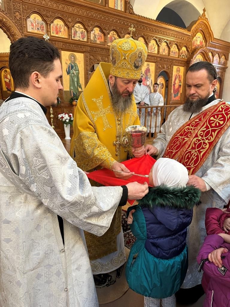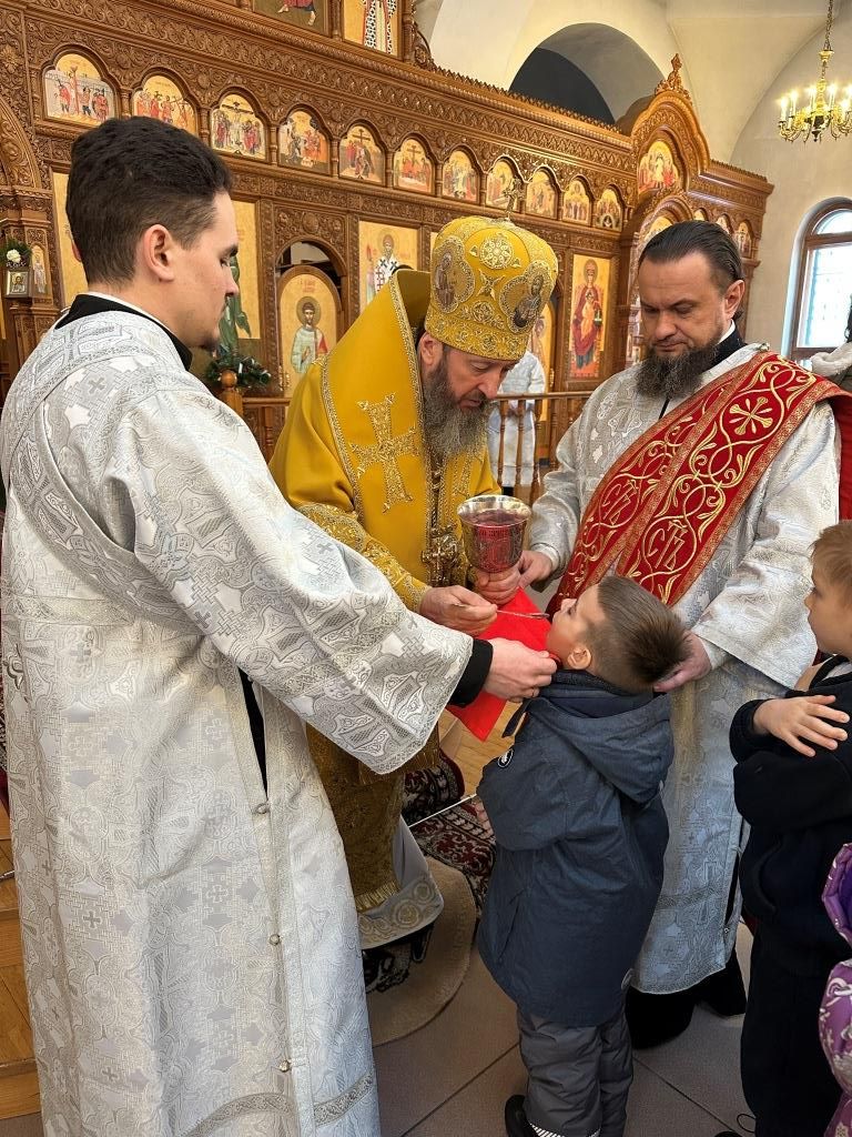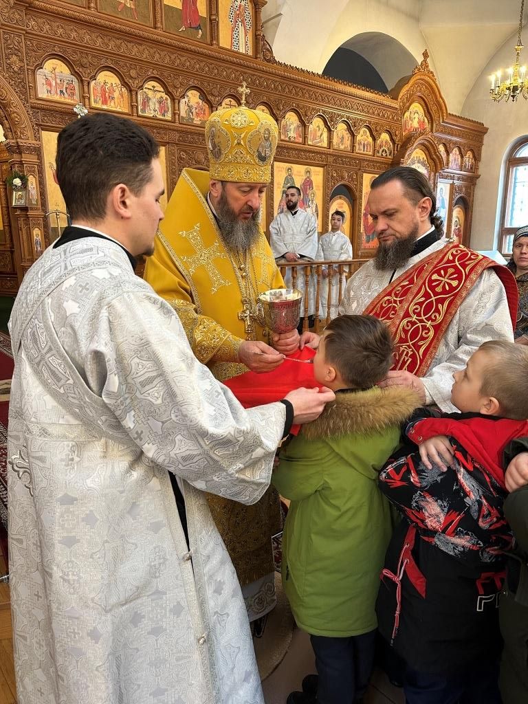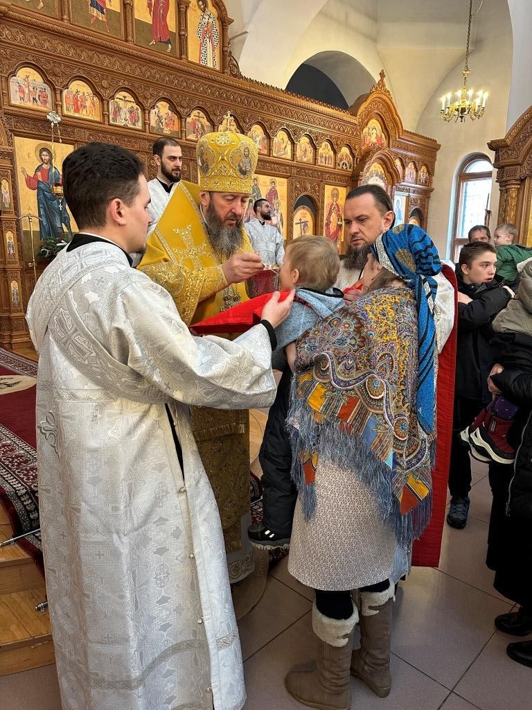 За воскресным богослужением молились и причащались Святых Христовых Таин сотрудники епархиального управления, прихожане кафедрального собора, насельники Свято-Троицкого мужского монастыря города Усть-Каменогорска, преподаватели и воспитанники Центральной воскресной школы.