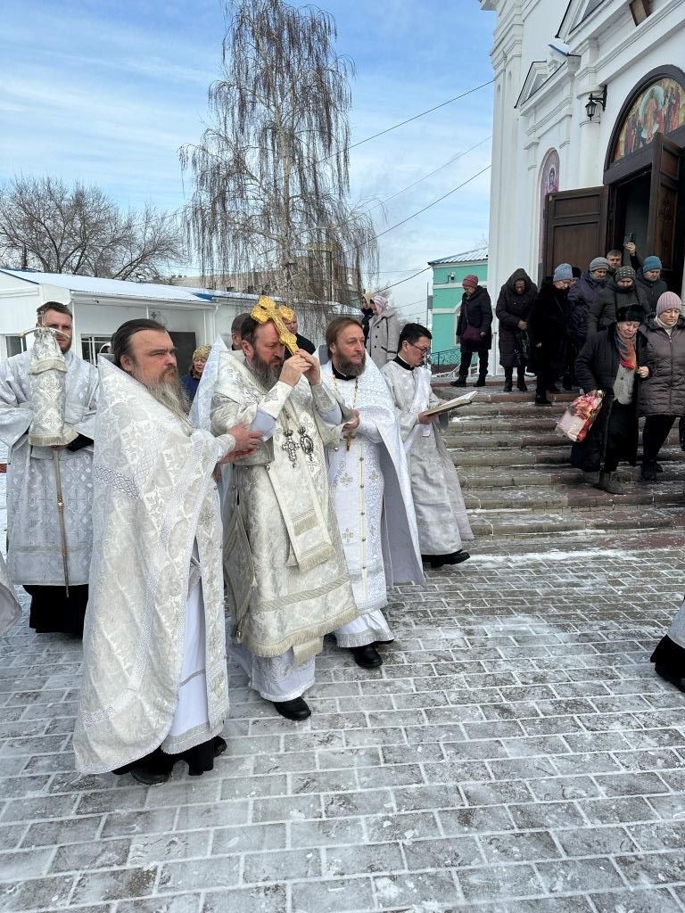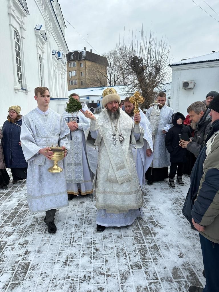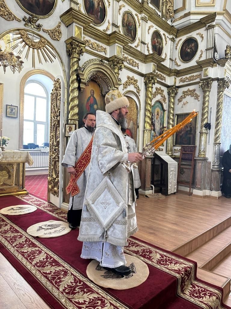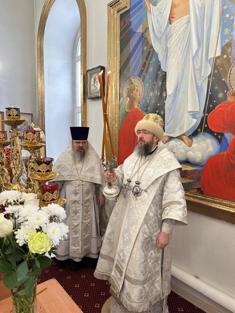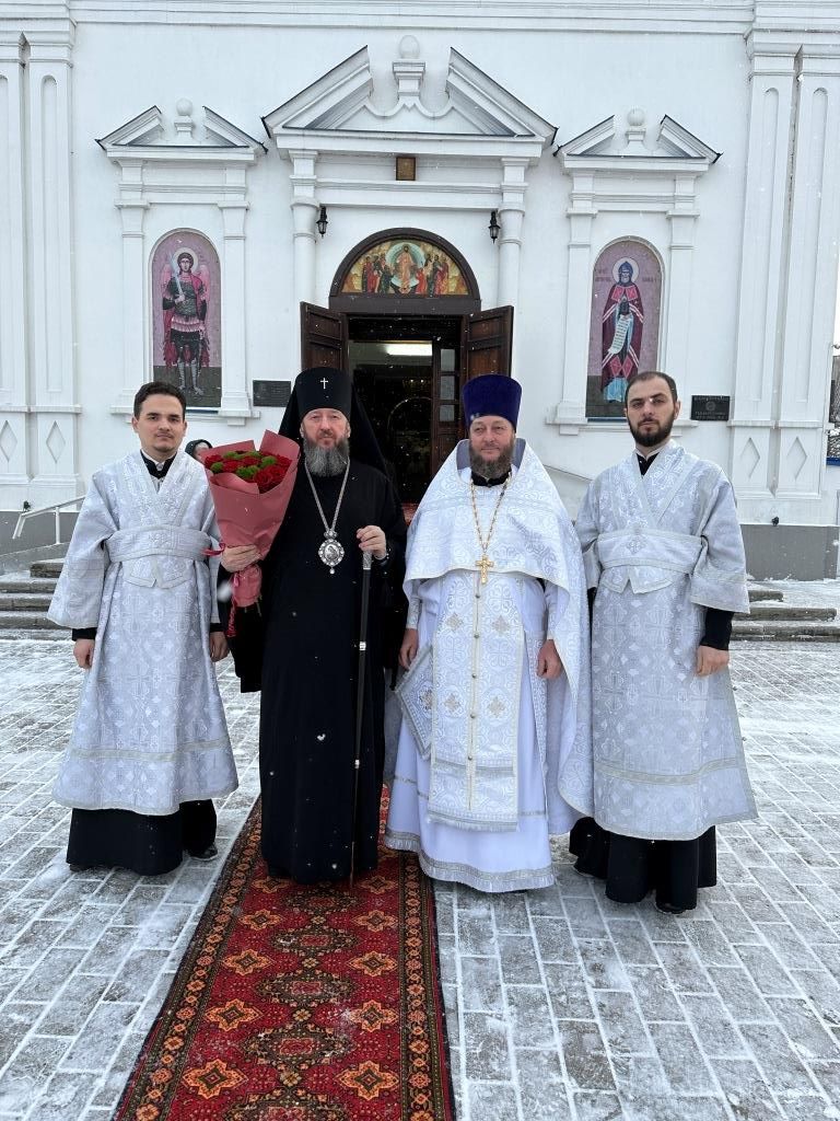 Праздничные песнопения исполнял хор под управлением регента Ю. Хохряковой. Архипастырское богослужение посетили прихожане Воскресенского собора, преподаватели и воспитанники приходской воскресной школы, представители казачьих организаций.