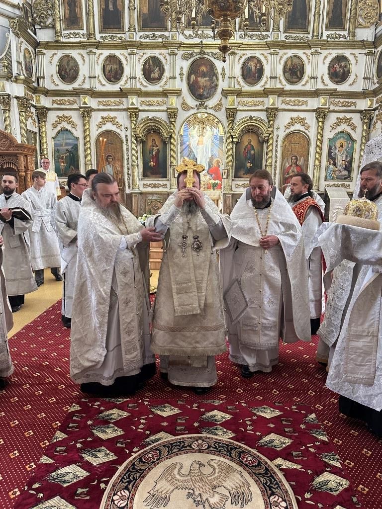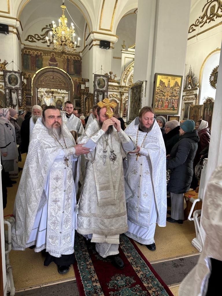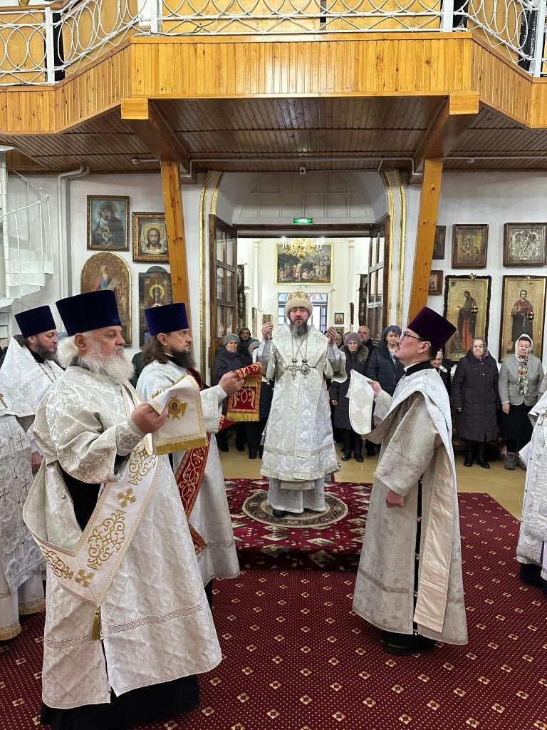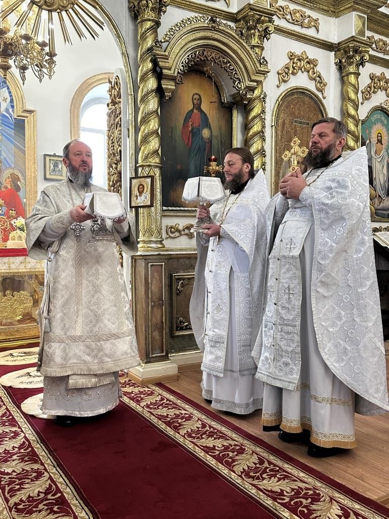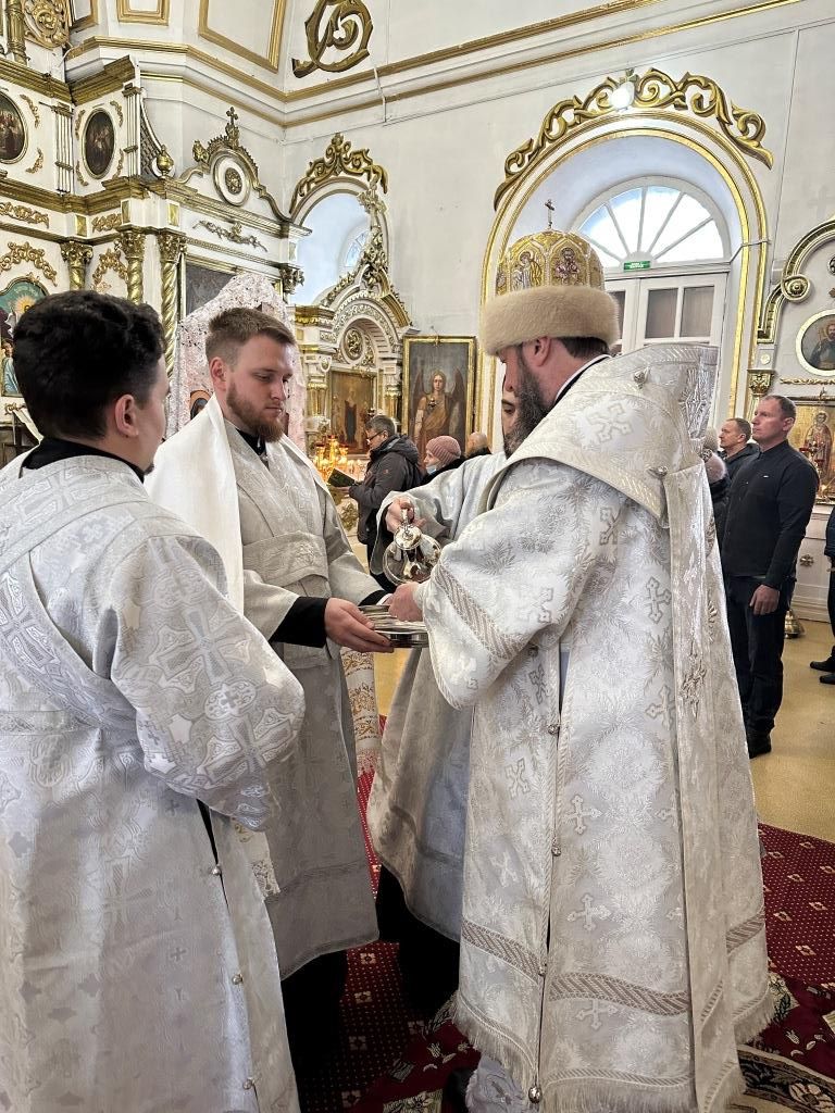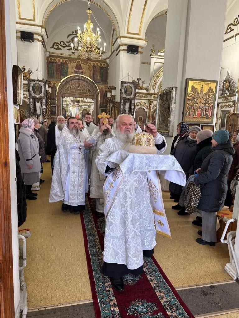 Праздничные песнопения исполнял хор под управлением регента Ю. Хохряковой. Архипастырское богослужение посетили прихожане Воскресенского собора, преподаватели и воспитанники приходской воскресной школы, представители казачьих организаций.