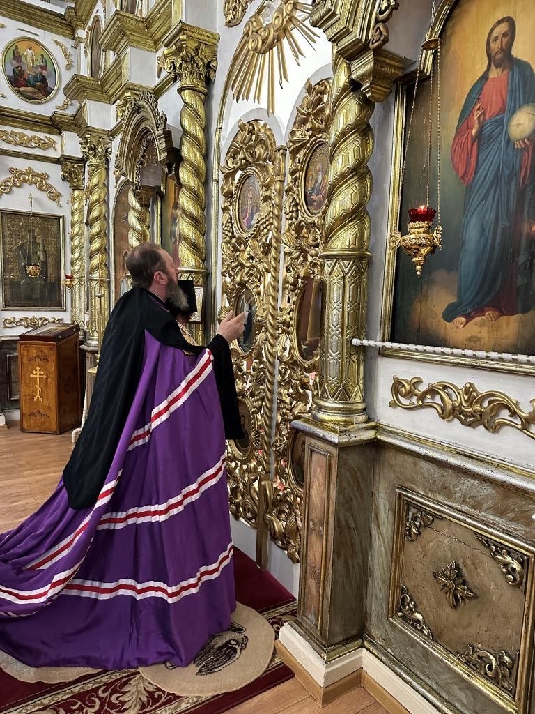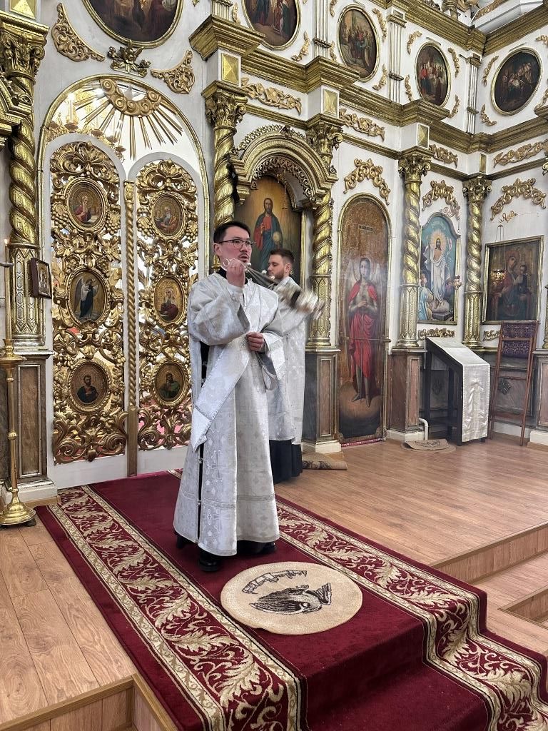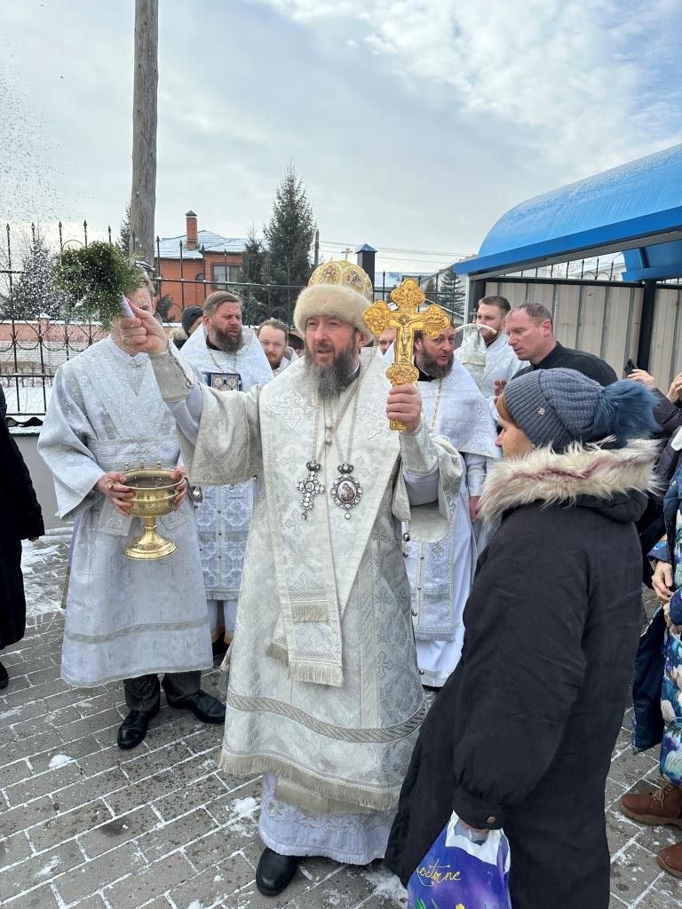 После проповеди Его Высокопреосвященство преподал всем молящимся Божие благословение и окропил прихожан великой агиасмой.