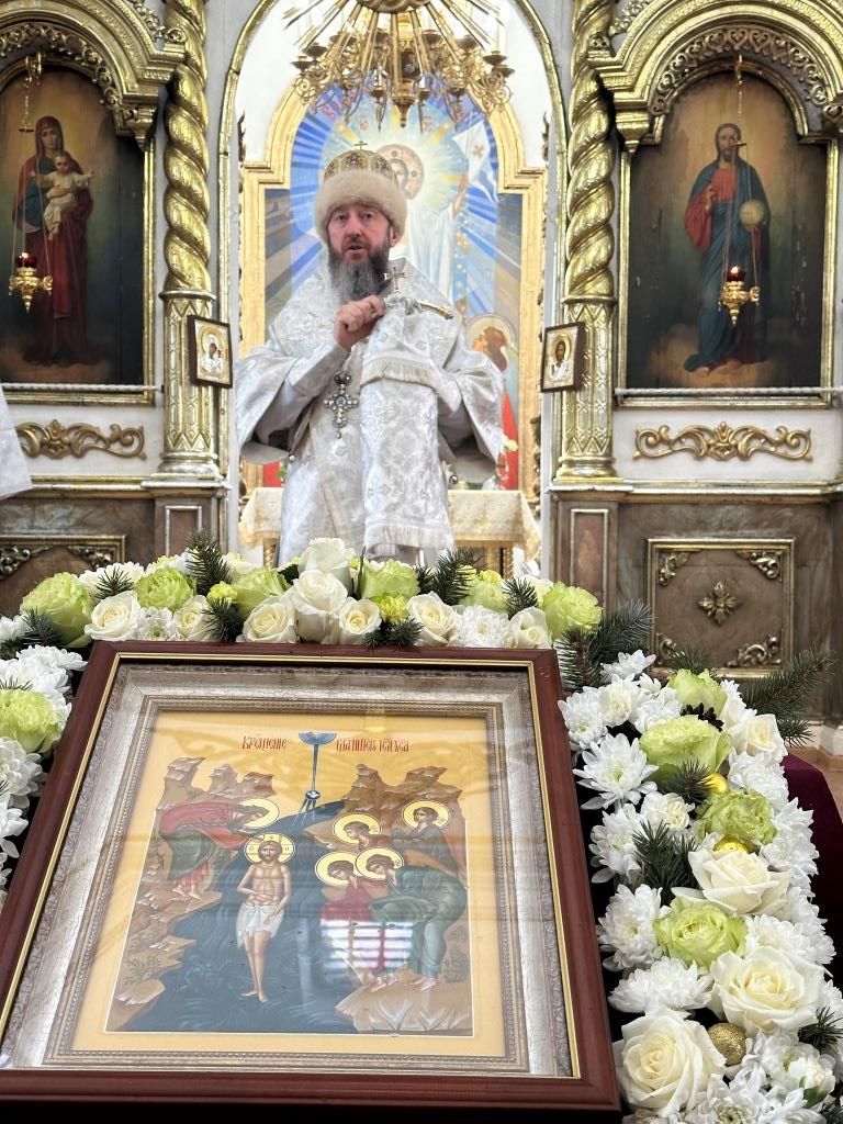 Управляющий Усть-Каменогорской и Семипалатинской епархией Высокопреосвященнейший архиепископ Амфилохий посетил второй кафедральный храм епархии – собор в честь Воскресения Христова города Семипалатинска, где в день Крещенского сочельника возглавил служение уставных праздничных богослужений: Божественной Литургии святителя Иоанна Златоуста, великой вечерни и чина освящения агиасмы.