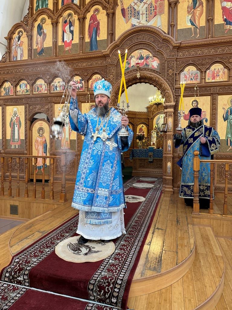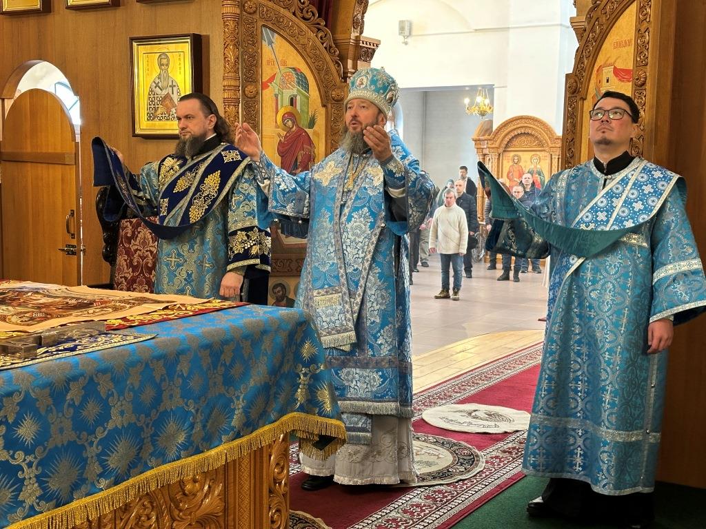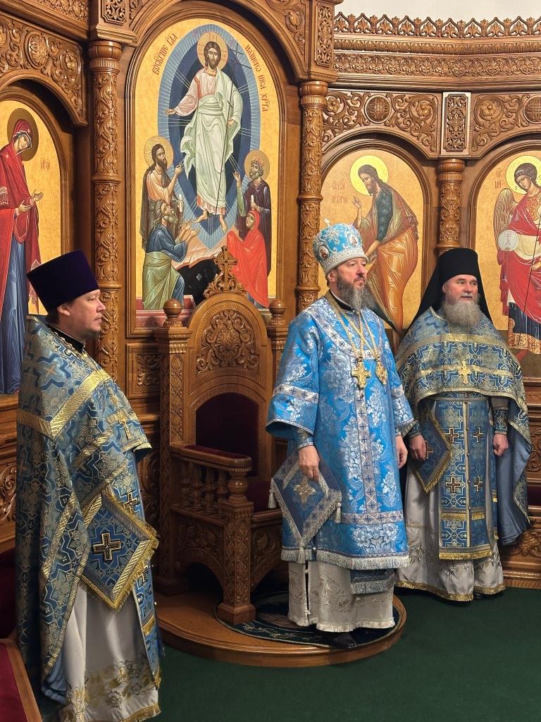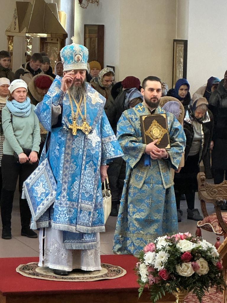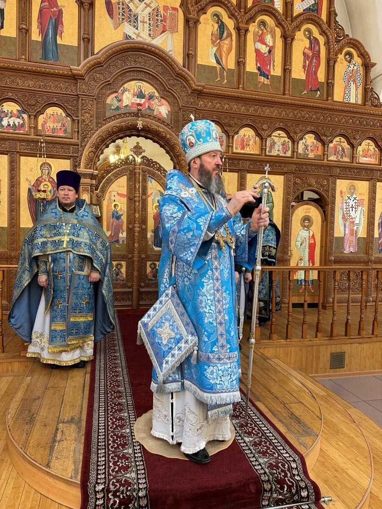 Владыке архиепископу сослужили: ключарь кафедрального собора иеромонах Никодим (Авдеев), клирики собора иерей Роман Подрезов, иерей Константин Дьяков, протодиакон Андрей Дудник, секретарь епархии диакон Илия Кван.