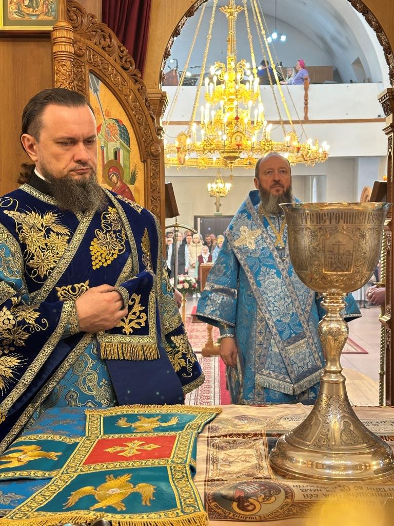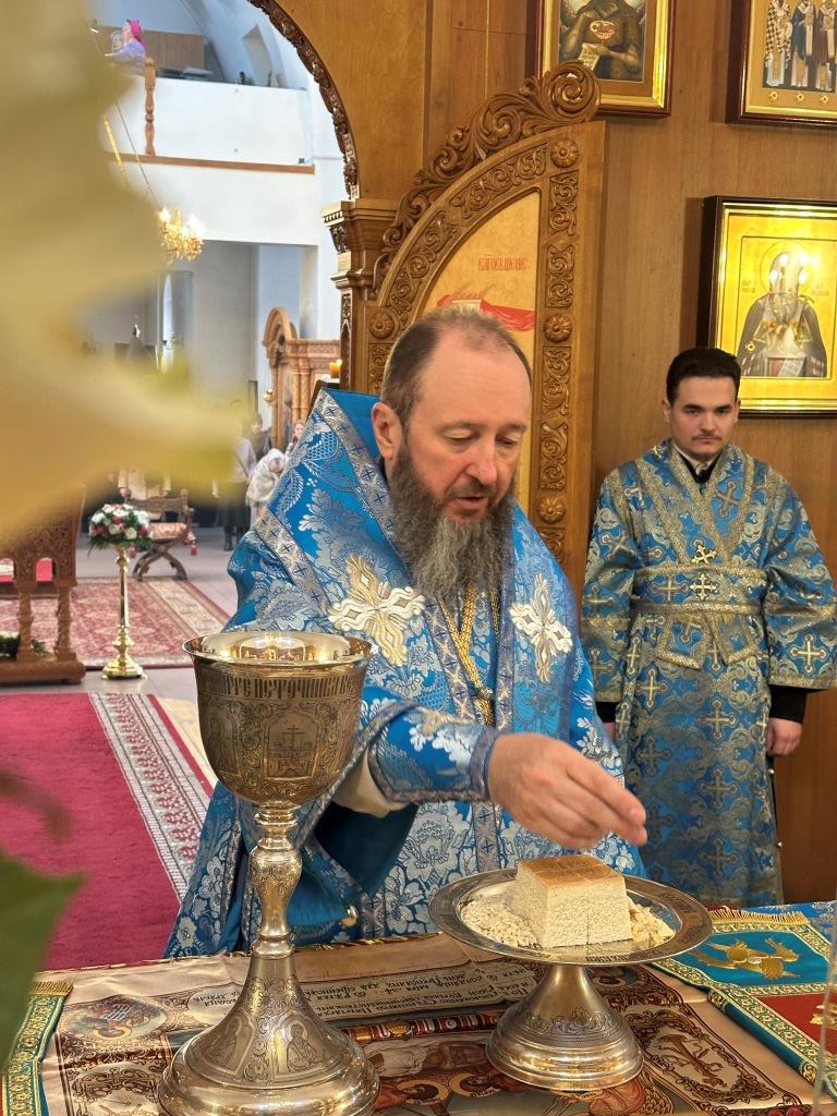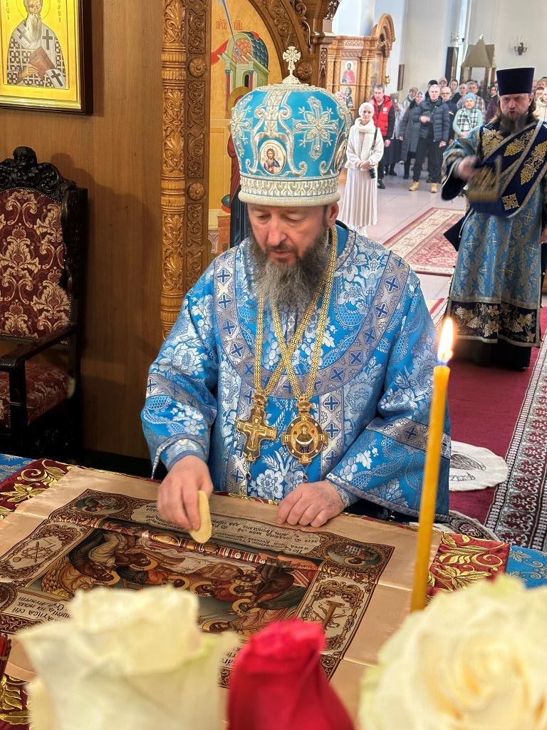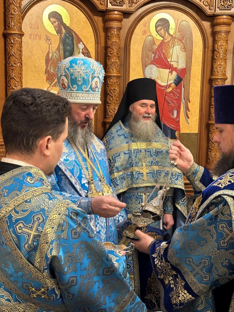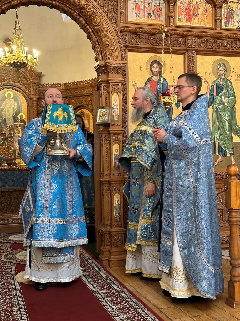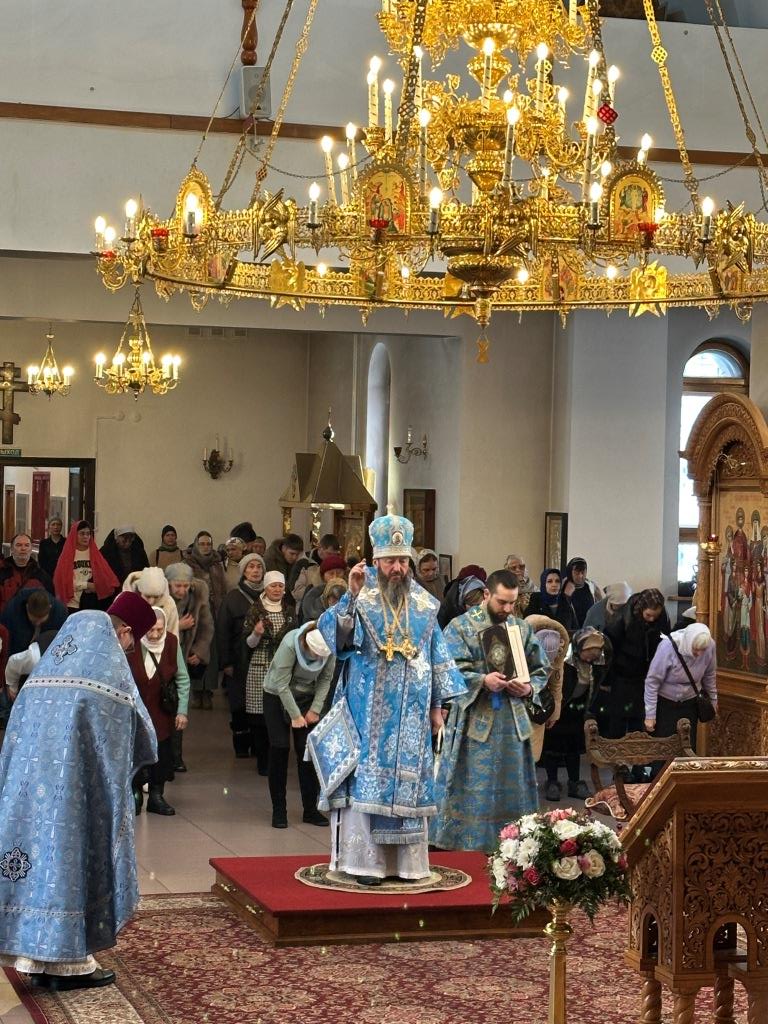 Владыке архиепископу сослужили: ключарь кафедрального собора иеромонах Никодим (Авдеев), клирики собора иерей Роман Подрезов, иерей Константин Дьяков, протодиакон Андрей Дудник, секретарь епархии диакон Илия Кван.