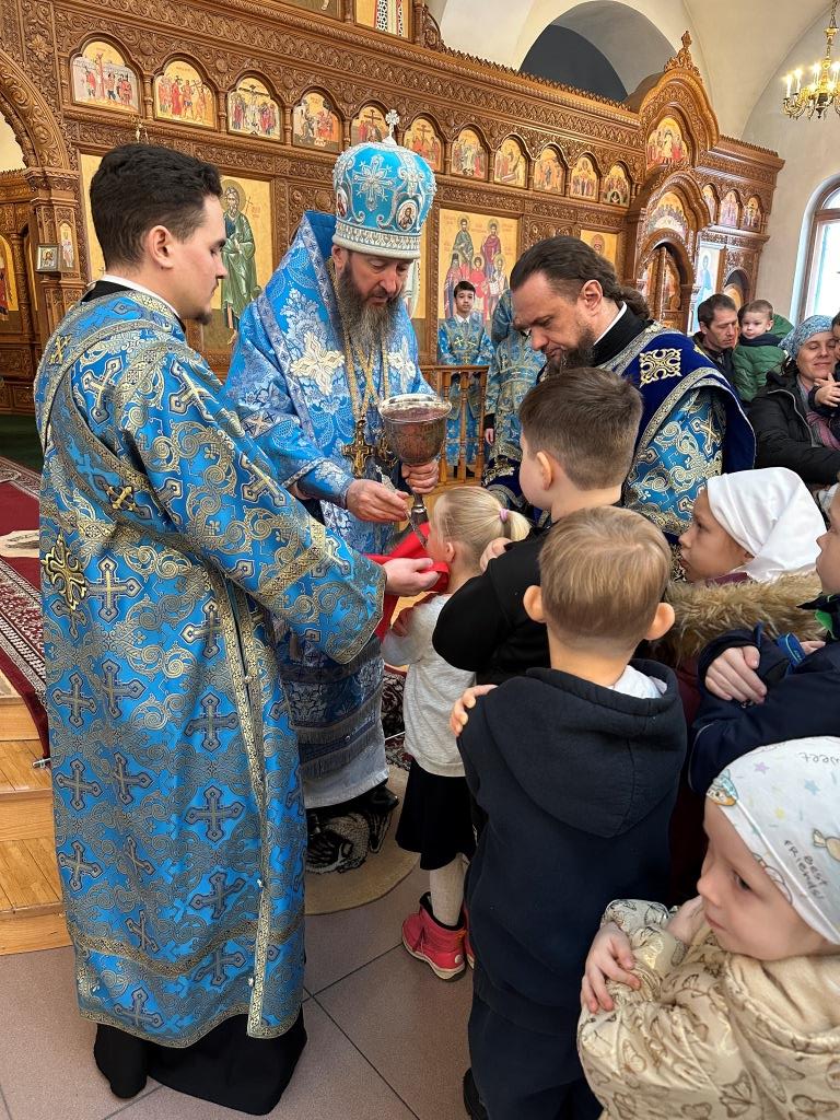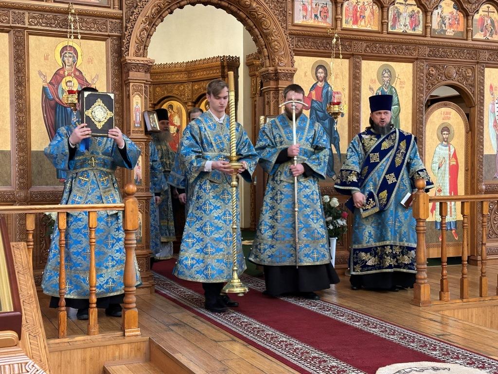 Песнопения Божественной Литургии и Недели о блудном сыне исполнял хор кафедрального собора под управлением регента Н. Романцовой. Проповедь перед причастием мирян произнёс священник Роман Подрезов.