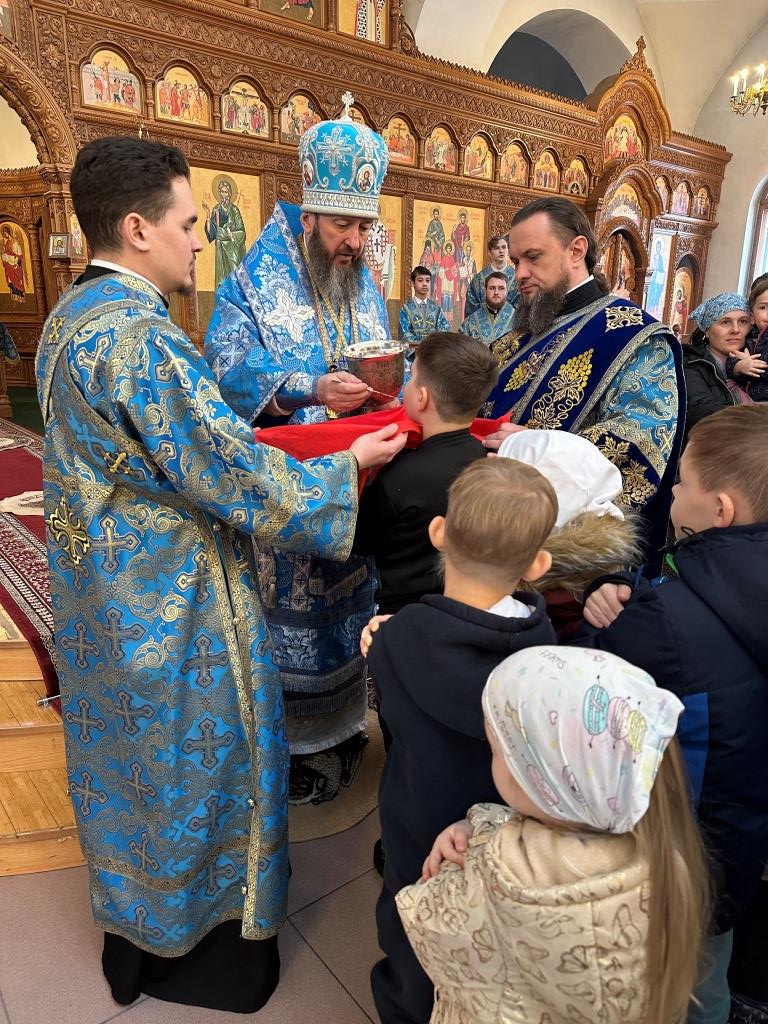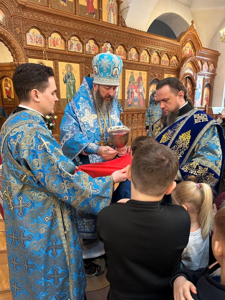 За воскресным богослужением молились и причащались Святых Христовых Таин насельники Свято-Троицкого мужского монастыря города Усть-Каменогорска, сотрудники епархиального управления, прихожане кафедрального собора, преподаватели и воспитанники Центральной воскресной школы.