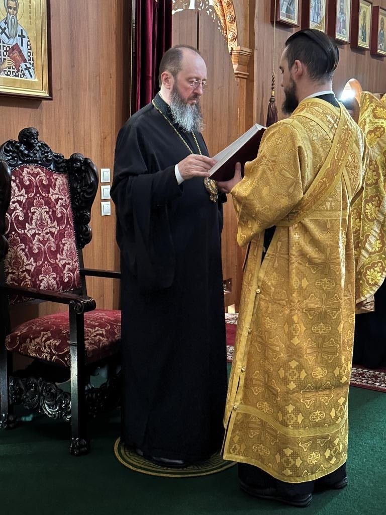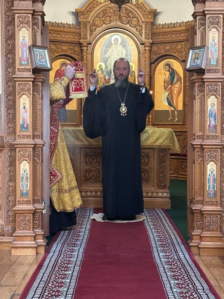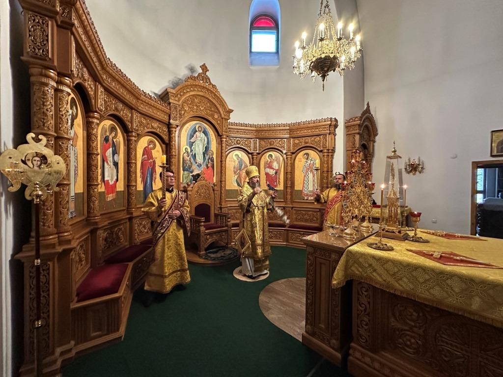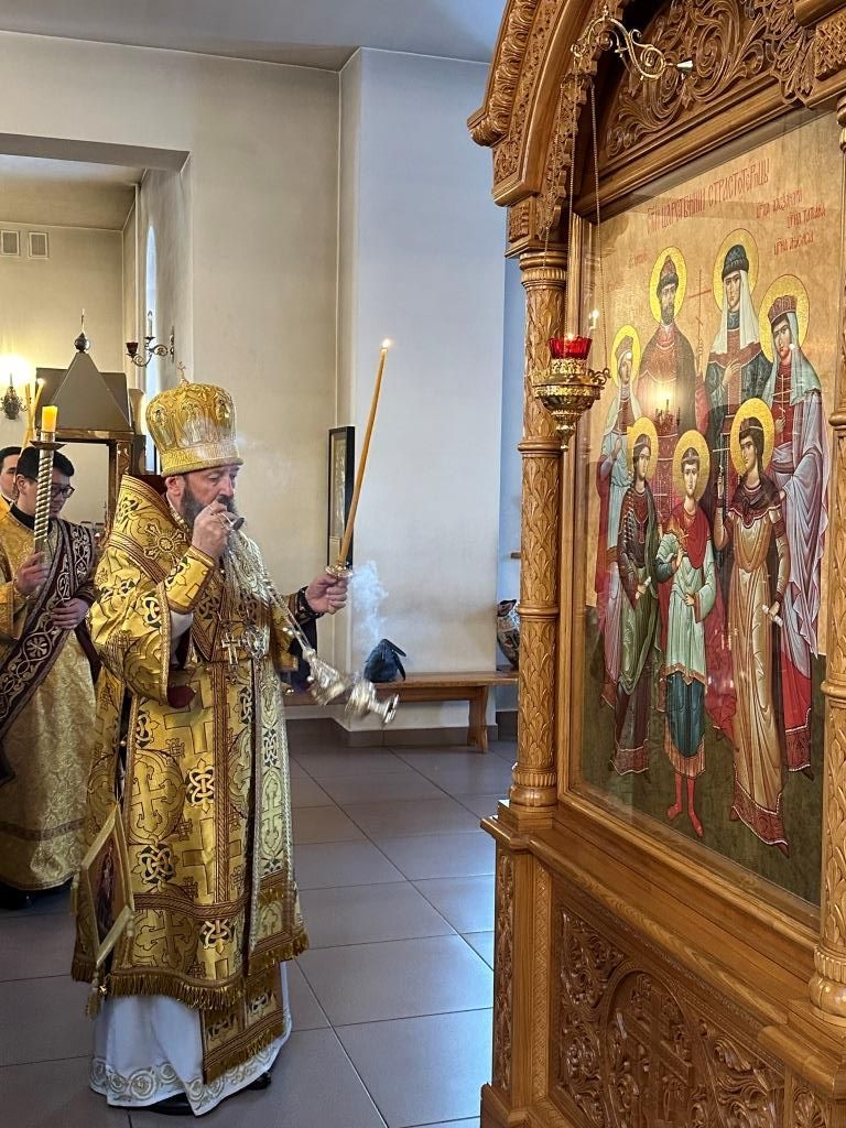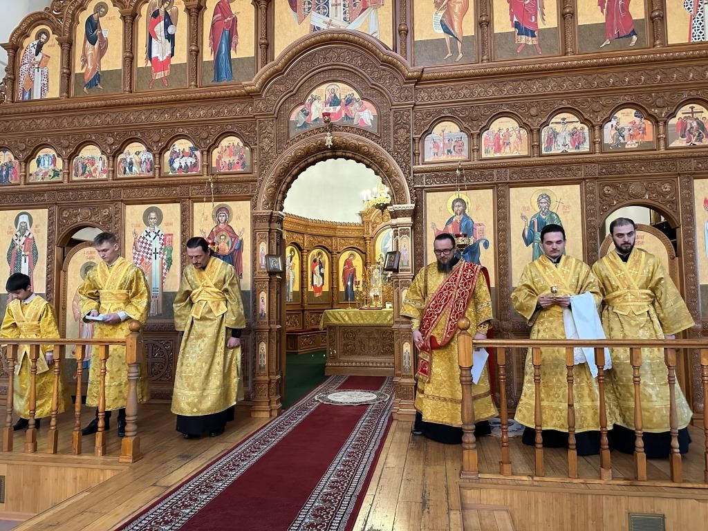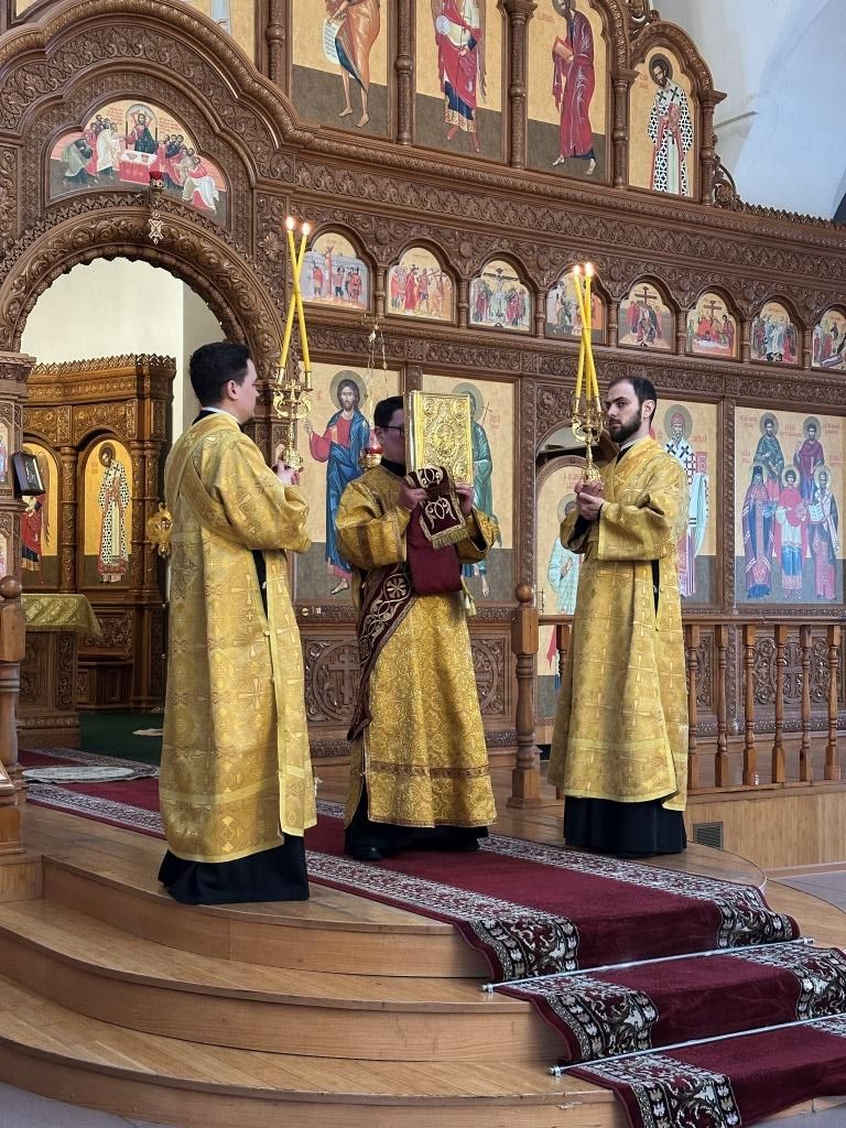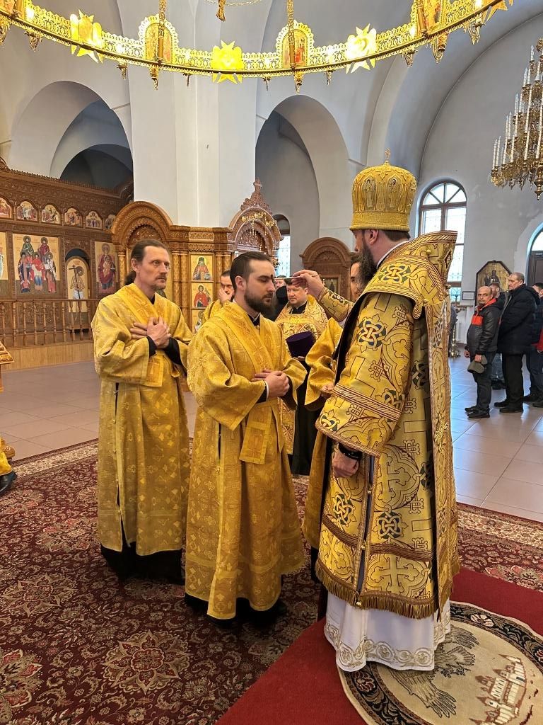 Владыке архиепископу сослужили: ключарь кафедрального собора иеромонах Никодим (Авдеев), клирики собора иерей Виталий Адаменков, иерей Роман Подрезов и иерей Константин Дьяков; протодиакон Андрей Дудник, секретарь епархии диакон Илия Кван.