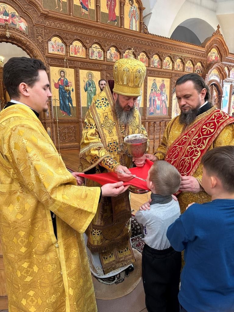 Песнопения Божественной Литургии и Прощеного воскресения исполнял хор кафедрального собора под управлением регента Н. Романцовой. Проповедь перед причастием мирян произнёс священник Виталий Адаменков. За богослужением молились и причащались Святых Христовых Таин насельники Свято-Троицкого мужского монастыря города Усть-Каменогорска, сотрудники епархиального управления, прихожане кафедрального собора, преподаватели и воспитанники Центральной воскресной школы.