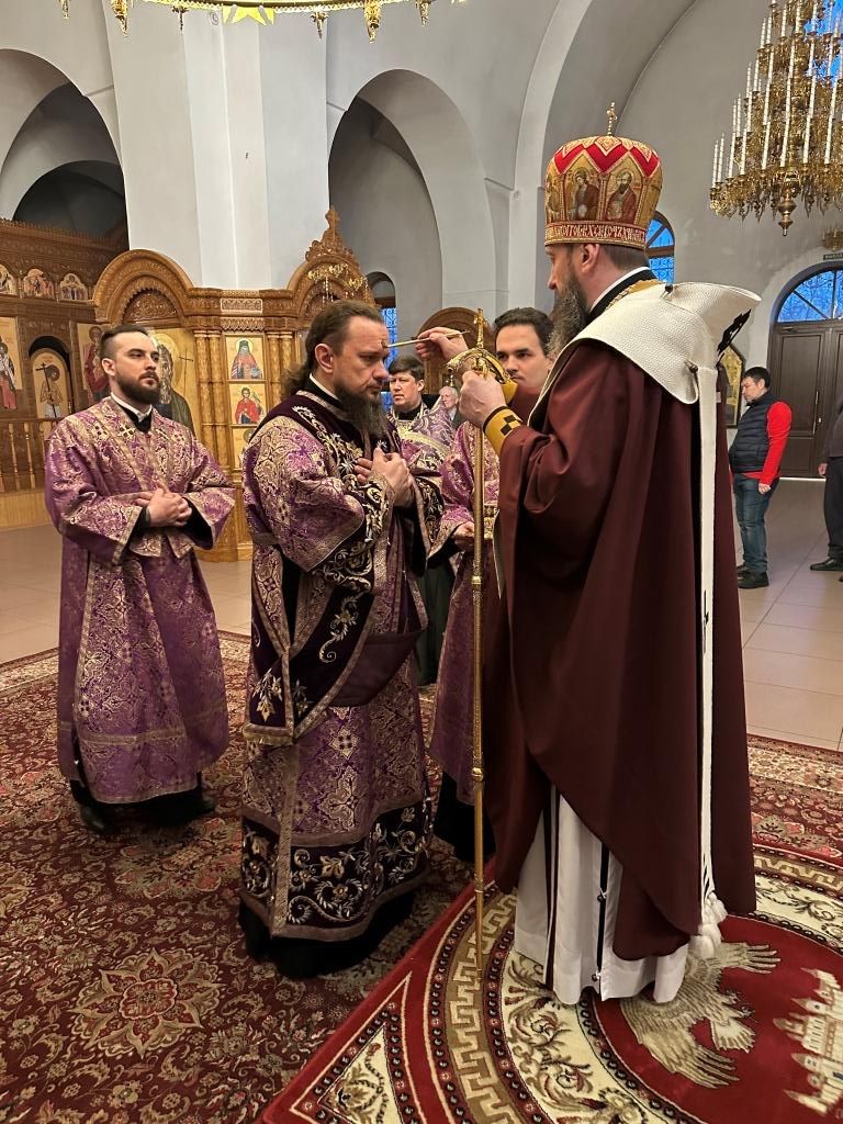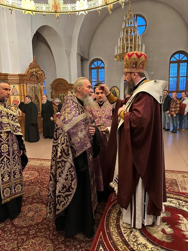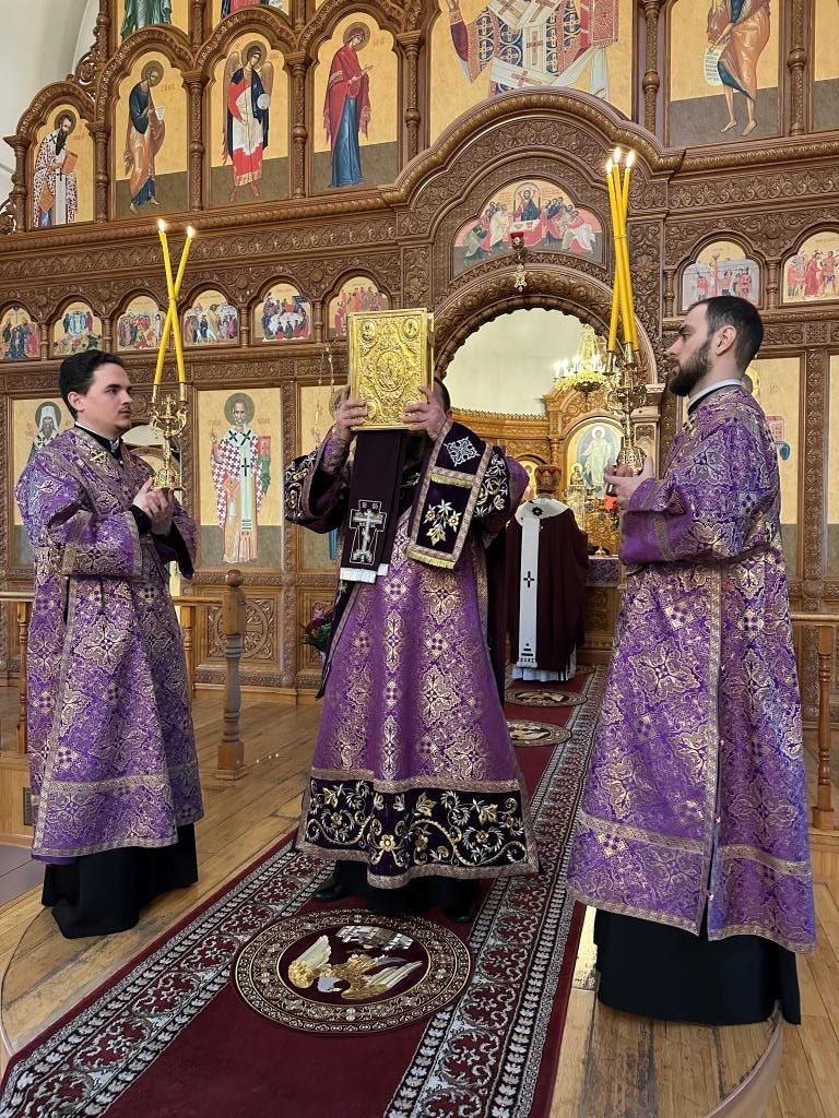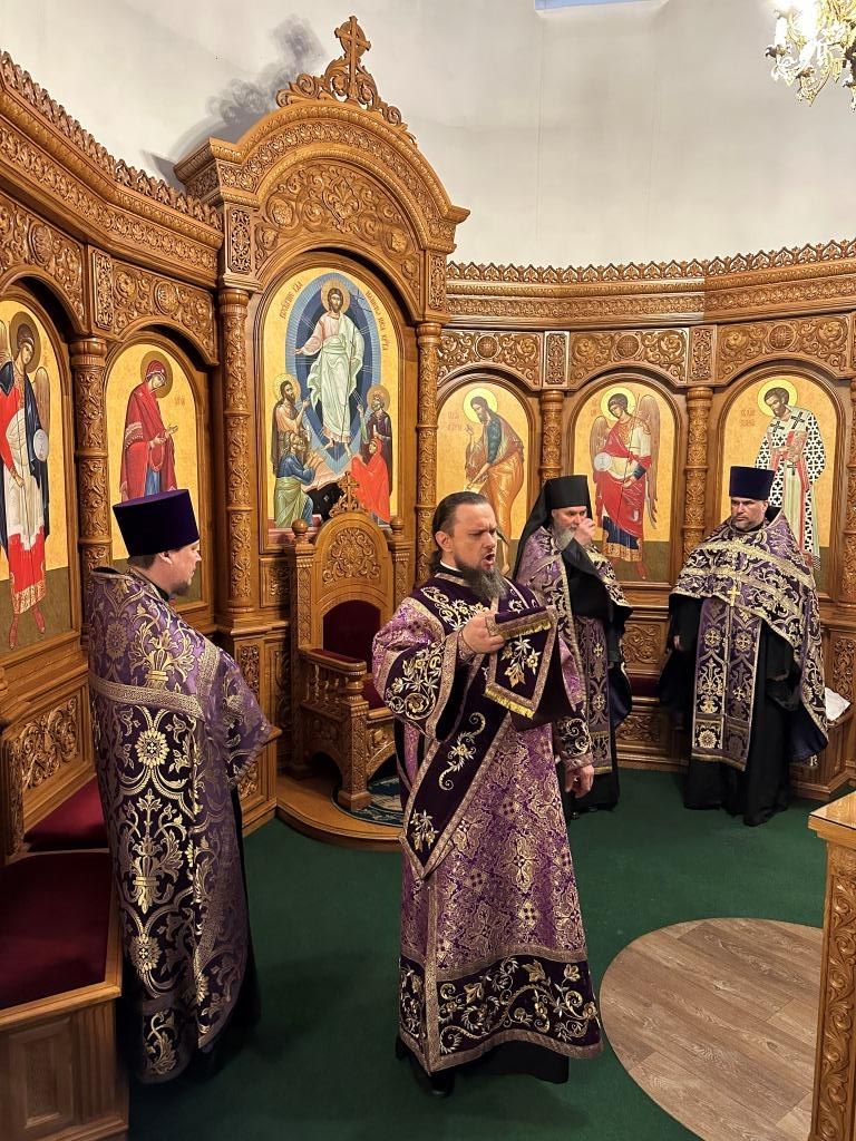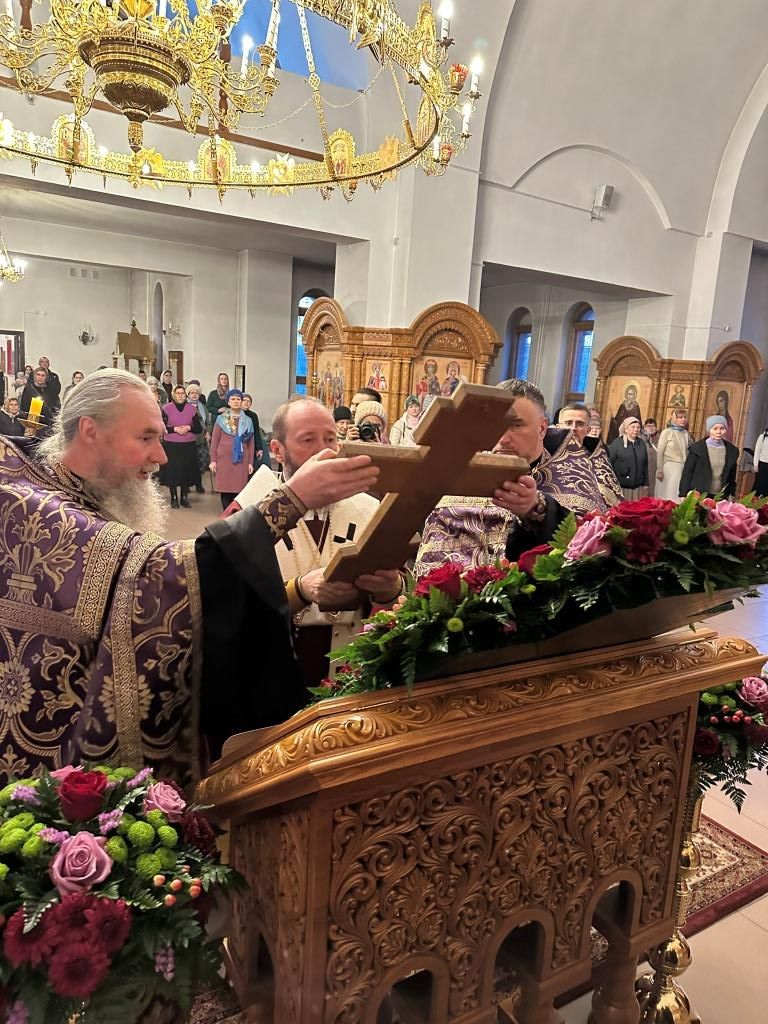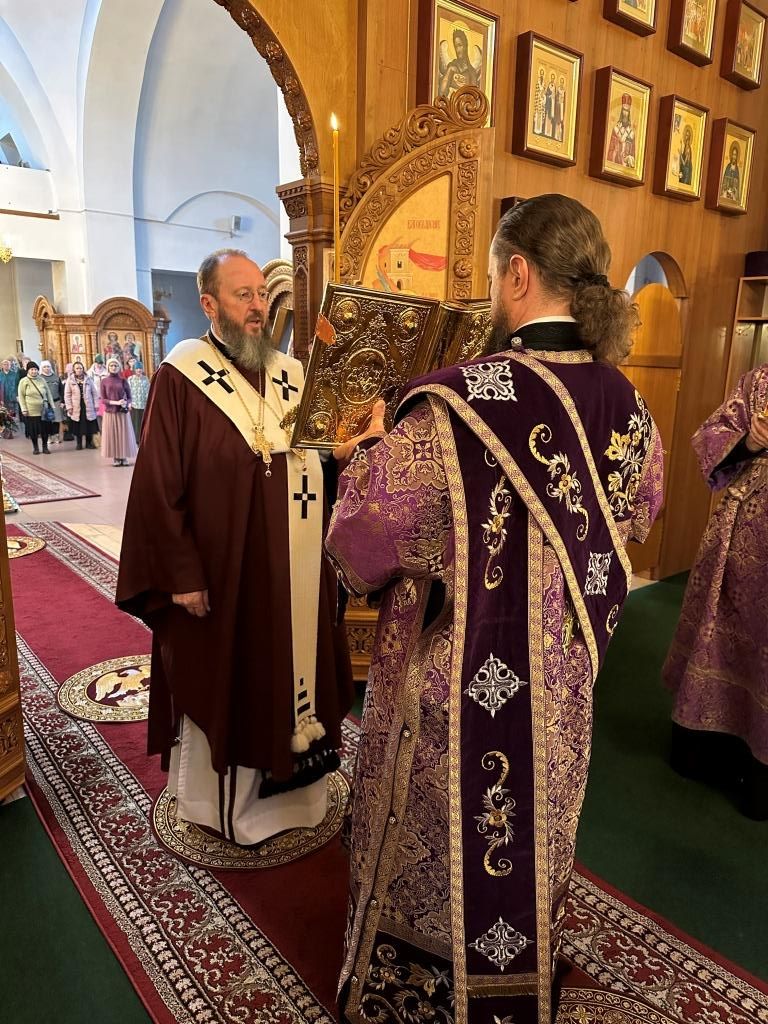 В соответствии с церковной традицией, в канун Крестопоклонного воскресения полиелей на Всенощном бдении совершался в алтаре. Во время пения Великого славословия архиепископ Амфилохий совершил чин выноса Креста Господня; затем, под пение особых стихир, Архипастырь с народом Божиим поклонился Кресту, после чего Владыка Амфилохий помазал сослужащее духовенство и всех молящихся освященным елеем.