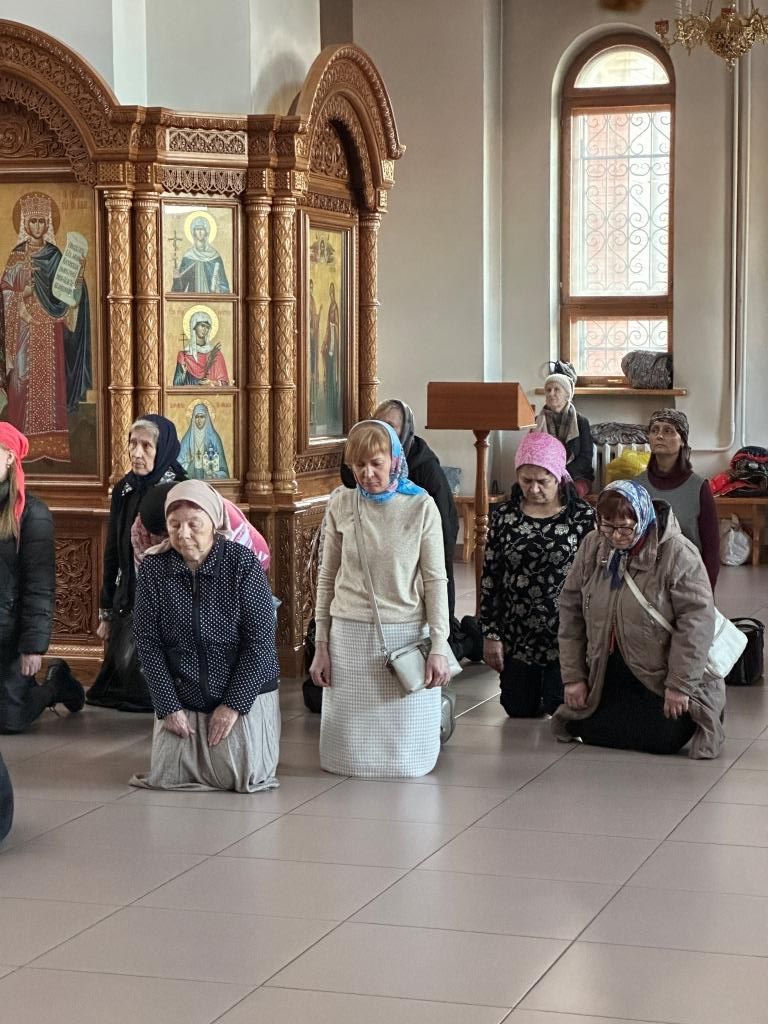 За вечерним богослужением молились сотрудники епархиального управления, насельники Свято-Троицкого мужского монастыря города Усть-Каменогорска и прихожане.