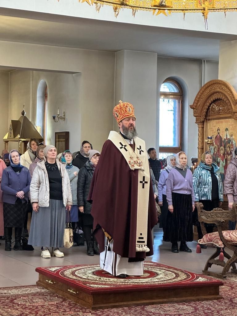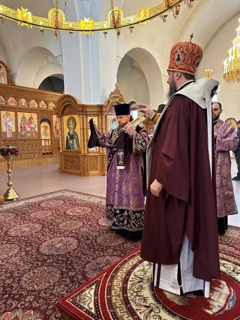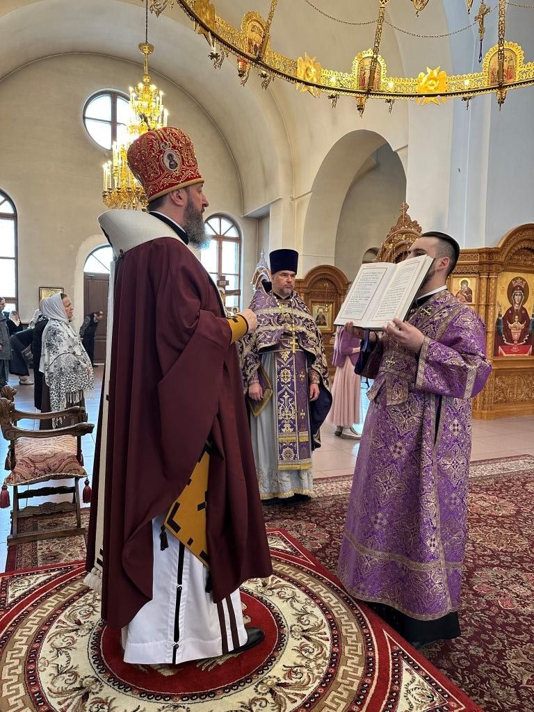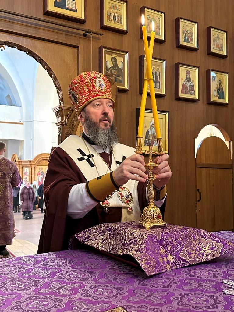 В третье воскресение Святой Четыредесятницы Управляющий Усть-Каменогорской и Семипалатинской епархией Высокопреосвященнейший архиепископ Амфилохий возглавил служение Божественной Литургии святителя Василия Великого в Андреевском кафедральном соборе города Усть-Каменогорска.