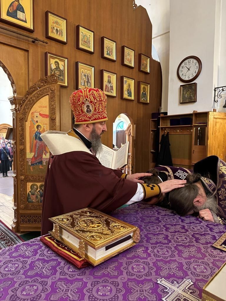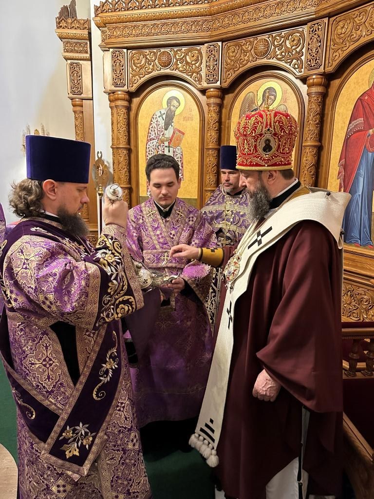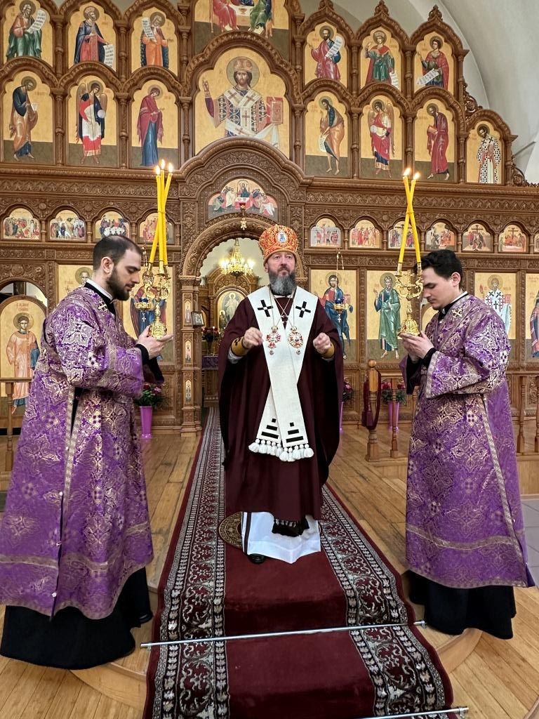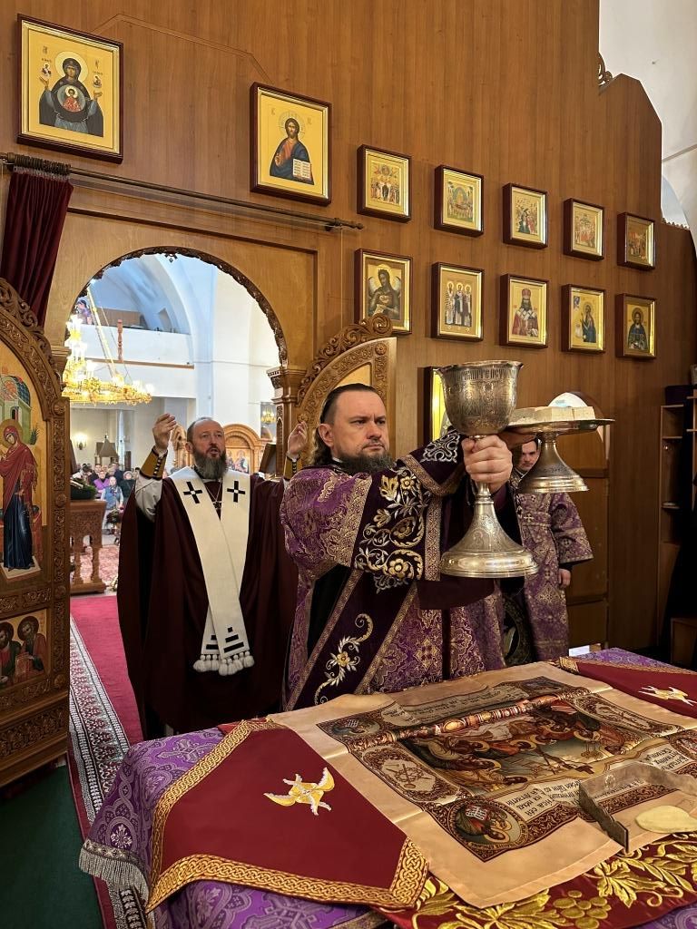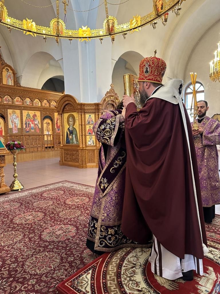В третье воскресение Святой Четыредесятницы Управляющий Усть-Каменогорской и Семипалатинской епархией Высокопреосвященнейший архиепископ Амфилохий возглавил служение Божественной Литургии святителя Василия Великого в Андреевском кафедральном соборе города Усть-Каменогорска.