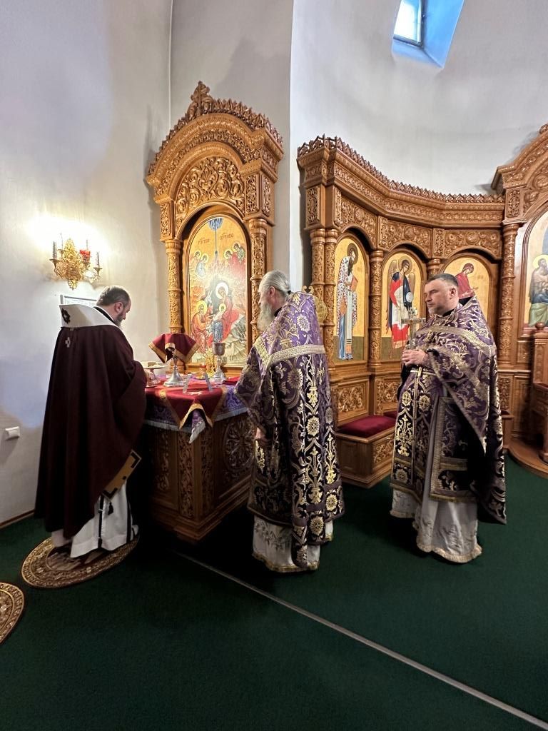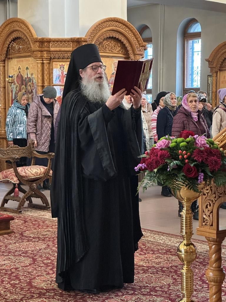 Его Высокопреосвященству сослужили: ключарь кафедрального собора иеромонах Никодим (Авдеев), клирик собора иерей Виталий Адаменков, протодиакон Андрей Дудник. Литургические песнопения исполнял хор под управлением регента Н. Романцовой.