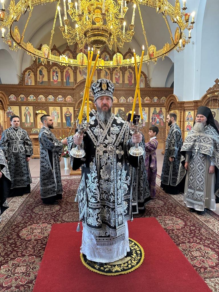 Высокопреосвященнейший архиепископ Амфилохий совершил Вечерню в соединении с Божественной Литургией святителя Василия Великого в Свято-Андреевском кафедральном соборе города Усть-Каменогорска. Архипастырю сослужили: ключарь кафедрального собора иеромонах Никодим (Авдеев), клирик собора иерей Роман Подрезов, протодиакон Андрей Дудник, секретарь епархии диакон Илия Кван.