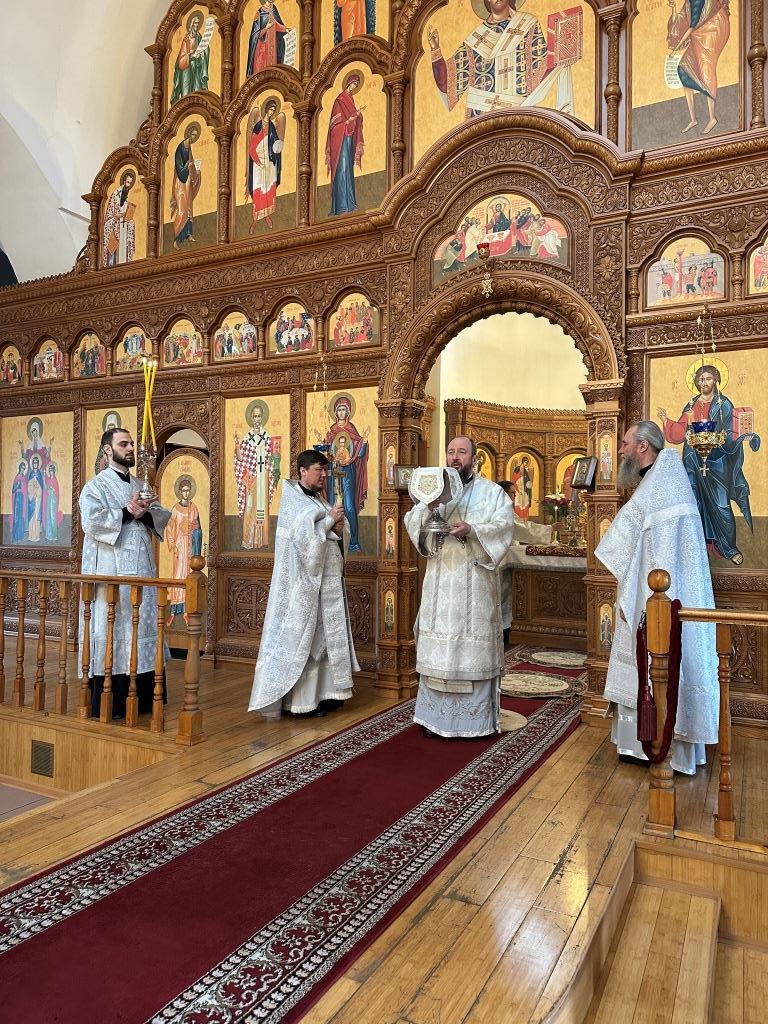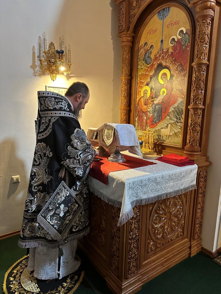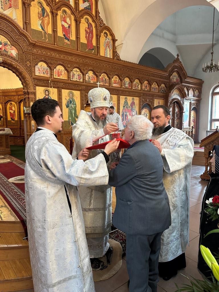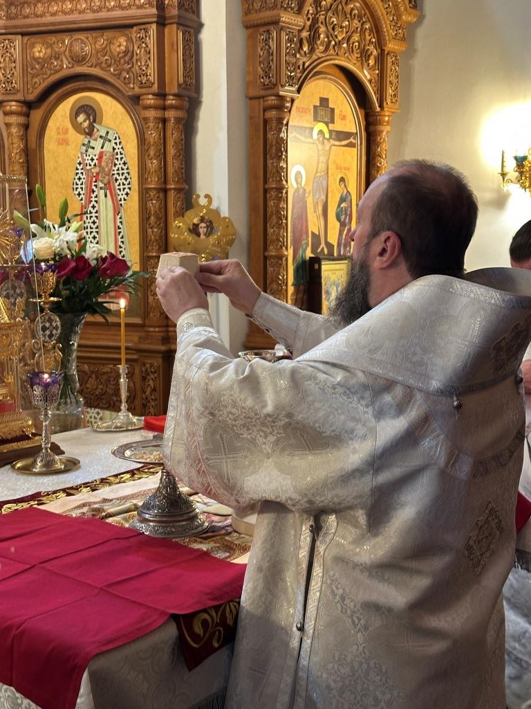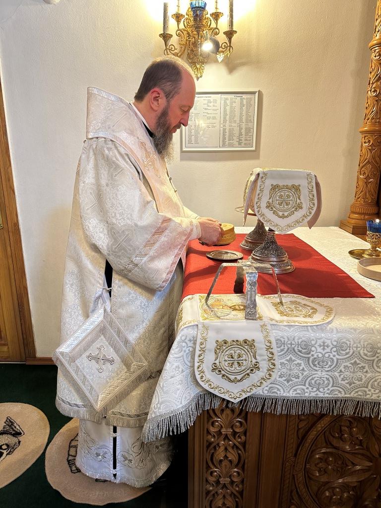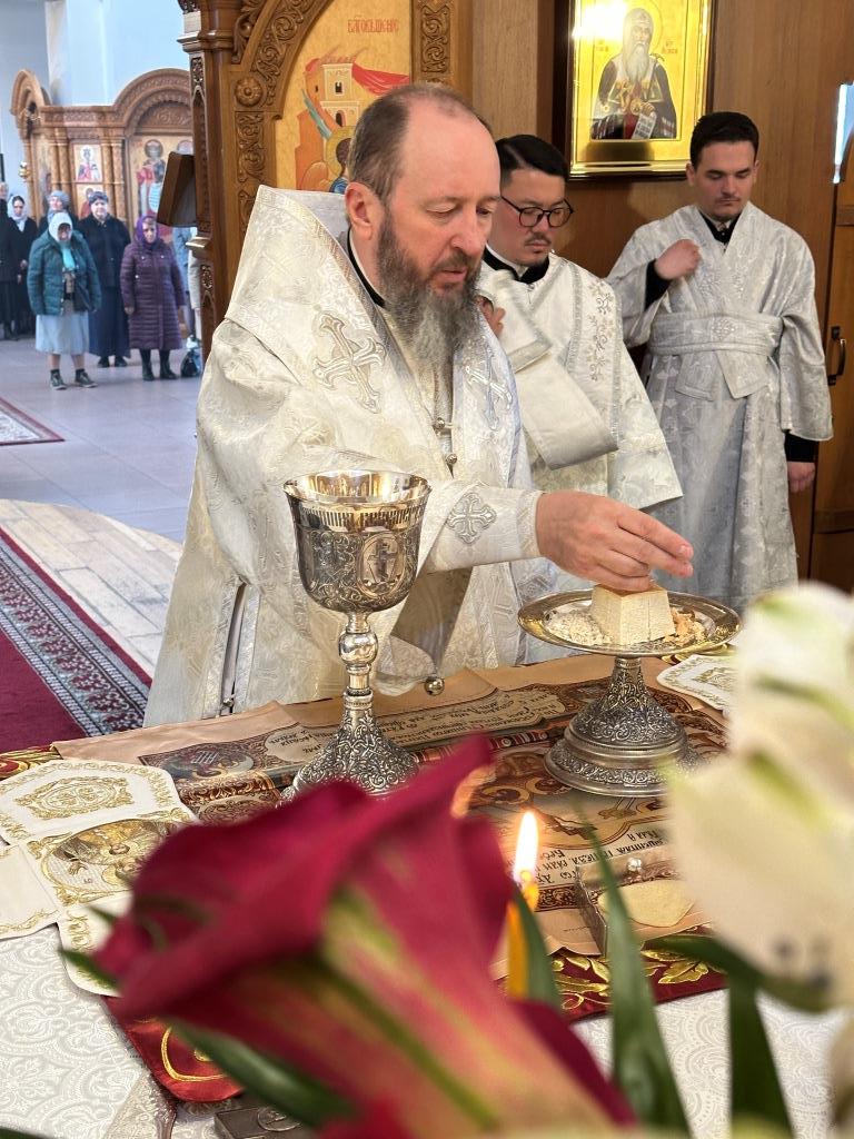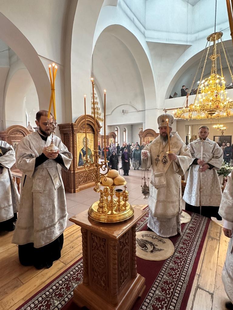 После Божественной Литургии была совершена лития с освящением хлеба и вина в память о том, как древние христиане, оставаясь в храме после Литургии до Пасхальной утрени, вкушением освященных хлеба и вина подкрепляли себя на подвиг бдения в грядущую пасхальную ночь.