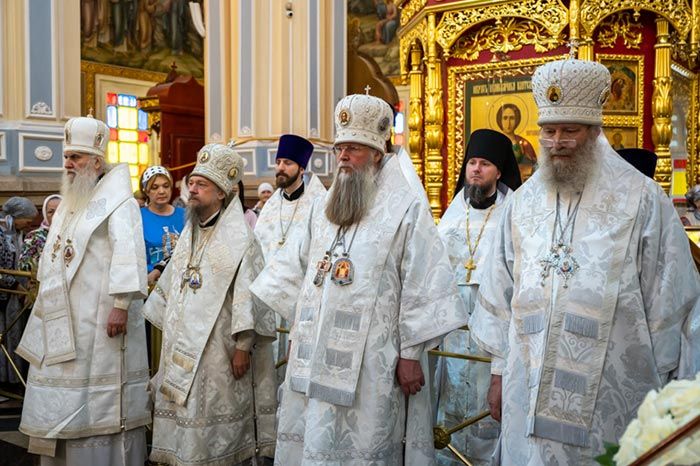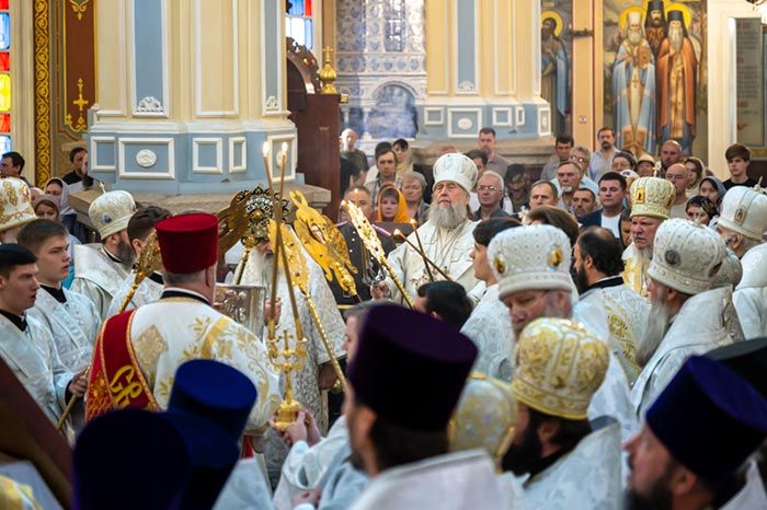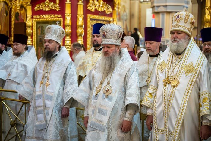 Главе Православной Церкви Казахстана сослужили: архиепископ Павлодарский и Экибастузский Варнава, архиепископ Карагандинский и Шахтинский Севастиан, архиепископ Усть-Каменогорский и Семипалатинский Амфилохий, архиепископ Кокшетауский и Акмолинский Варсонофий, архиепископ Петропавловский и Булаевский Владимир, управляющий делами Православной Церкви Казахстана епископ Каскеленский Геннадий, епископ Актюбинский и Кызылординский Игнатий, викарий Астанайской епархии епископ Талдыкорганский Клавдиан, епископ Чимкентский и Туркестанский Хрисанф, викарий Астанайской епархии епископ Талгарский Вениамин, епископ Уральский и Атырауский Вианор; благочинный храмов Алма-Аты, настоятель Никольского собора протоиерей Валерий Захаров, благочинный Астанайского церковного округа архимандрит Сергий (Карамышев), настоятель храма в честь иконы Божией Матери «Всех скорбящих Радость» протоиерей Евгений Воробьев, духовник Алма-Атинской епархии архимандрит Иоанн (Сазонов), ключарь Вознесенского кафедрального собора, руководитель отдела по связям с общественностью Митрополичьего округа протоиерей Александр Суворов, ректор Алма-Атинской православной духовной семинарии, руководитель информационного отдела Митрополичьего округа протоиерей Евгений Иванов; руководители отделов и комиссий Митрополичьего округа в священном сане; настоятели и духовенство алма-атинских храмов; клирики, прибывшие с архипастырями; диаконский чин возглавили протодиакон Николай Гринкевич и протодиакон Роман Головин, руководитель службы протокола Главы Митрополичьего округа.