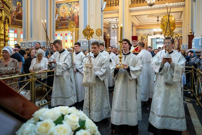 За Литургией молились сотрудники Алма-Атинского епархиального управления, студенты Алма-Атинской духовной семинарии, казачество и прихожане главного храма Южной столицы.
