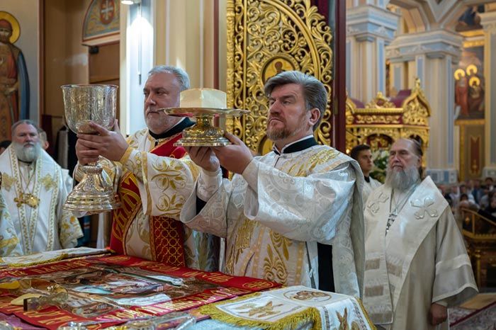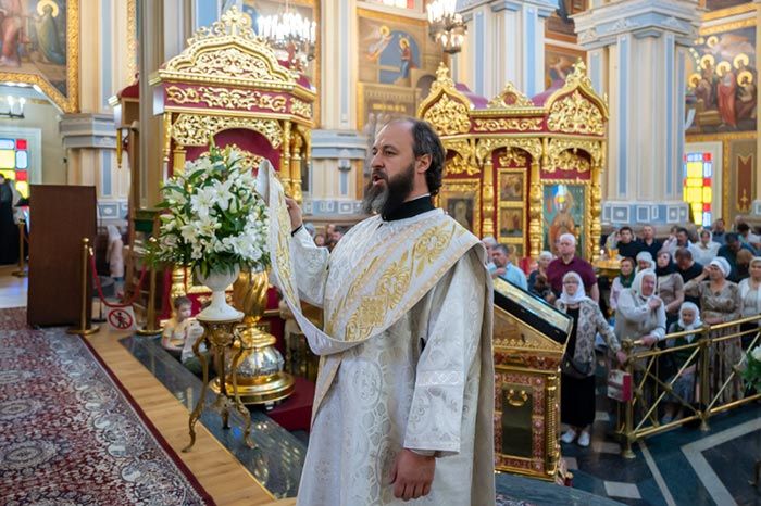 По запричастном стихе протоиерей Александр Суворов огласил послание Святейшего Патриарха Московского и всея Руси Кирилла в связи с празднованием 1700-летия I Вселенского собора.