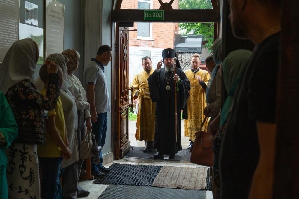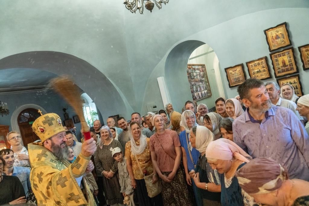 После проповеди Высокопреосвященнейший Владыка преподал всем собравшимся Божие благословение и окропил святой водой.
