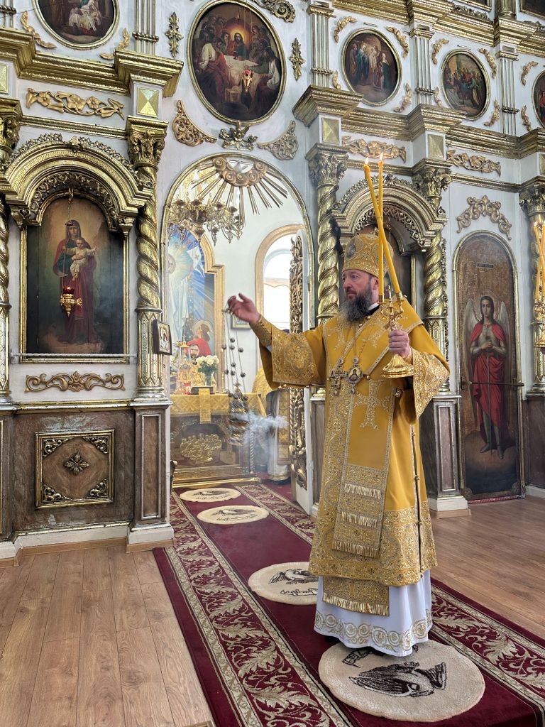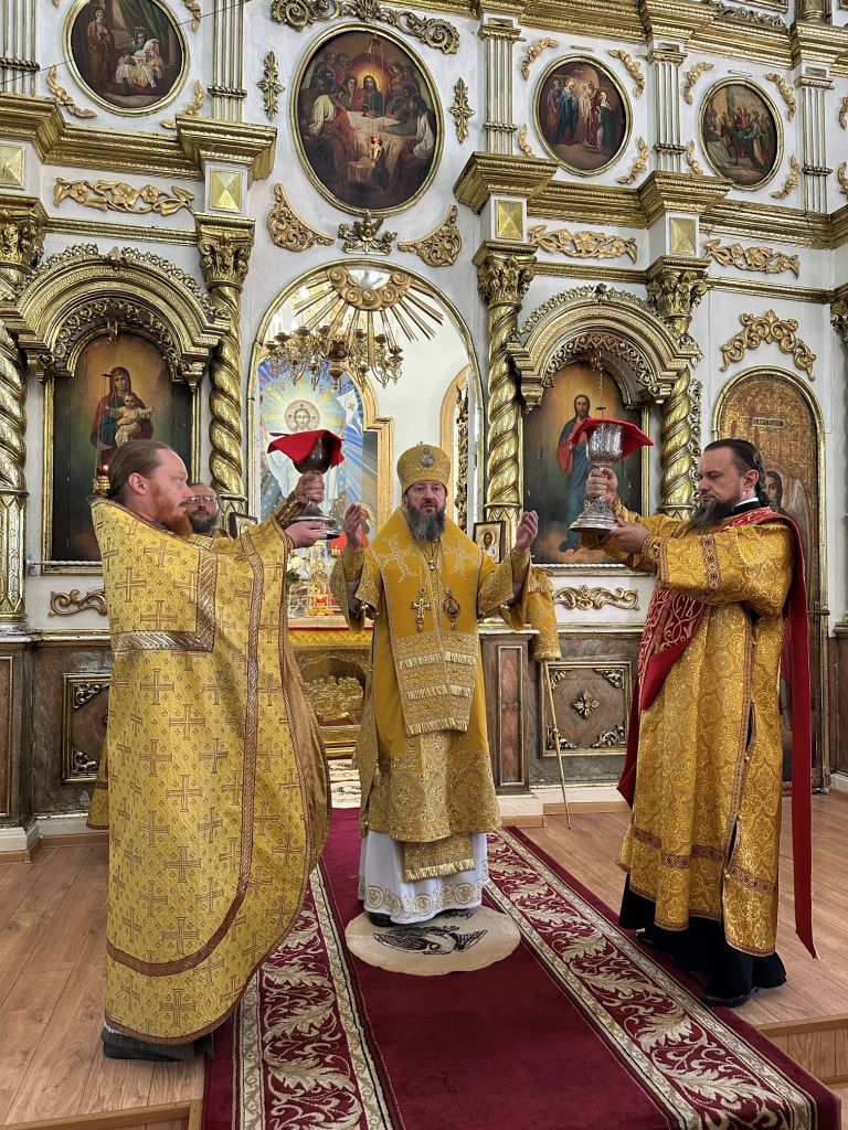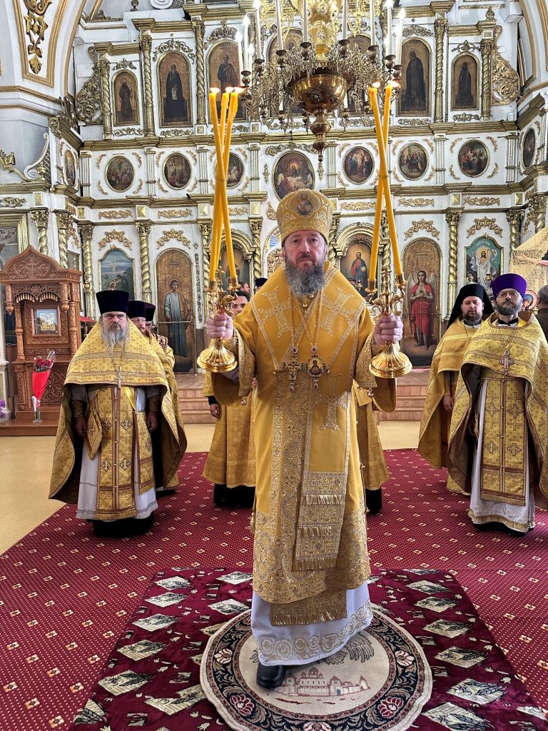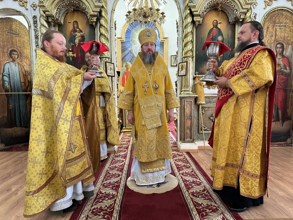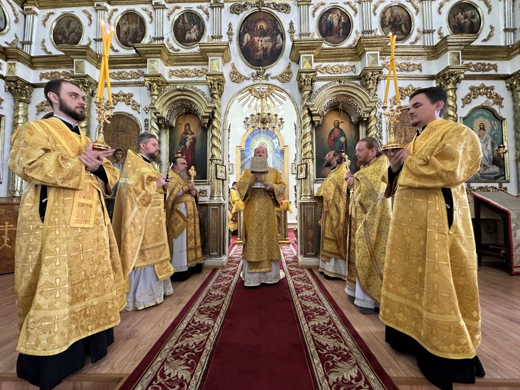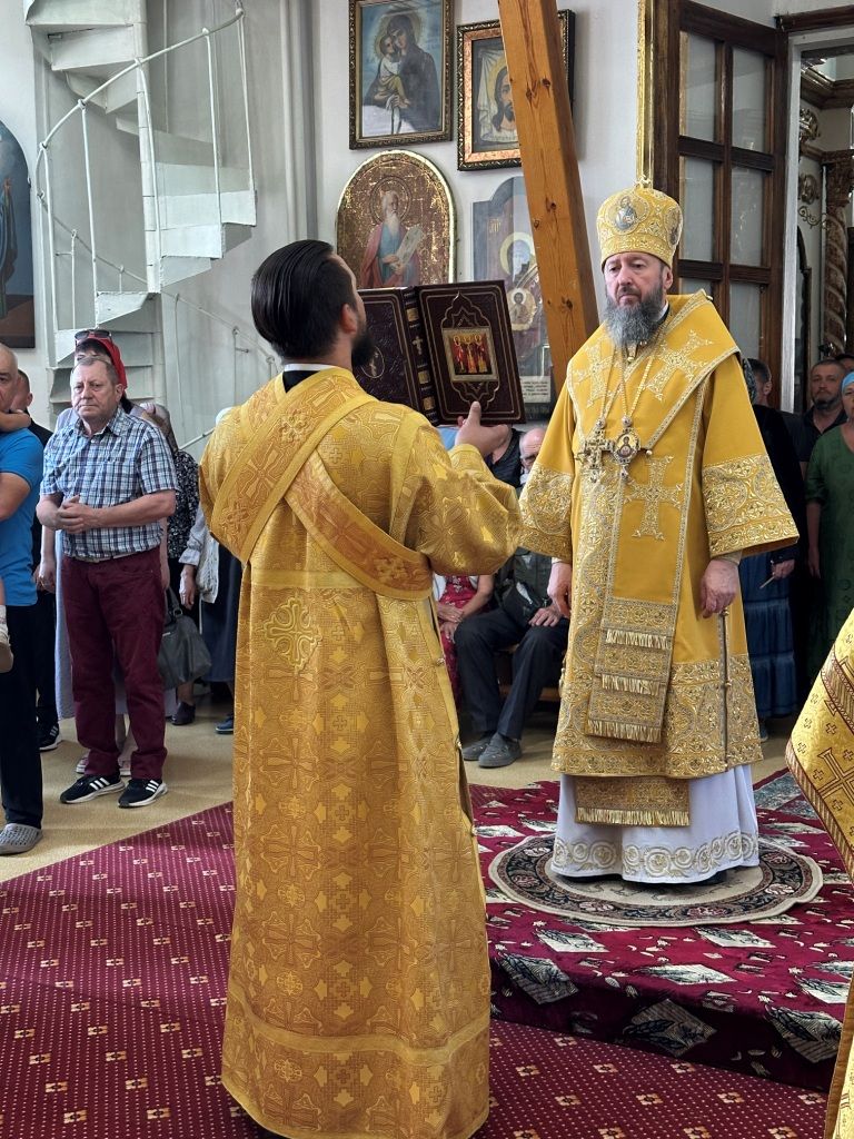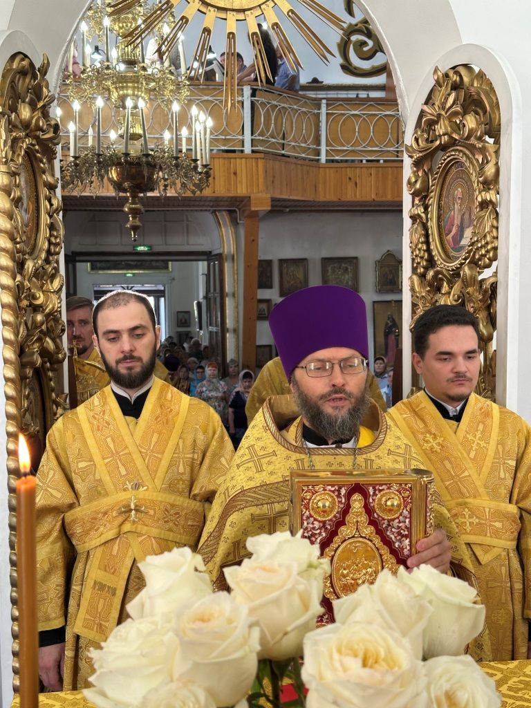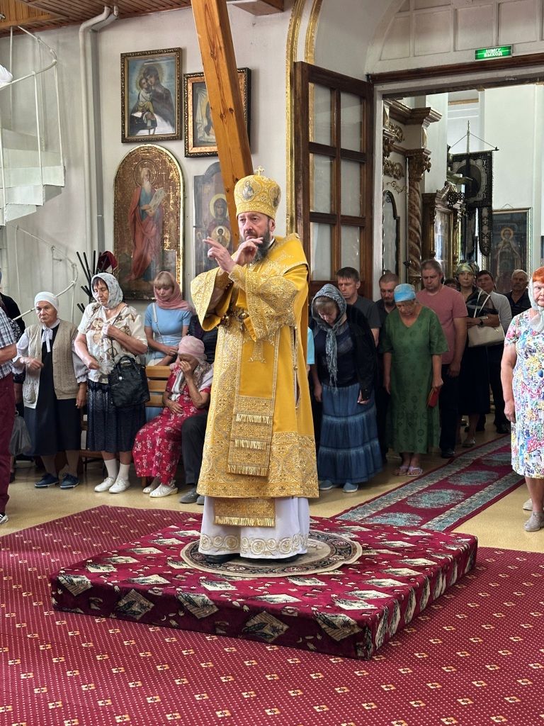 За богослужением молились прихожане Воскресенского собора и паломники. Песнопения Божественной Литургии исполнял хор Воскресенского храма, регент Ю. Хохрякова. После окончания Божественной Литургии архиепископ Амфилохий обратился к собравшимся со словами проповеди: