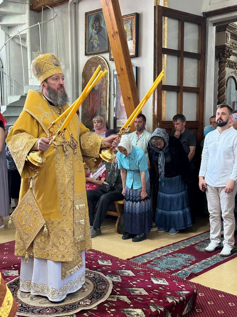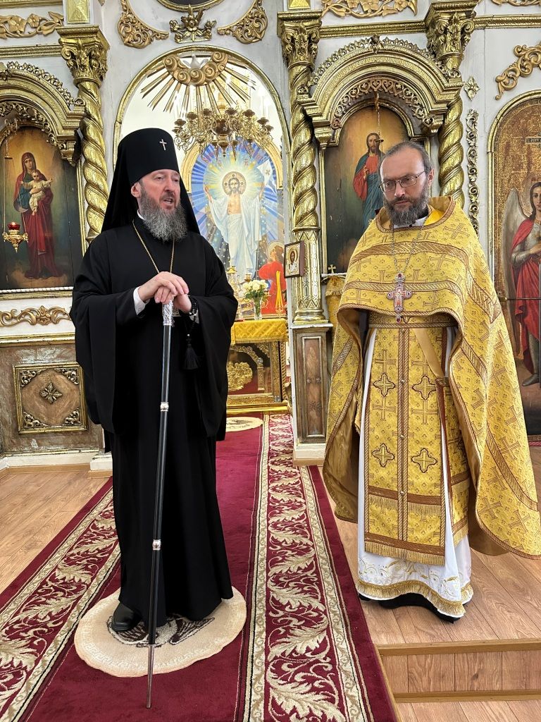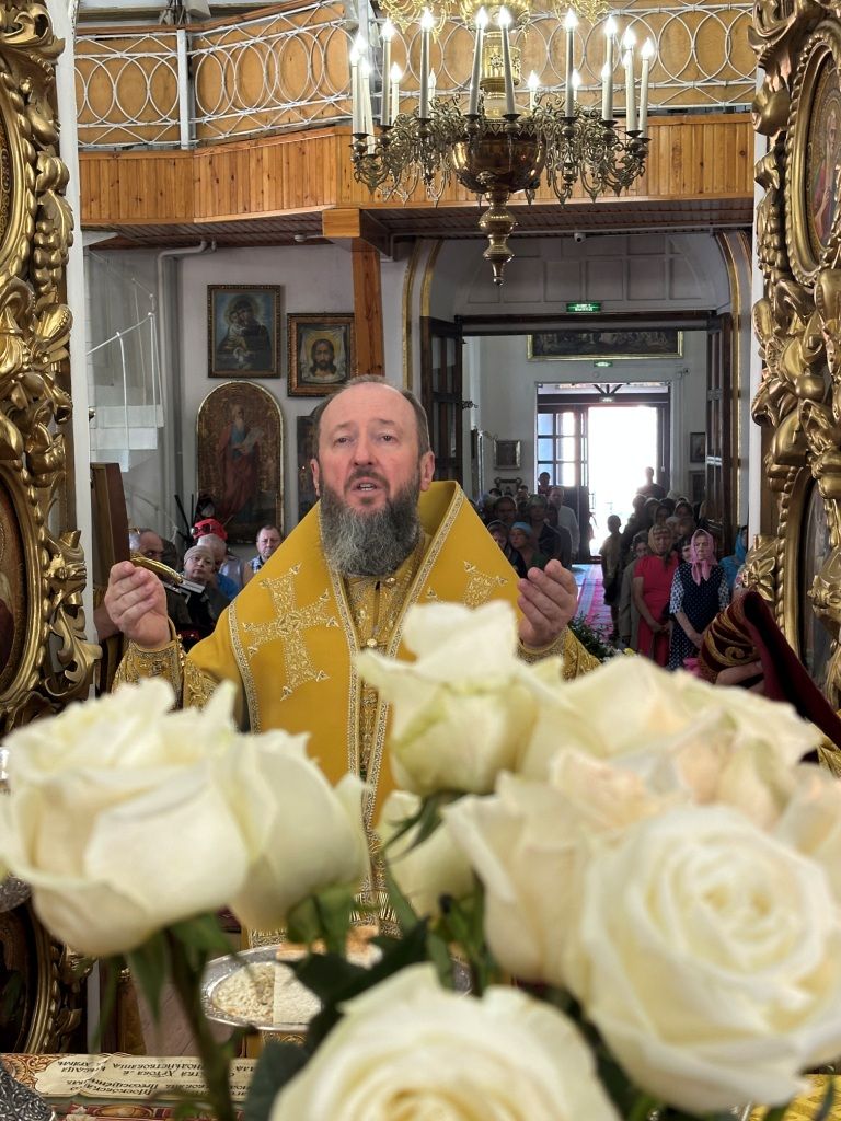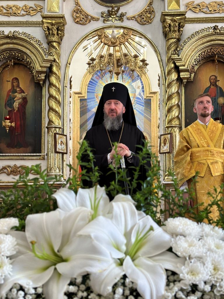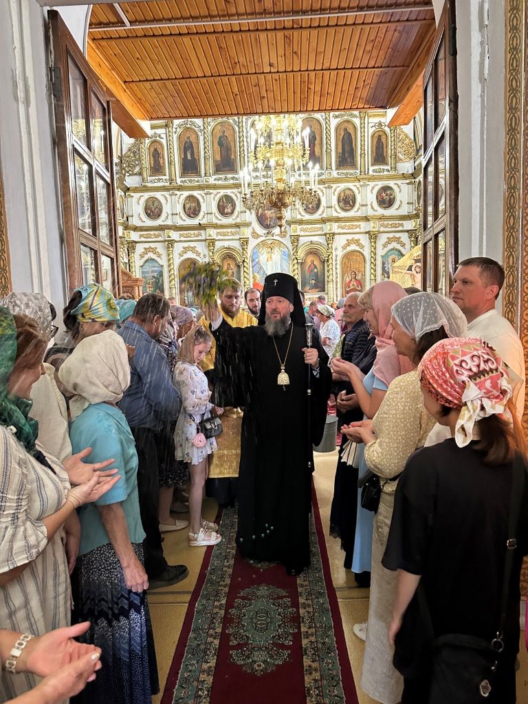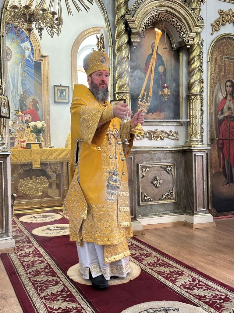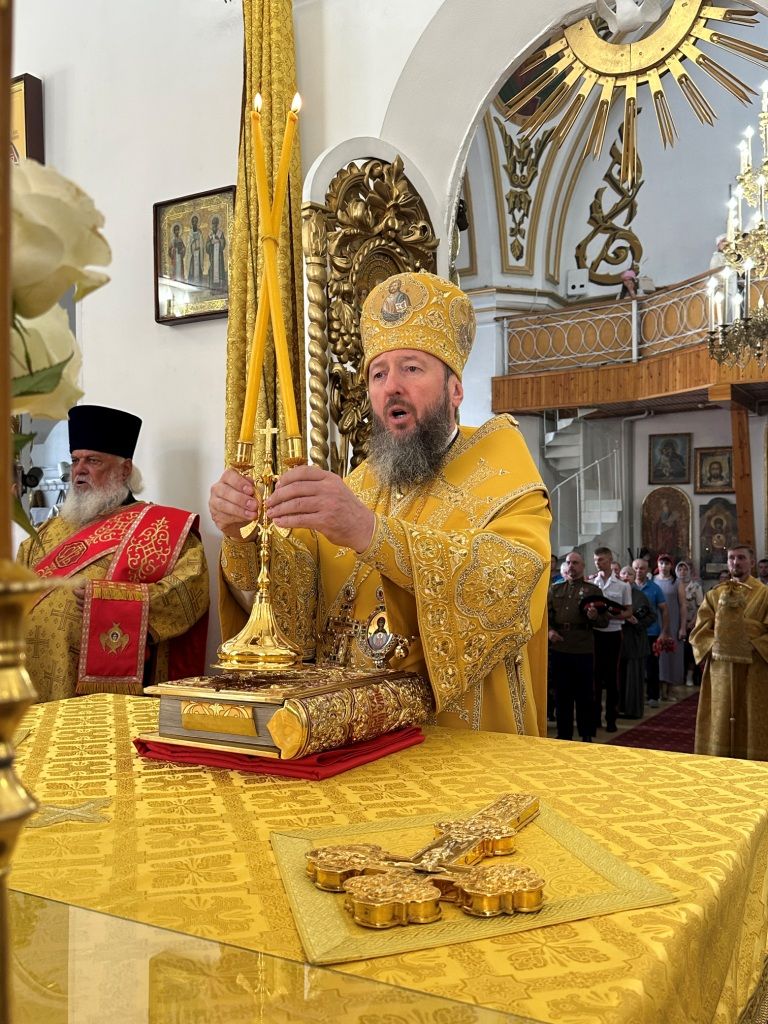 За богослужением молились прихожане Воскресенского собора и паломники. Песнопения Божественной Литургии исполнял хор Воскресенского храма, регент Ю. Хохрякова. После окончания Божественной Литургии архиепископ Амфилохий обратился к собравшимся со словами проповеди: