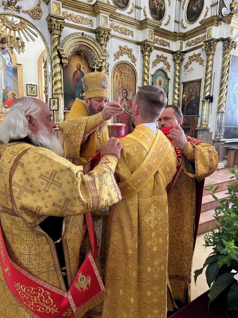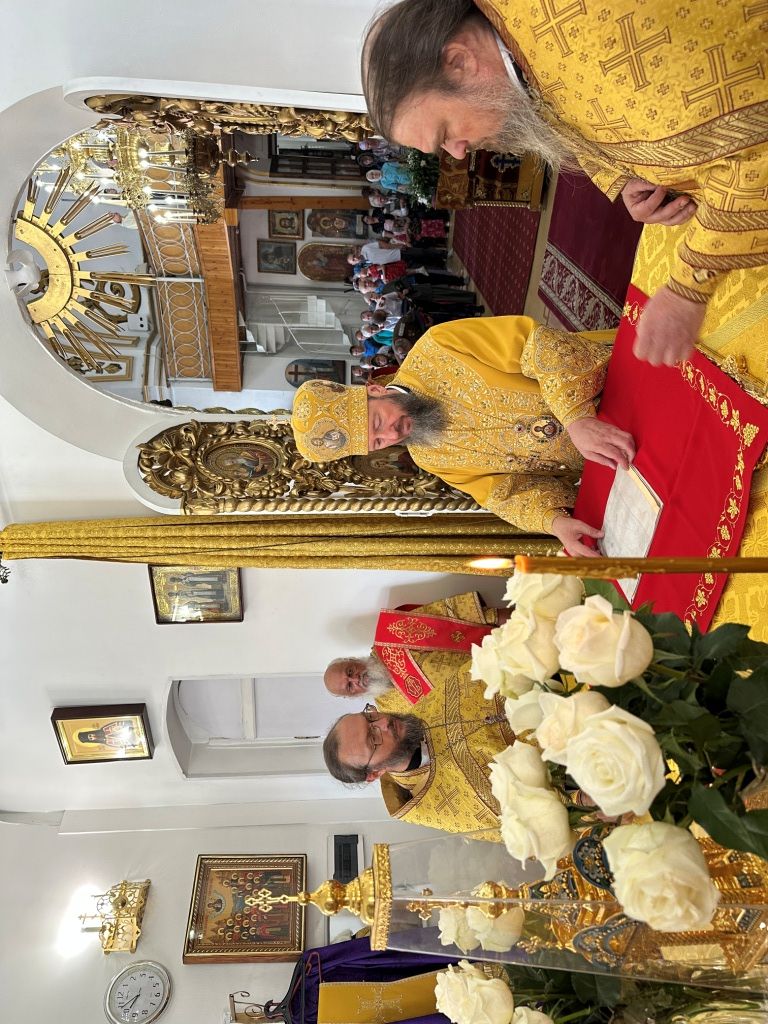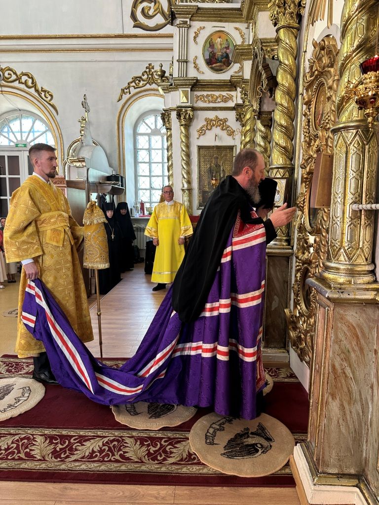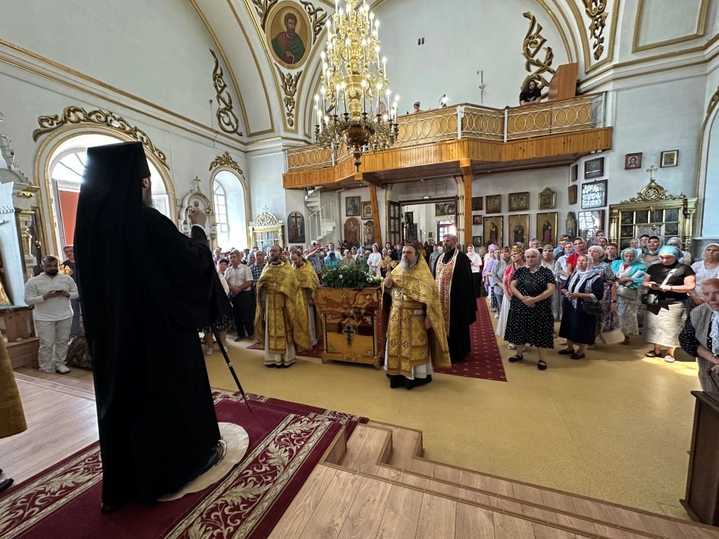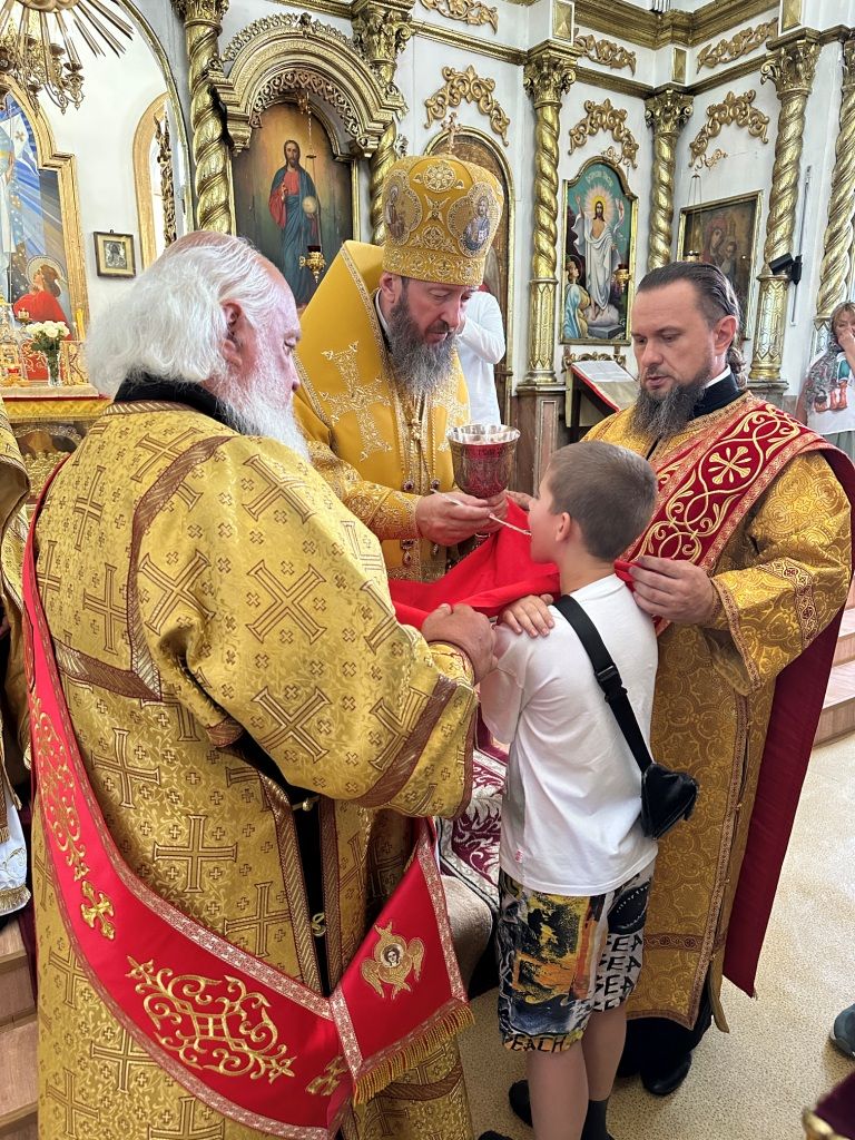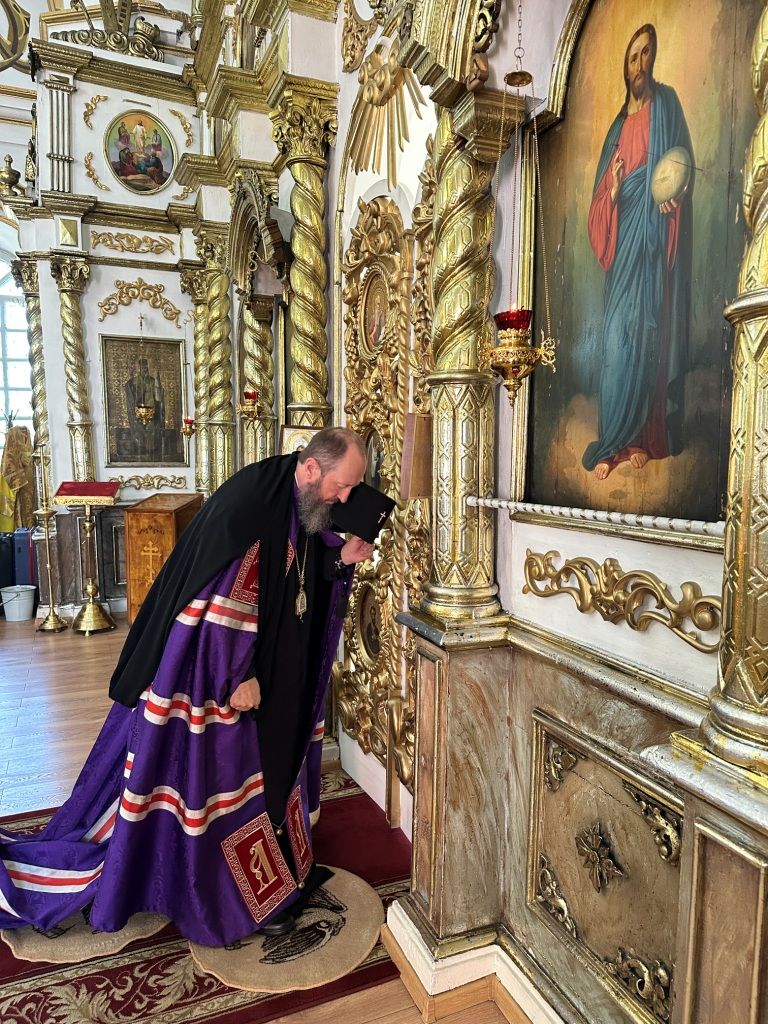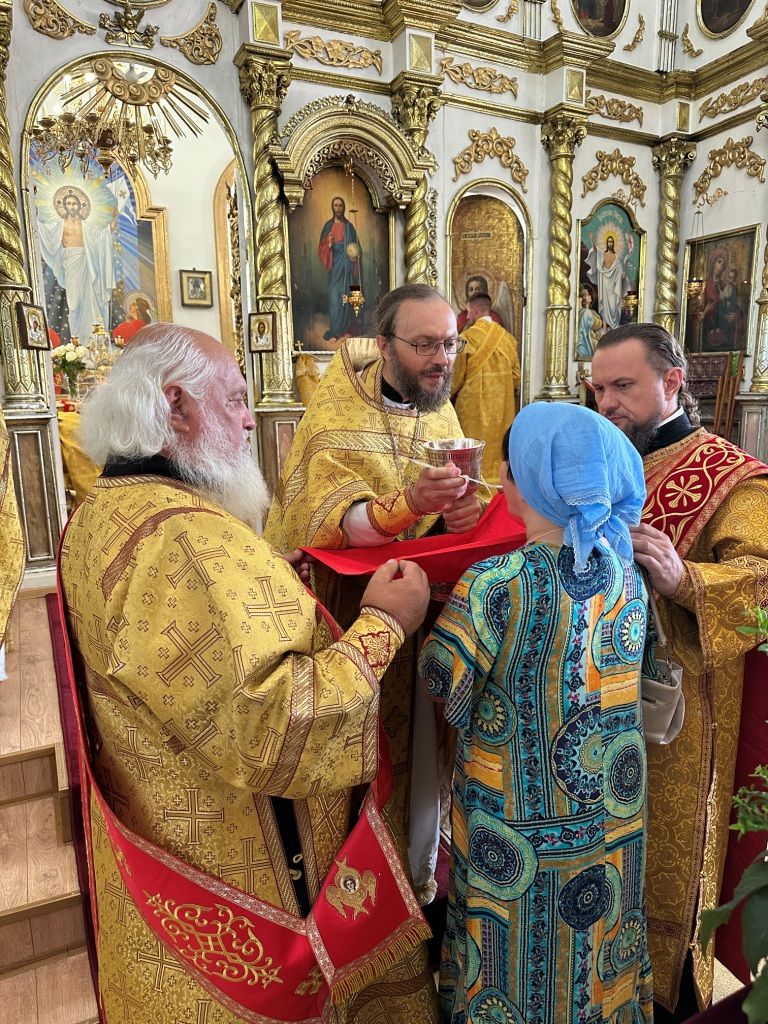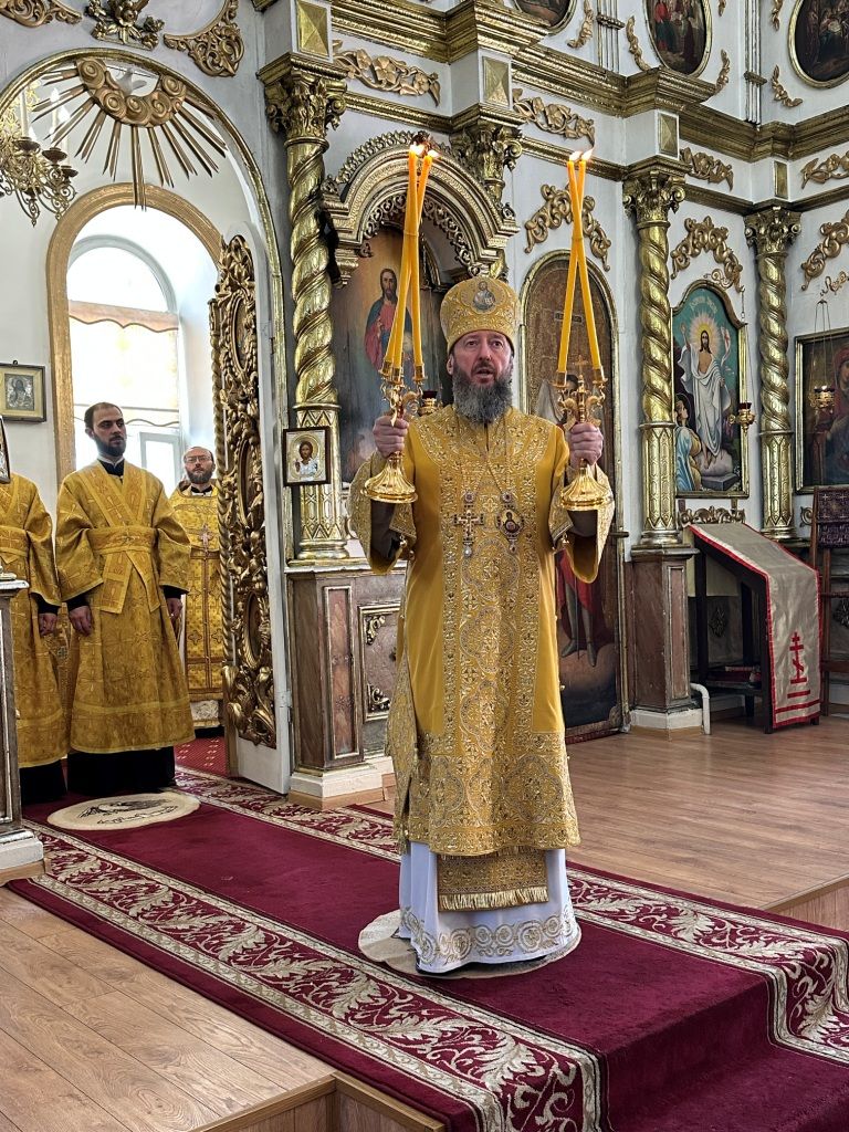 За богослужением молились прихожане Воскресенского собора и паломники. Песнопения Божественной Литургии исполнял хор Воскресенского храма, регент Ю. Хохрякова. После окончания Божественной Литургии архиепископ Амфилохий обратился к собравшимся со словами проповеди: