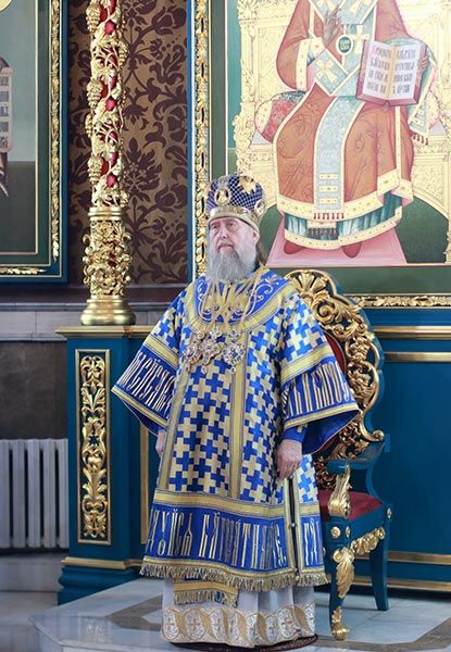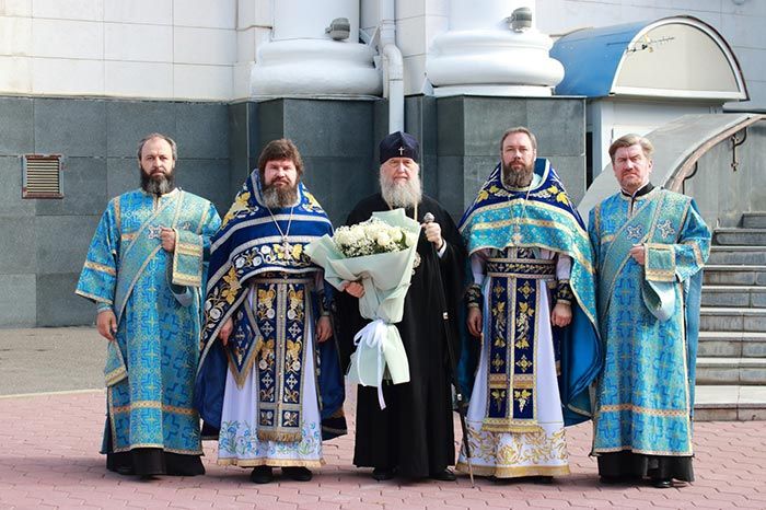 Главе Православной Церкви Казахстана сослужили: архиепископ Карагандинский и Шахтинский Севастиан, архиепископ Усть-Каменогорский и Семипалатинский Амфилохий, архиепископ Кокшетауский и Акмолинский Варсонофий, епископ Уральский и Атырауский Вианор; благочинный Астанайского церковного округа архимандрит Сергий (Карамышев), настоятель храма в честь иконы Божией Матери «Всех скорбящих Радость» протоиерей Евгений Воробьев, ключарь Успенского кафедрального собора иеромонах Димитрий (Байдек), клирик храма преподобного Серафима Саровского города Астаны иеромонах Силуан (Синегубов), руководитель личного секретариата митрополита иеромонах Прохор (Ендовицкий), иерей Сергий Пинигин, иерей Сергий Дианов, духовенство Астанайского благочиния; протодиакон Николай Гринкевич, руководитель службы протокола митрополита протодиакон Роман Головин, протодиакон Владимир Сыровацкий, диакон Илия Давыдов, диакон Михаил Чумаков, диакон Иоанн Янчук, диакон Александр Пивень, диакон Георгий Ткаченко, диакон Ярослав Вохменцев.