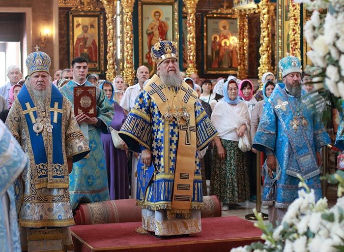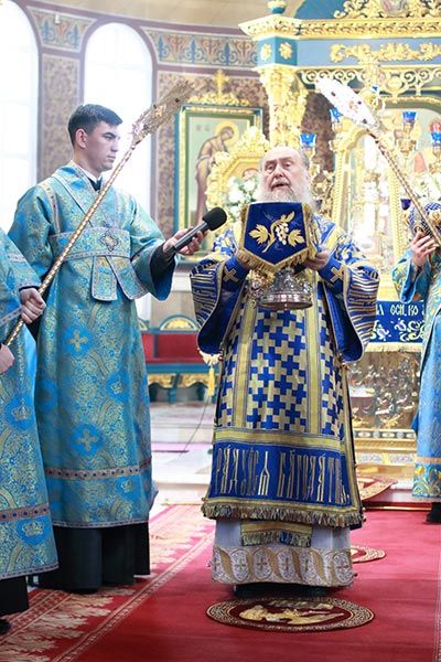 Глава Казахстанского Митрополичьего округа осенил молящихся иконой праздника и окропил святой водой, после чего сердечно поздравил архипастырей, священнослужителей, монашествующих и мирян с «Богородичной Пасхой» и престольным днем и обратился к собравшимся с проповедью.