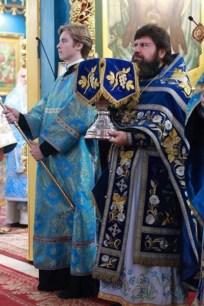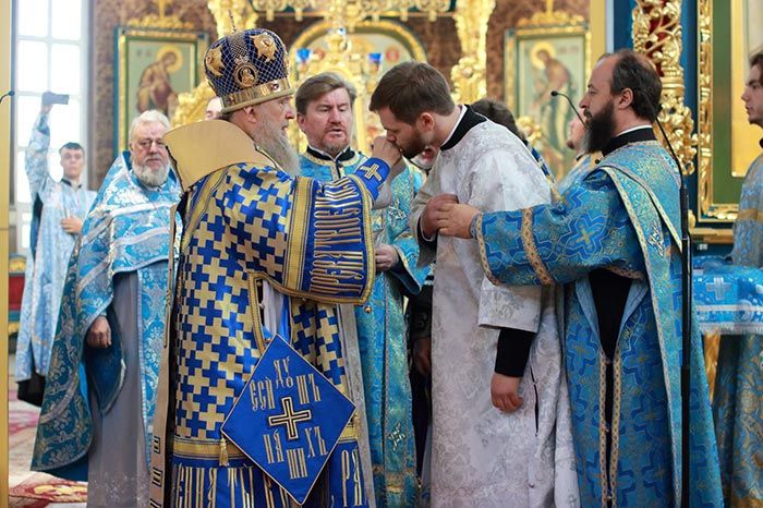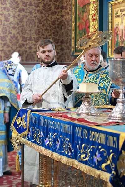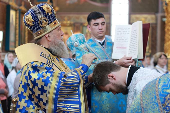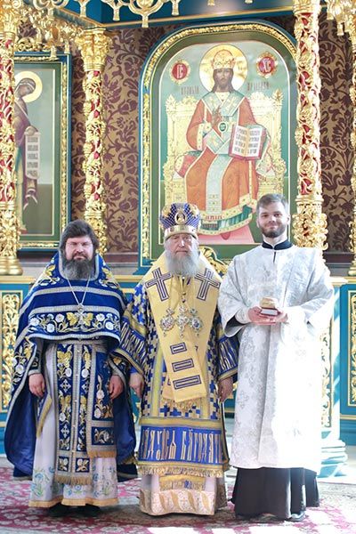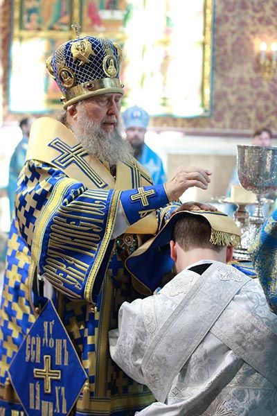 После евхаристического канона митрополит Александр совершил диаконскую хиротонию чтеца Николая Горячева, пономаря Успенского кафедрального собора.