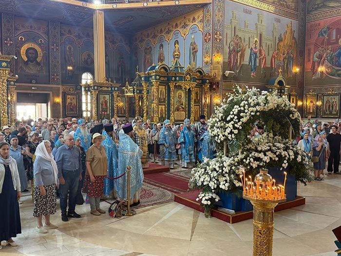Праздник Успения Пресвятой Богородицы – престольный день Успенского кафедрального собора Нур-Султана – главного храма нашей страны, благословенного Казахстана, освященного подвигами новомучеников и исповедников. Священномученик Николай, митрополит Алма-Атинский, с таким призывом обращался в этот день к верующим: «Навыкайте прославлять Царицу Небесную, и Она, Милосердная, не оставит вас Своим заступлением и в жизни сей, и в час смертный». Последуем завету апостолов и святителей, преподобных и праведных, древних мучеников и новых страдальцев за Христа, и будем на всякое время и на всякий час призывать имя Царицы Небесной, Матери Божией и нашей Матери. Помолимся перед святой плащаницей с изображением в молитвах неусыпающей Богородицы, чтобы Царица Небесная освятила нашу жизнь божественной благодатью, даровала милость Сына Своего и Бога нашего, чтобы сподобила нас Божия Матерь увидеть Ее светлый лик в блаженном Царстве Отца Небесного». Из проповеди митрополита Александра.