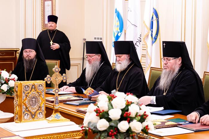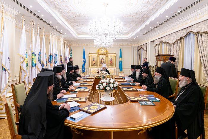 В составе Синода Казахстанского Митрополичьего округа: архиепископ Павлодарский и Экибастузский Варнава; архиепископ Карагандинский и Шахтинский Севастиан; архиепископ Усть-Каменогорский и Семипалатинский Амфилохий; архиепископ Кокшетауский и Акмолинский Варсонофий; архиепископ Петропавловский и Булаевский Владимир; управляющий делами Православной Церкви Казахстана епископ Каскеленский Геннадий; епископ Актюбинский и Кызылординский Игнатий; викарий Астанайской епархии епископ Талдыкорганский Клавдиан; епископ Чимкентский и Туркестанский Хрисанф; викарий Астанайской епархии епископ Талгарский Вениамин; епископ Уральский и Атырауский Вианор.
